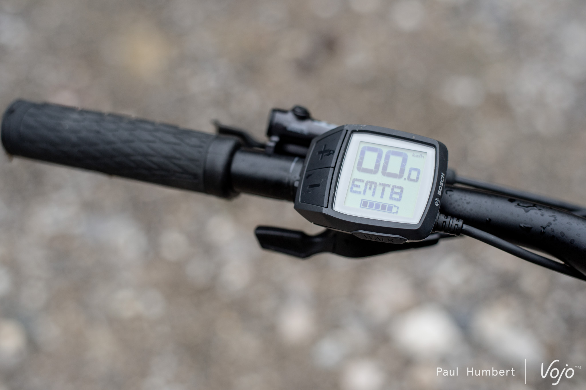 La commande est la très simple mais fonctionnelle Bosch Purion, placée à gauche du cintre. Elle dispose de deux grands boutons pour changer de niveau d’assistance, ainsi que de deux autres plus petits pour l’assistance à la marche et allumer/éteindre le système.