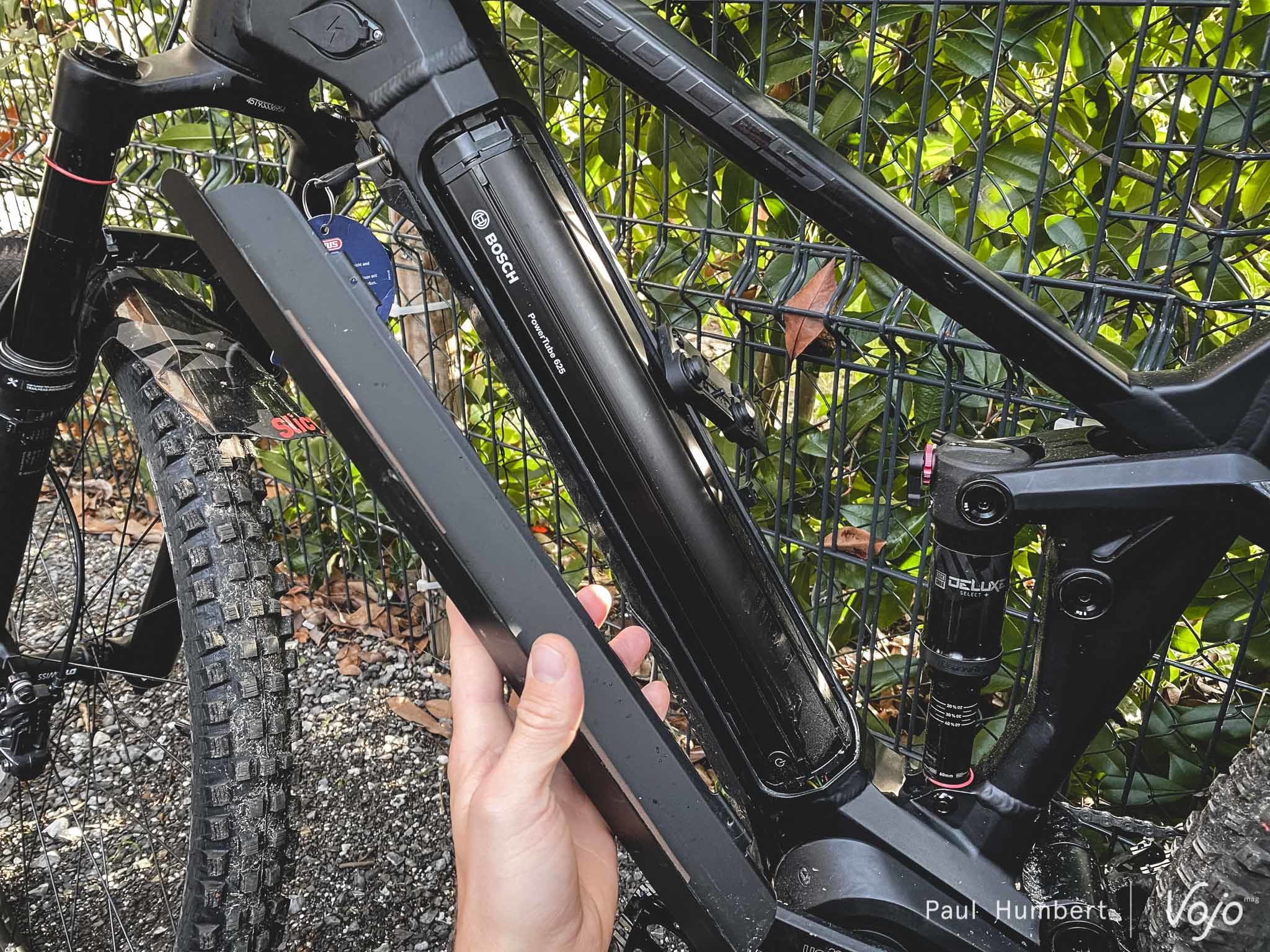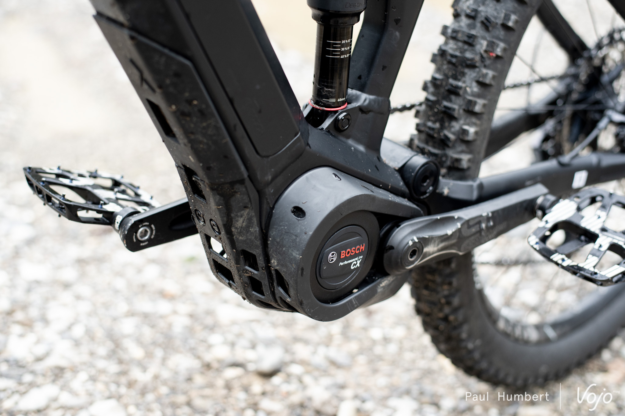 Enfin, nos dernières sorties avec le vélo en début d’automne ont soulevé un dernier souci : avec ses nombreuses aérations, le carter de protection du moteur stocke facilement la boue. Cette dernière s’entasse entre le moteur et le carter, un endroit difficile d’accès et difficile à nettoyer. Cela n’a entraîné aucun problème quant au fonctionnement du moteur durant notre essai, mais c’est un point à surveiller de près en cas d’utilisation régulière dans ce genre de conditions météo.