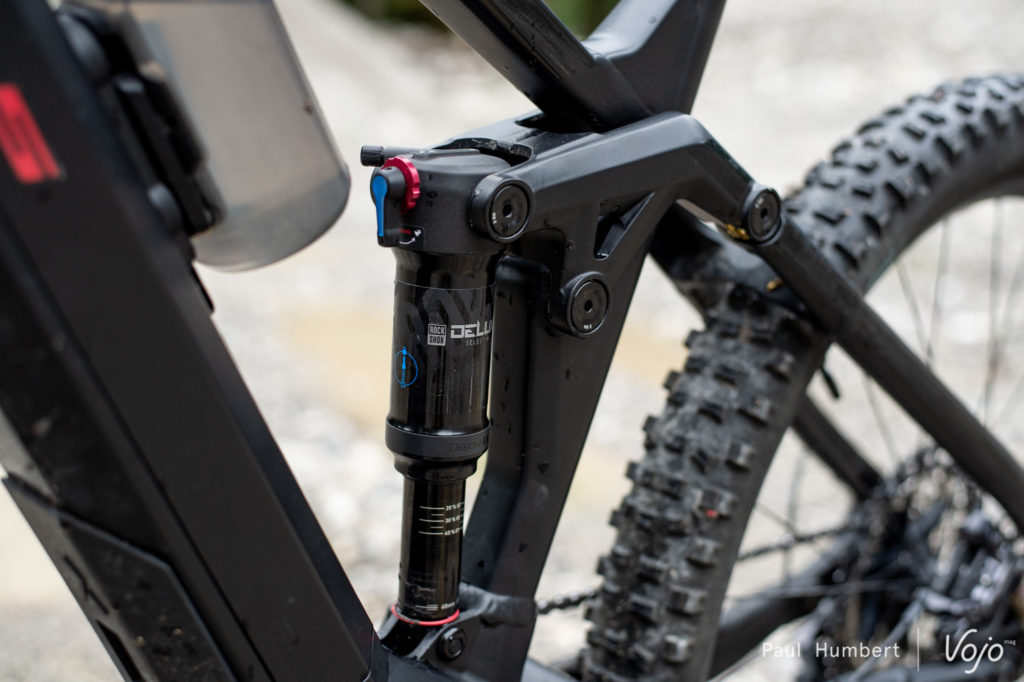 Le problème ici, c’est que lorsque le vélo commence à cabrer on est généralement sur le mode e-MTB (en Tour, c’est plus facilement contrôlable) à cause de la pente ou de l’inégalité du terrain. Au moment où l’avant commence à lever, le réflexe est d’arrêter de pédaler pour reprendre le contrôle mais avec l’Extended Boost, le moteur continue à pousser ! Ça ne dure pas longtemps mais c’est bien souvent suffisant pour faire perdre au pilote tout contrôle de sa monture et l’obliger à mettre pied à terre. De là, impossible de repartir et il faut pousser le vélo jusqu’au retour d’un terrain plus favorable.