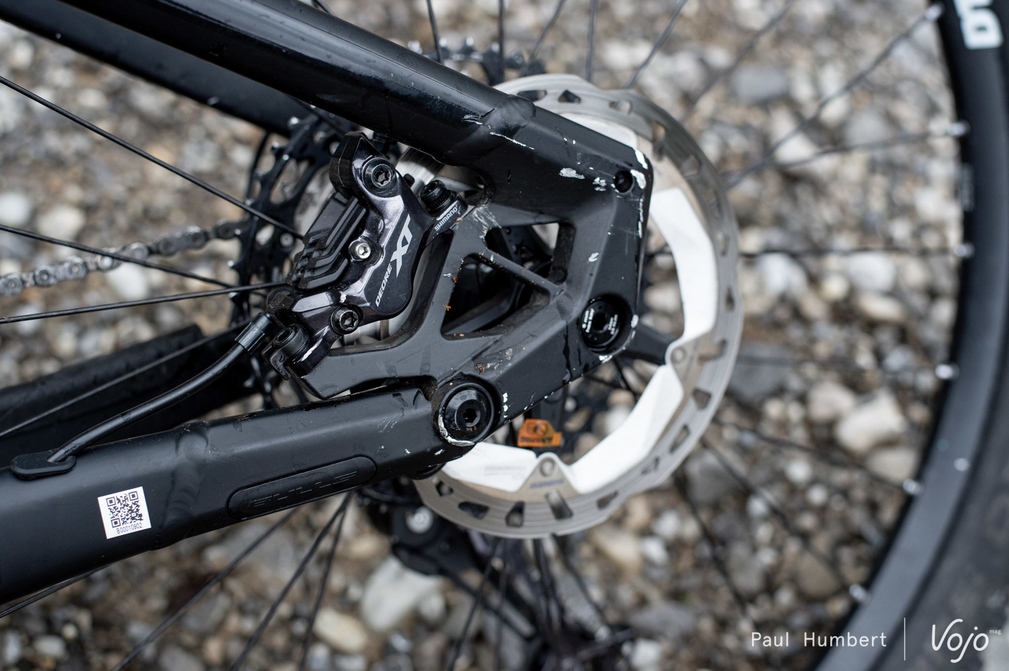 En revanche, nous avons apprécié à sa juste valeur le choix de freins Shimano XT 4 pistons, des modèles haut de gamme pas très courants à ce tarif. Encore plus que sur un vélo classique, les freins sont un composant essentiel d’un VTTAE et la présence d’un modèle reconnu pour sa puissance et son endurance est à saluer.