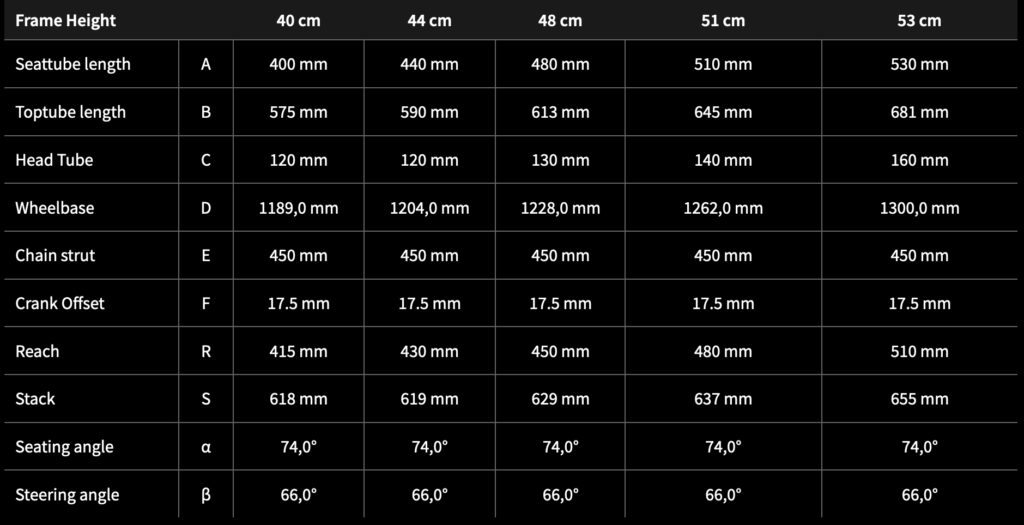 La géométrie nous conforte dans cette interprétation puisqu’elle est relativement sage et tournée vers la facilité de prise en main. Le reach est court avec seulement 430 mm en taille M (soit 44 cm dans le tableau Bulls, S = 40 cm et XXL = 53 cm) tandis que les bases, avec 450 mm, sont de longueur moyenne pour un VTTAE et que l’angle de direction n’est pas énormément couché pour un vélo de ce débattement. À noter que sur les versions avec cadre en carbone cette géométrie est légèrement différente avec, entre autres, un reach un peu plus long qui devrait apporter un peu plus de sportivité.