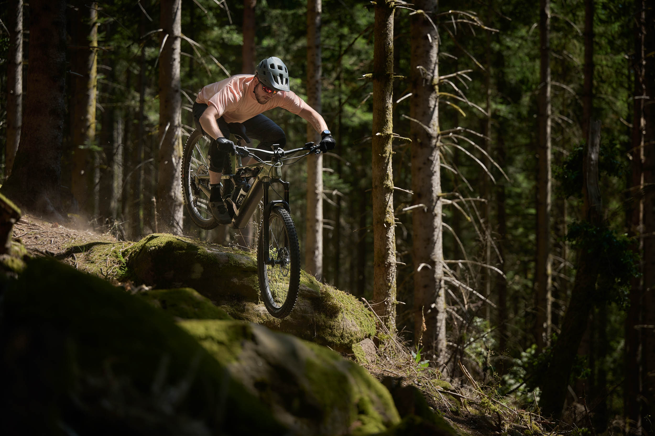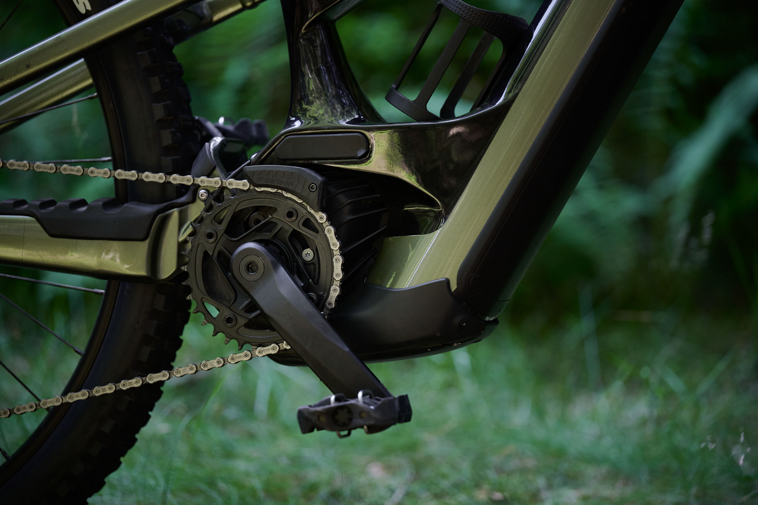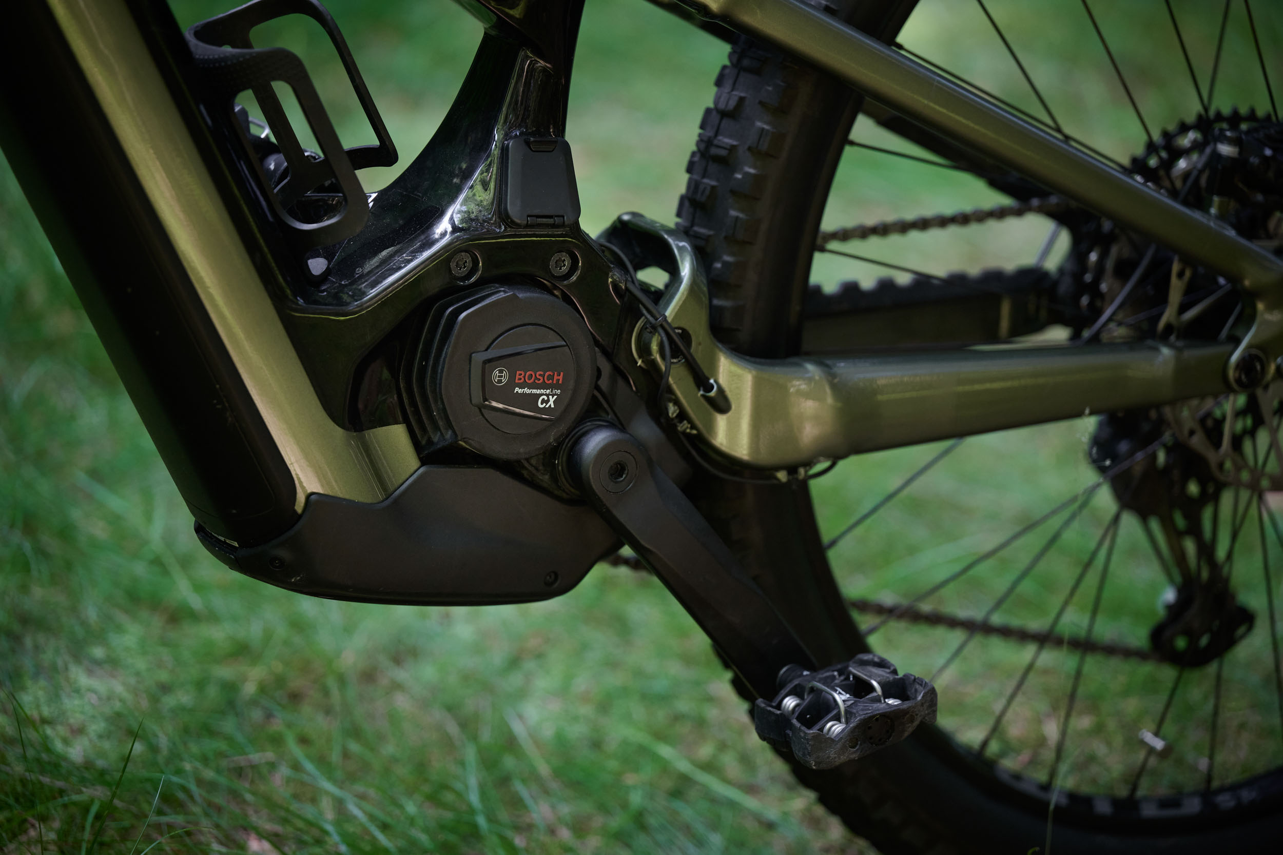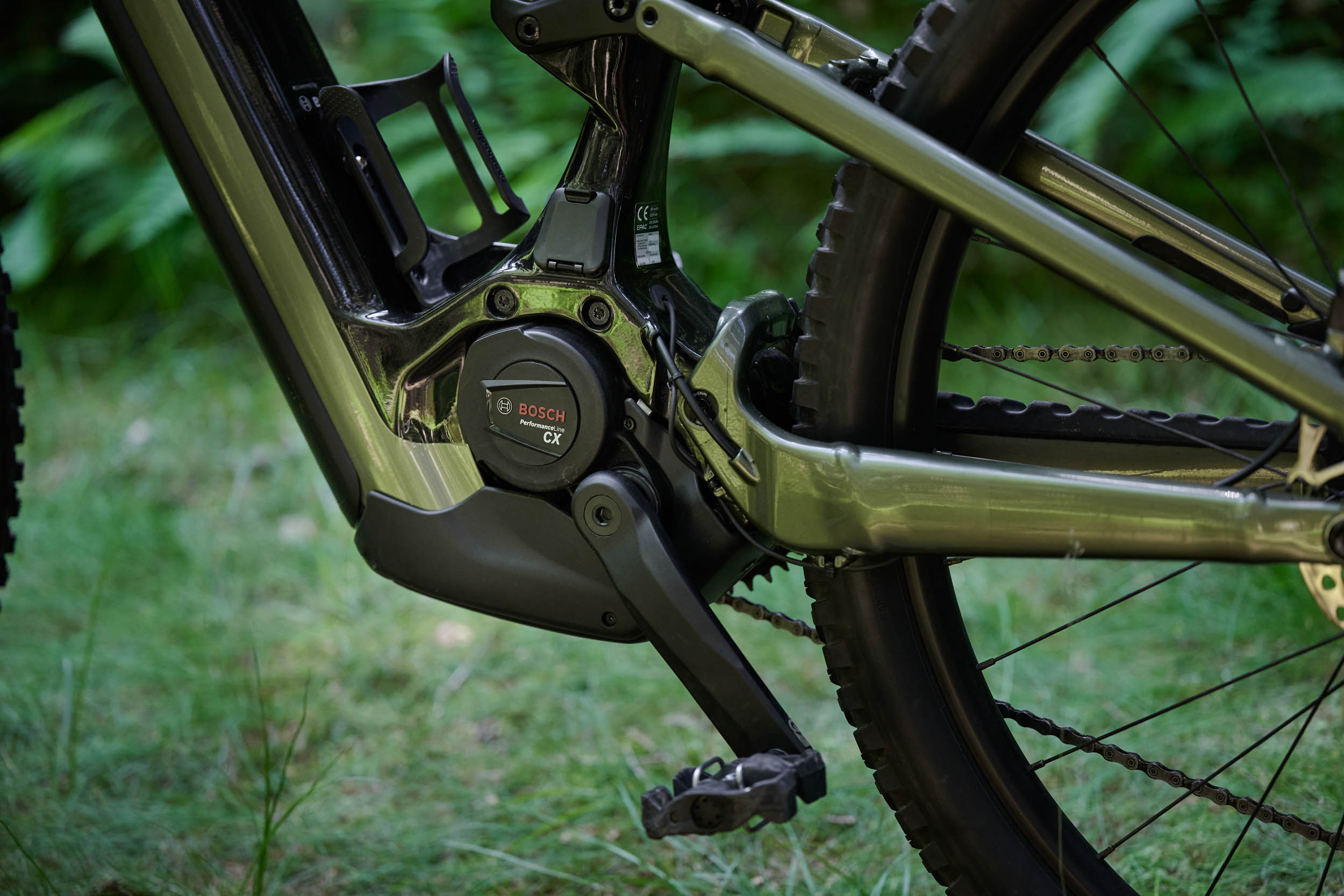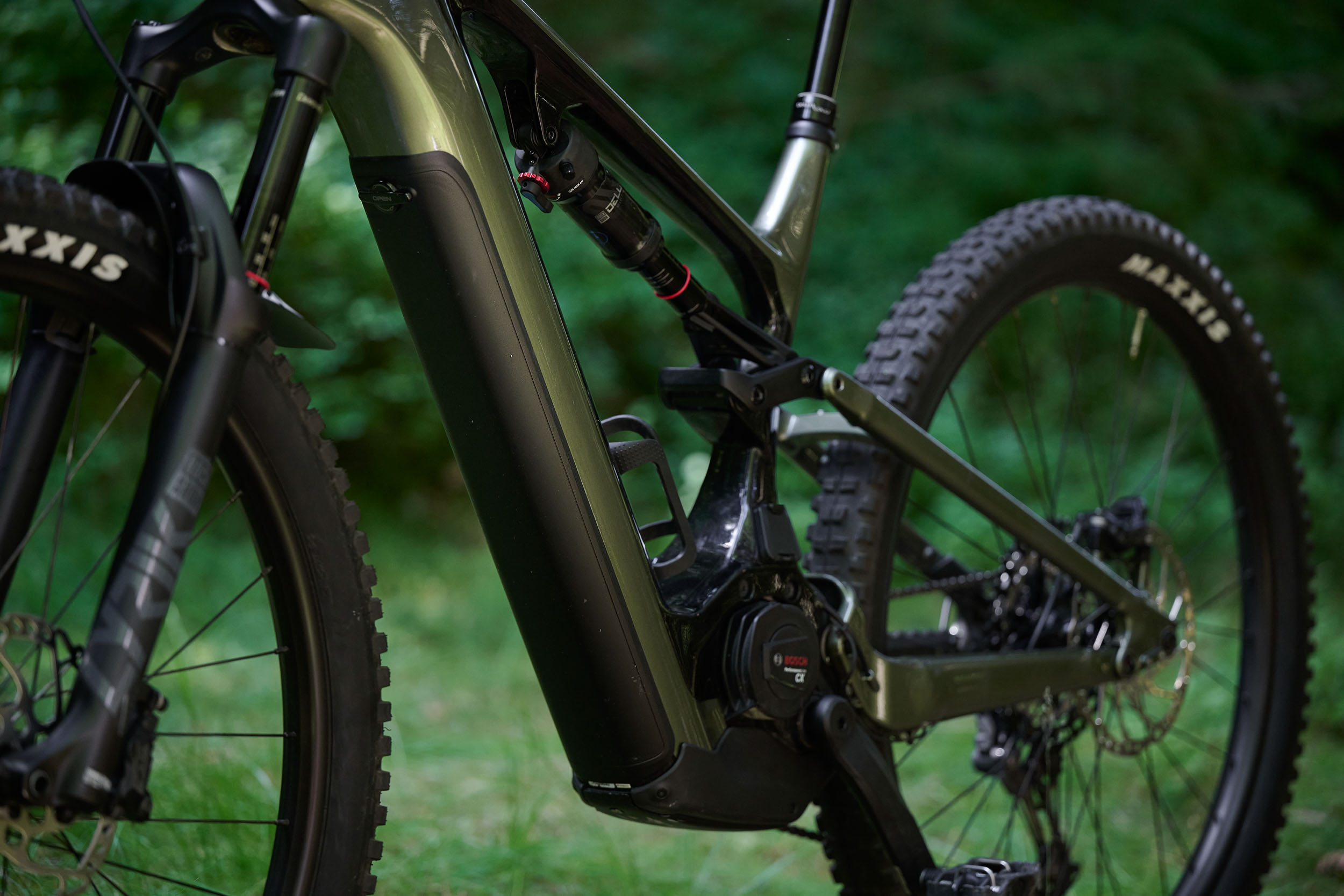 Toujours amovible et protégée par un cache, elle a imposé un repositionnement du moteur quasi à la verticale, et toute la partie basse du vélo a dû être repensée pour garder un centre de gravité assez bas et éviter de trop charger le train avant. Le porte-bidon, toujours bien présent, a aussi été abaissé. Côté motorisation, on retrouve toujours le Bosch Performance CX avec ses 85Nm de couple, qui fait toujours figure de référence dans le domaine des « power e-bikes ».