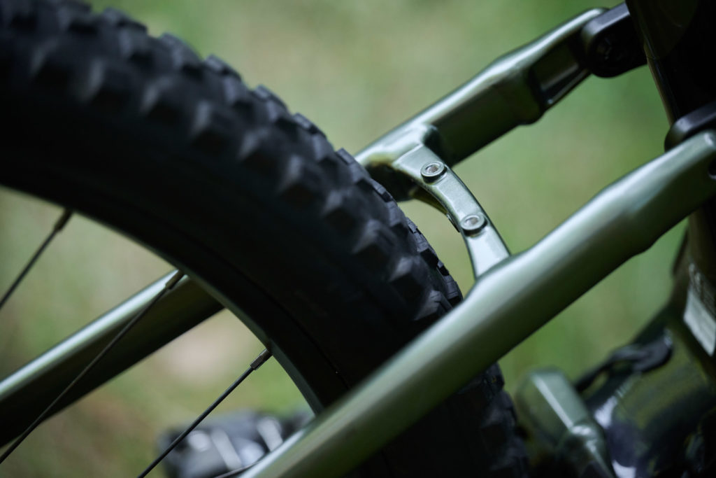 Petit changement à souligner ici : l’ancrage de l’amortisseur se fait désormais sous le top-tube et non plus au niveau du tube diagonal, à l’exception des versions aluminium de ce Moterra Neo qui conservent l’ancrage de la version précédente. La biellette supérieure et le yoke sont également nouveaux. Le débattement est de 150mm, ce qui est courant pour les power e-bikes qui visent un spectre d’usage assez large.