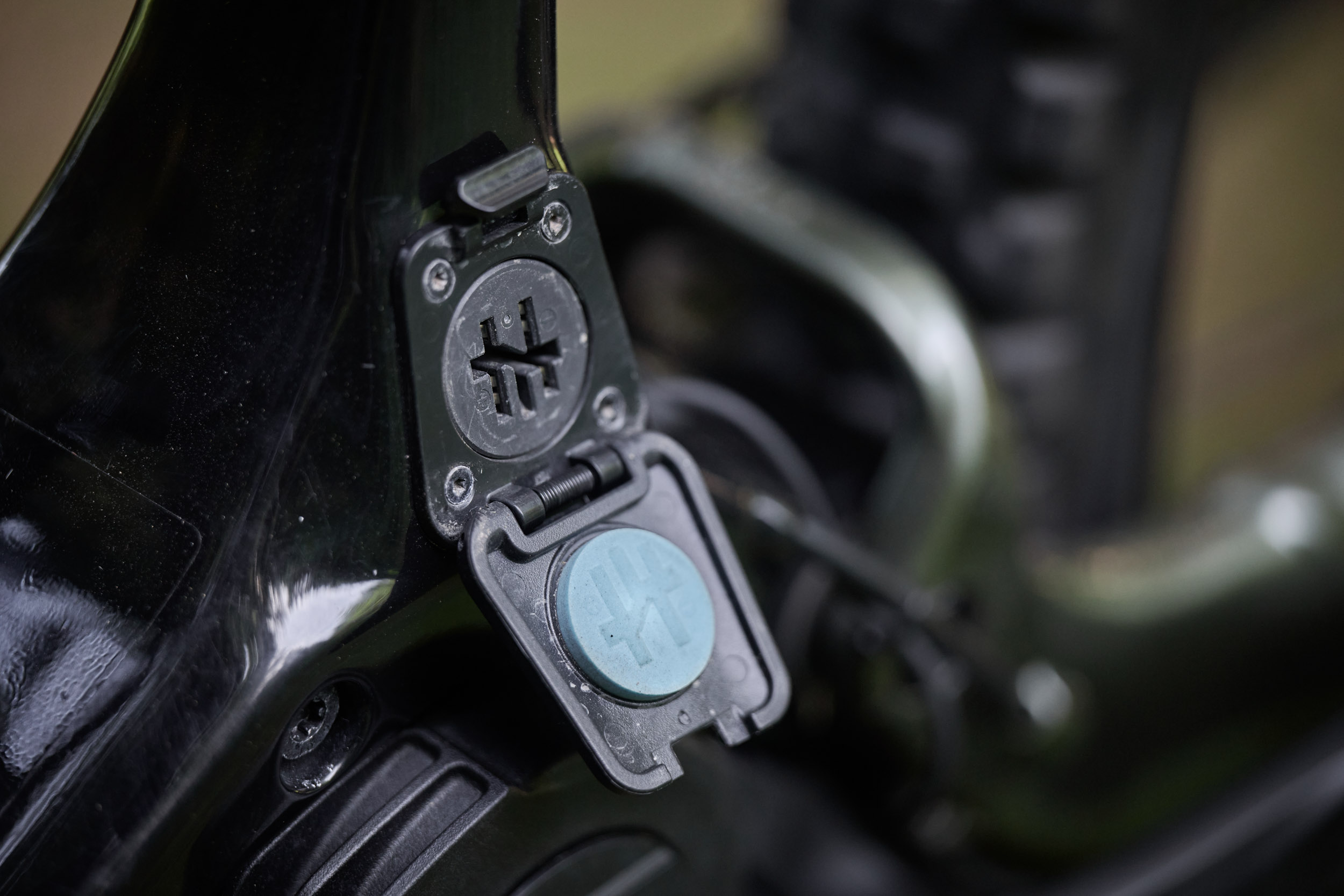 Cannondale a aussi porté une attention toute particulière au port de recharge, situé juste au-dessus du moteur. Il s’agit d’un nouveau format de port de charge inauguré par Bosch avec le Smart System, et Cannondale en a renforcé l’étanchéité avec une petite mousse supplémentaire ainsi qu’un capot doté d’un clip de sécurité.