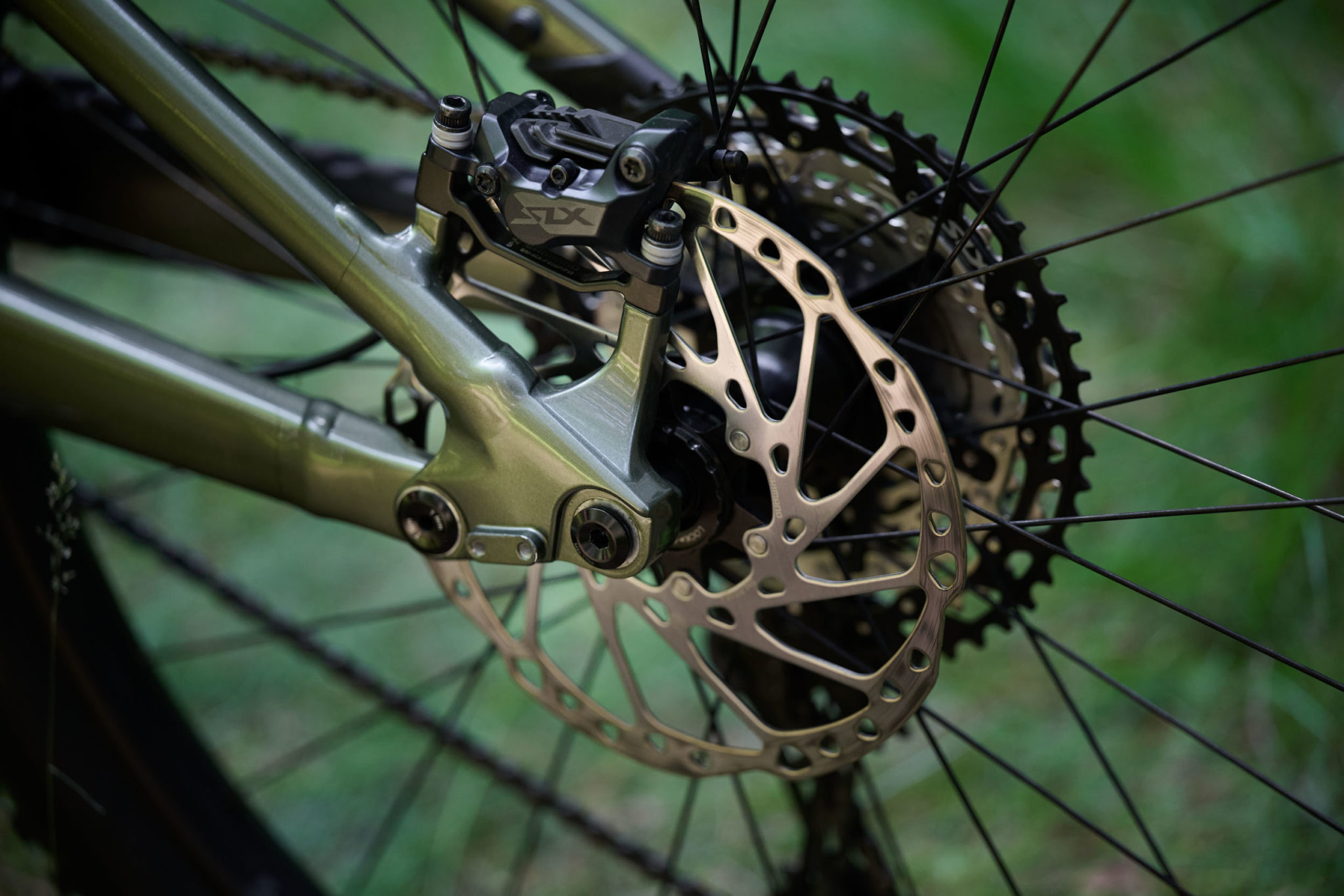 Côté freinage, on retrouve les excellents Shimano SLX 4 pistons. Dommage que les disques de freins ne profitent pas de l’Ice Tech présent sur les XT et XTR et qui augmente les performances de manière perceptible, mais les SLX se montrent tout de même efficaces et très constants avec leurs disques de 203mm à l’avant comme à l’arrière.