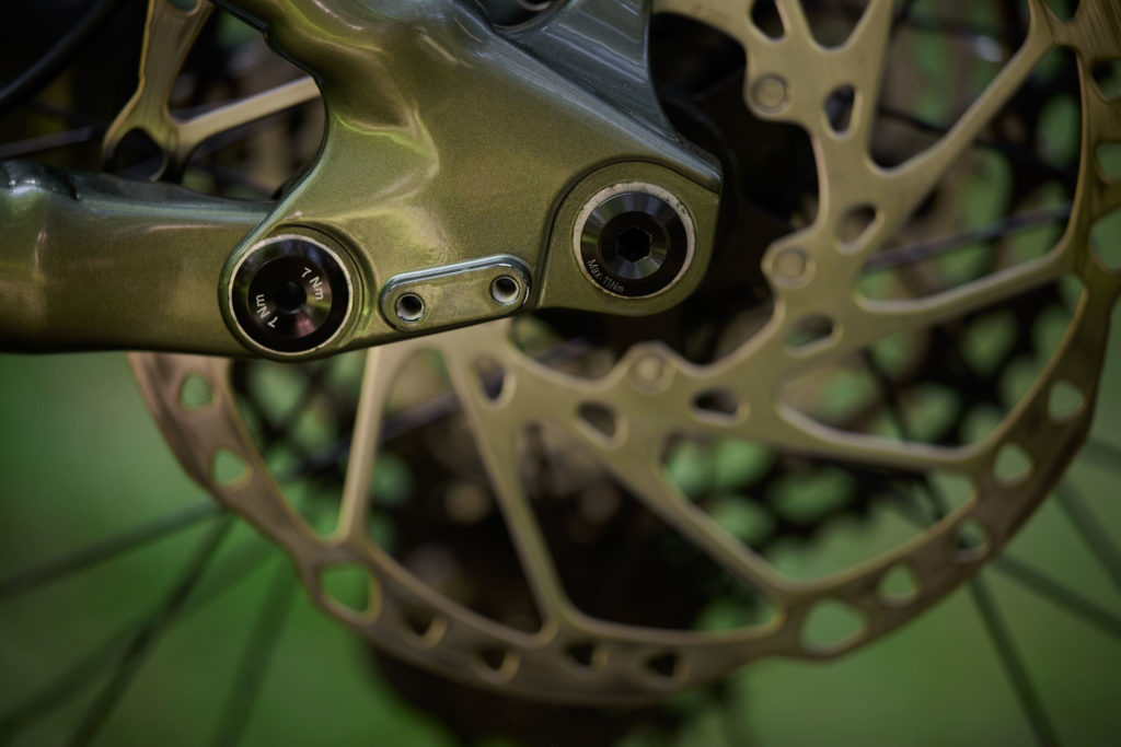 Les bases et les haubans restent, quant à eux, en aluminium. Il y a plusieurs raisons à cela. Tout d’abord, le gain de poids est moins significatif que pour le triangle avant en passant sur du carbone, et cela permet aussi de donner une plus grande polyvalence au Moterra Neo 2, puisqu’il peut du coup accueillir des perçages pour fixer un porte-bagage et même… un pied ! Oui, vous avez bien lu, et ne rigolez pas : Cannondale a constaté que sur certains marchés, les clients du Moterra sont friands de ce genre d’accessoires et utilisent aussi leur vélo dans un cadre plus « touring »/tout-chemin que vraiment VTT. La marque a donc choisi de regarder cette réalité en face et de permettre un montage propre de ce genre d’accessoires plutôt que de voir les clients réaliser des bricolages qui causaient parfois des retours en SAV. Nous verrons plus loin que Cannondale a aussi décliné son Moterra dans une version « tout-chemin ».
