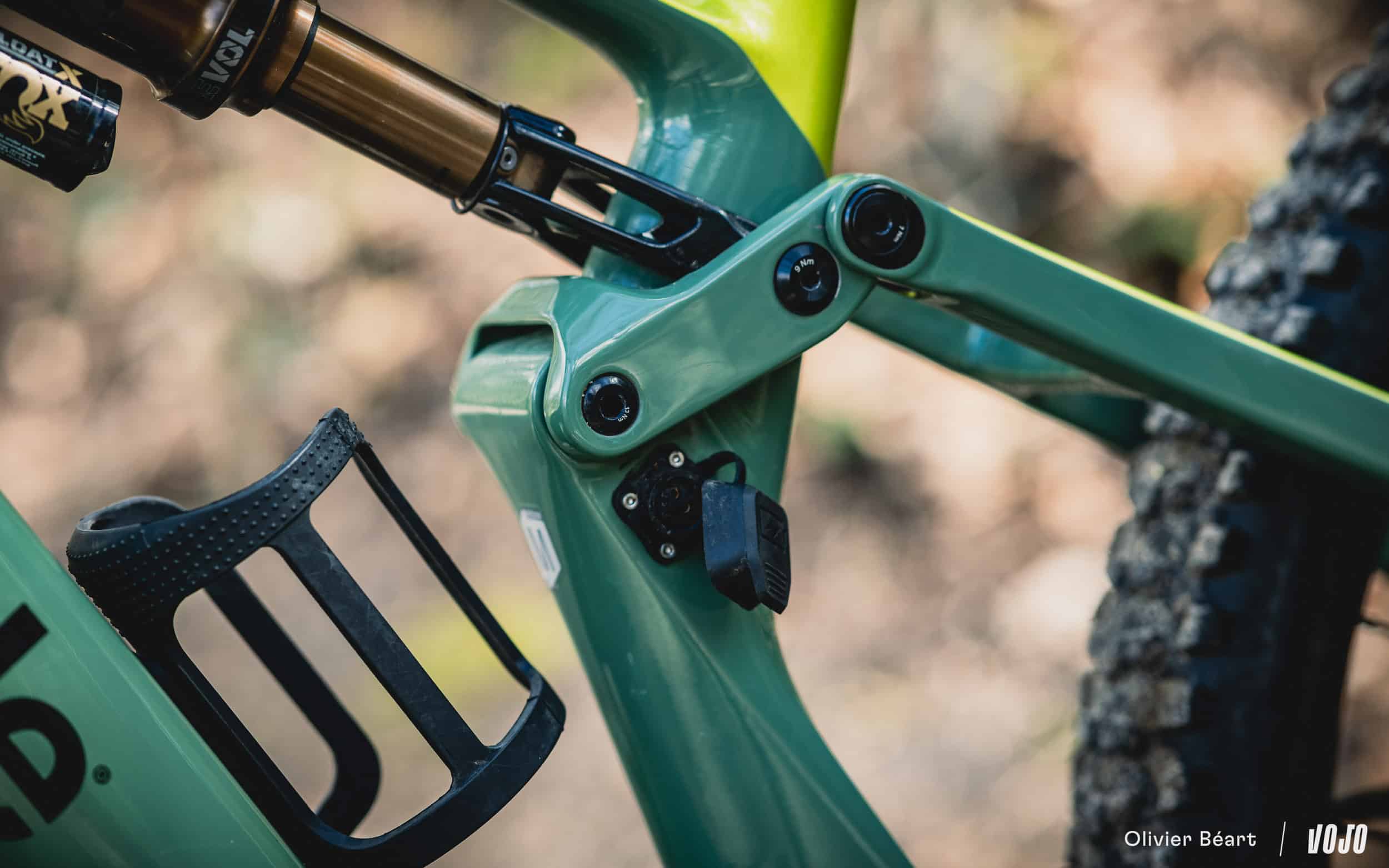 Ce point de pivot sous forme de fines lames de carbone prend place tout à l’arrière des bases pour former un vrai pivot Horst Link, de sorte qu’on peut dire que cette cinématique est un authentique 4 Bar Linkage (cf. Petit lexique illustré du VTT : toutes les clés pour comprendre). Le « FlexPivot » permet juste de se passer de roulements du côté des bases, et limite ainsi la maintenance.