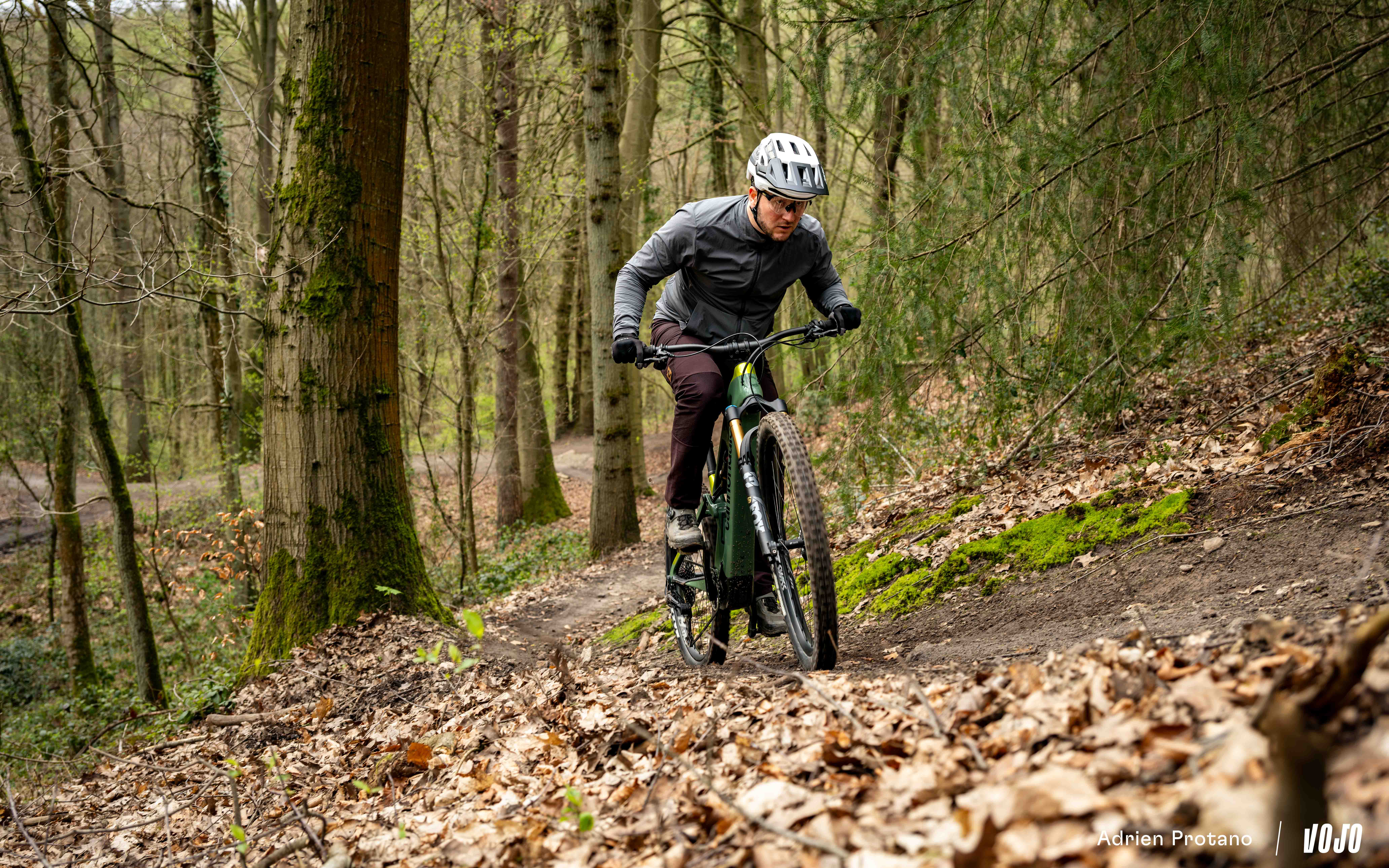 En s’installant au guidon du Moterra SL, on remarque directement que son reach est assez court. Cela donne une position compacte, mais pour nos testeurs qui font entre 175 et 180 cm, c’était parfait en taille M. Comme le vélo a été testé en Belgique, nous avons opté pour le réglage de l’angle de direction à 64°, plus droit que les 62,5° du réglage le plus extrême. C’est, selon nous, mieux pour les terrains vallonnés mais pas montagneux que nous avons rencontrés, et pour un usage qui va de la randonnée sportive aux sorties en trail center.
