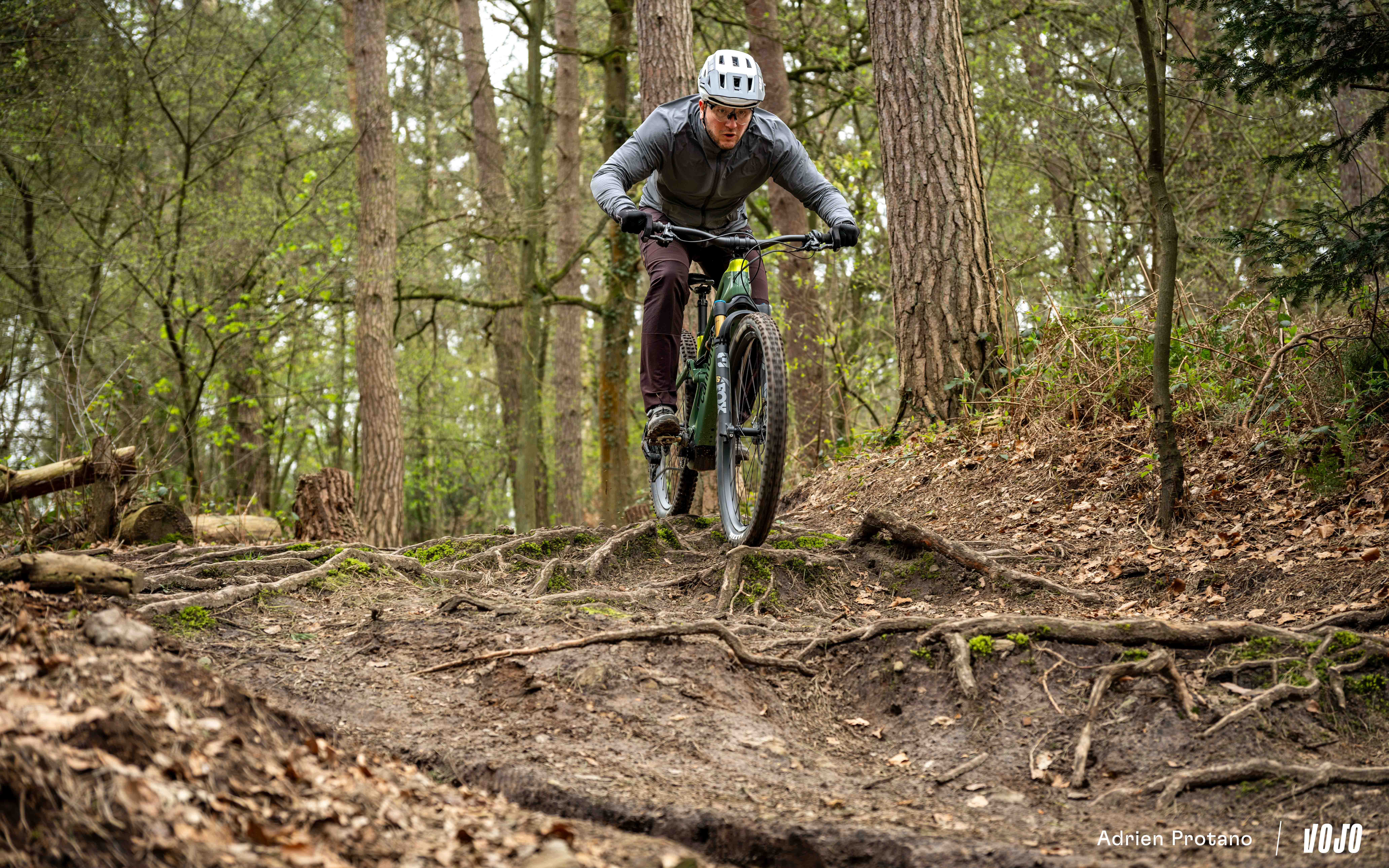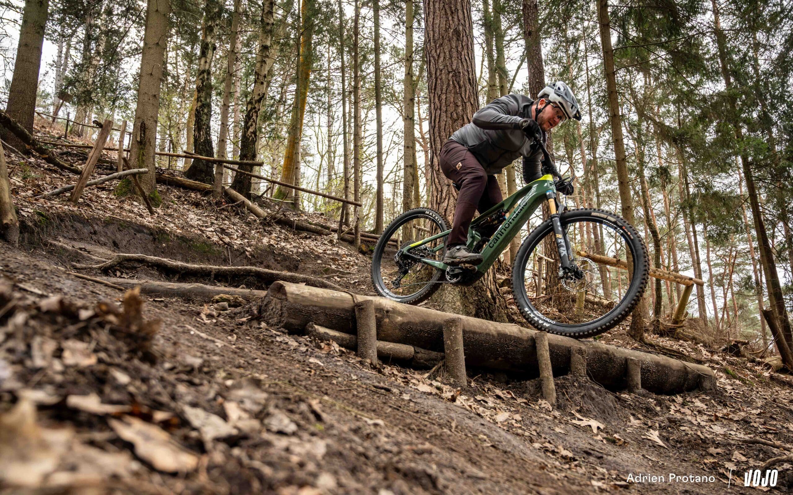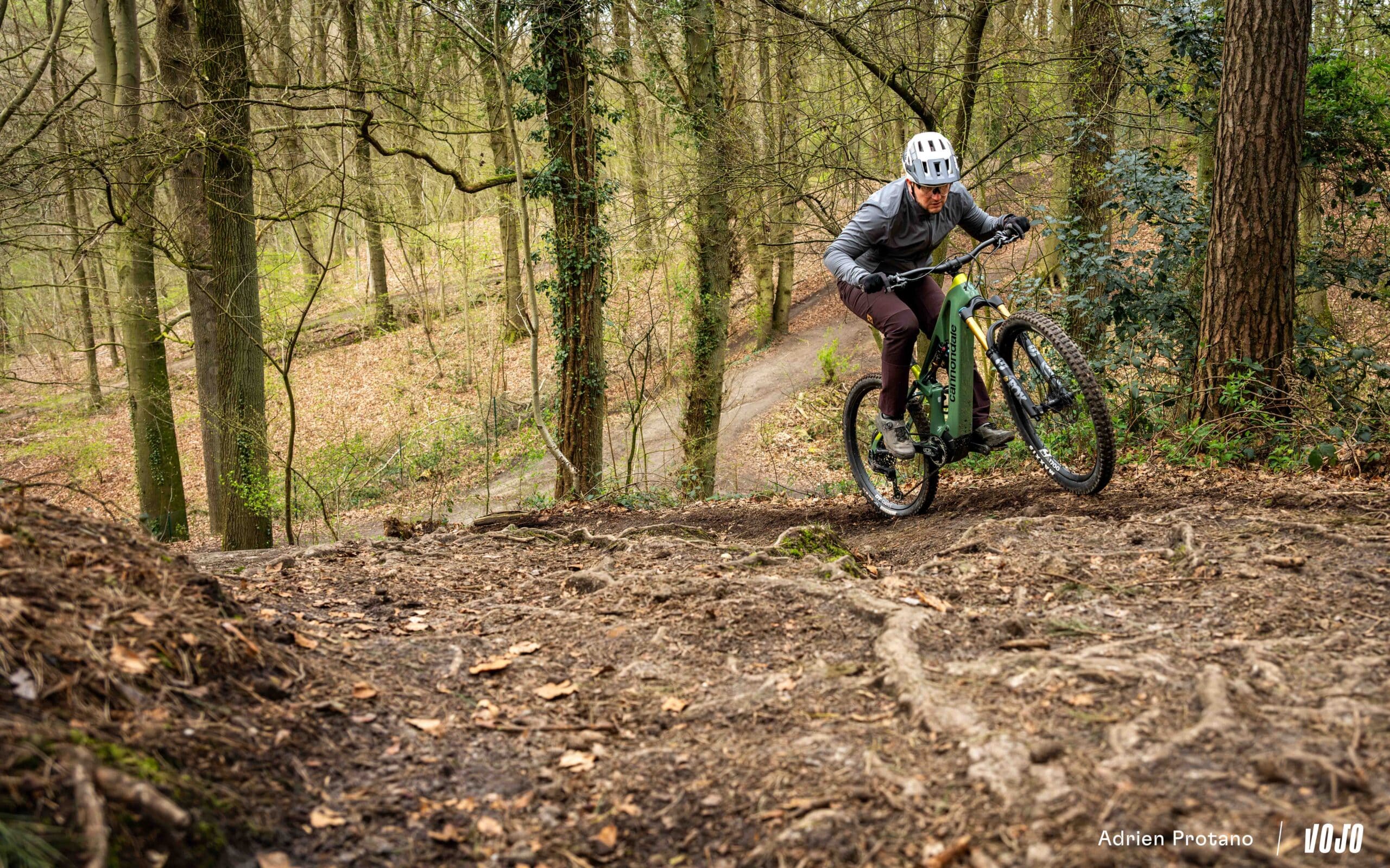 Quand on hausse le rythme et qu’on l’emmène en trail center, il suit sans broncher. Son agilité fait merveille et sa suspension suit bien les reliefs du terrain. Juste un avertissement : ne le prenez pas pour un enduro ! Il peut rouler sans aucun souci sur des spéciales bien engagées, mais sa cinématique le rend assez réactif et on a tout de même du mal à le « poser » pour vraiment être efficace si le but est de signer des chronos. Pour s’amuser, c’est top, mais pour réellement performer, ça l’est moins. Ce n’est pas un défaut mais il ne faut pas se tromper sur son profil et c’est pour cela qu’on vous dit qu’il s’agit d’un vrai vélo de trail. Un Specialized Levo, par exemple, sera plus capable de tirer vers l’enduro selon son montage, tout en pouvant aussi jouer la carte du « gentil vélo de trail ludique ».