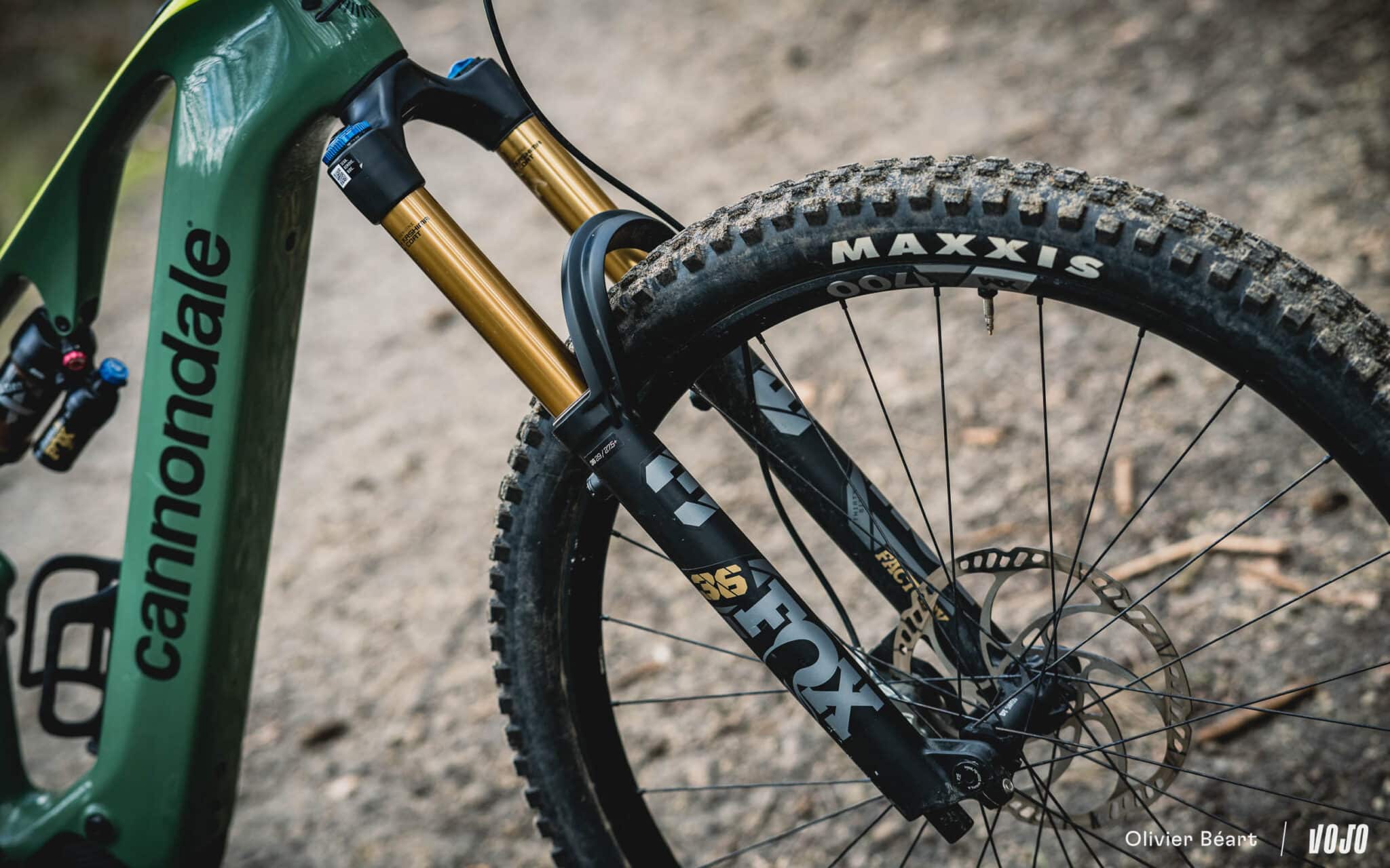 - Pneus : Maxxis DHF 2,5 EXO (avant) et Maxxis Dissector 2,4 EXO (arrière)
