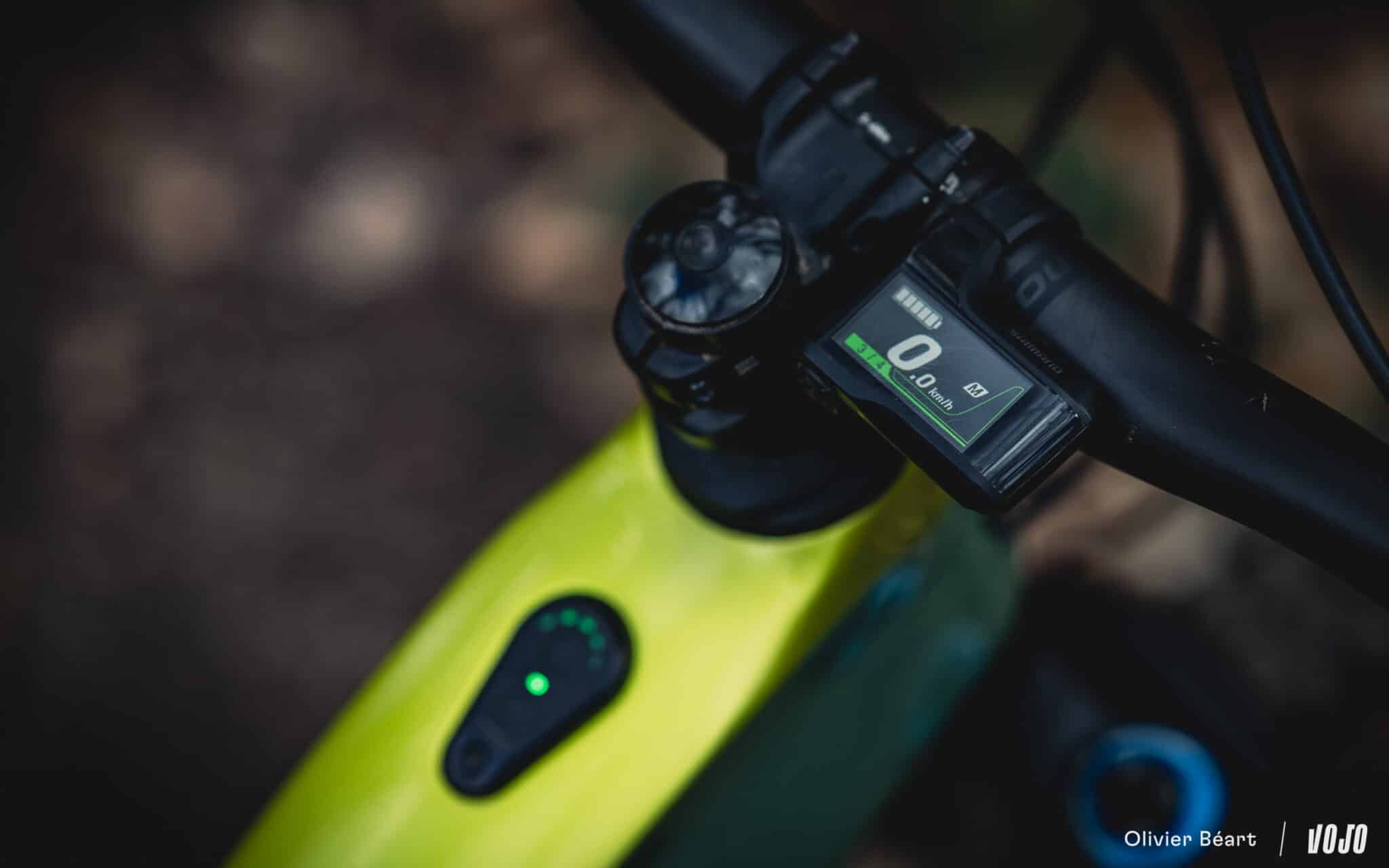 Pour autant, il ne manque pas de poigne, ce EP801 ! On sent bien les 85 Nm de couple quand on en a besoin pour des grimpettes aux pourcentages sévères et quand on veut en remettre une couche dans une ascension. Mais même dans ces circonstances, la consommation ne s’envole pas. On en a d’ailleurs profité pour booster un peu les deux premiers modes (Eco et Trail1) programmés par Cannondale car d’origine ils nous ont semblé un poil faiblards, même pour des pilotes autour de 70 kg. Et on peut se le permettre sans grever l’autonomie. Autre regret, l’afficheur à l’ancienne met trop en évidence la vitesse instantanée mais pas assez le mode d’assistance. On aurait préféré l’écran de dernière génération, plus complet et plus clair.