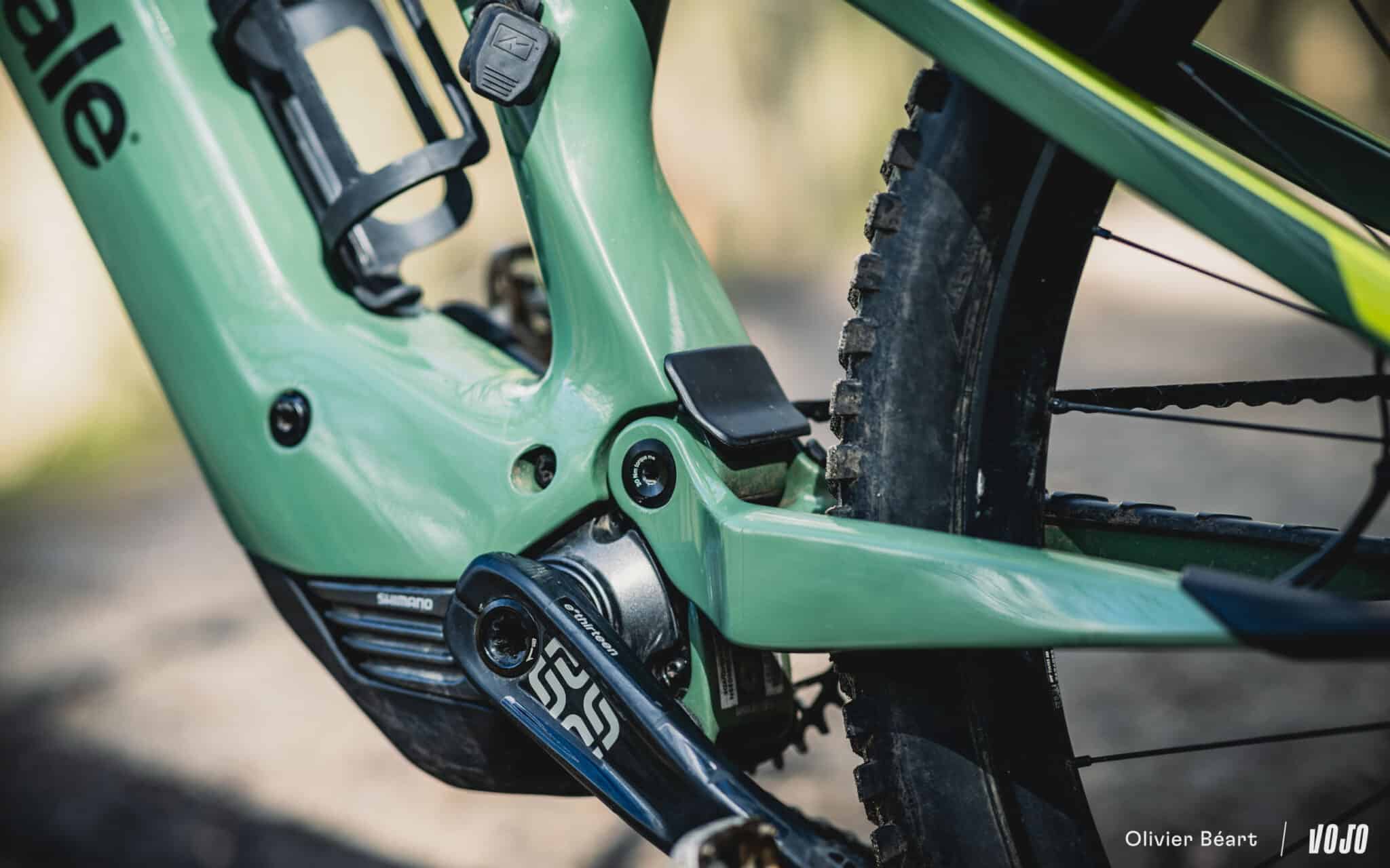 Sur notre modèle d’essai, c’est Fox qui est aux commandes des suspensions avec une fourche Fox Float 36 Factory Grip2 de 160 mm et un amortisseur Fox Float X Factory développant 150 mm de débattement. Pas besoin d’une fourche avec des plongeurs en 38mm pour le programme du vélo, ni d’un amortisseur plus gros : on valide ces choix.