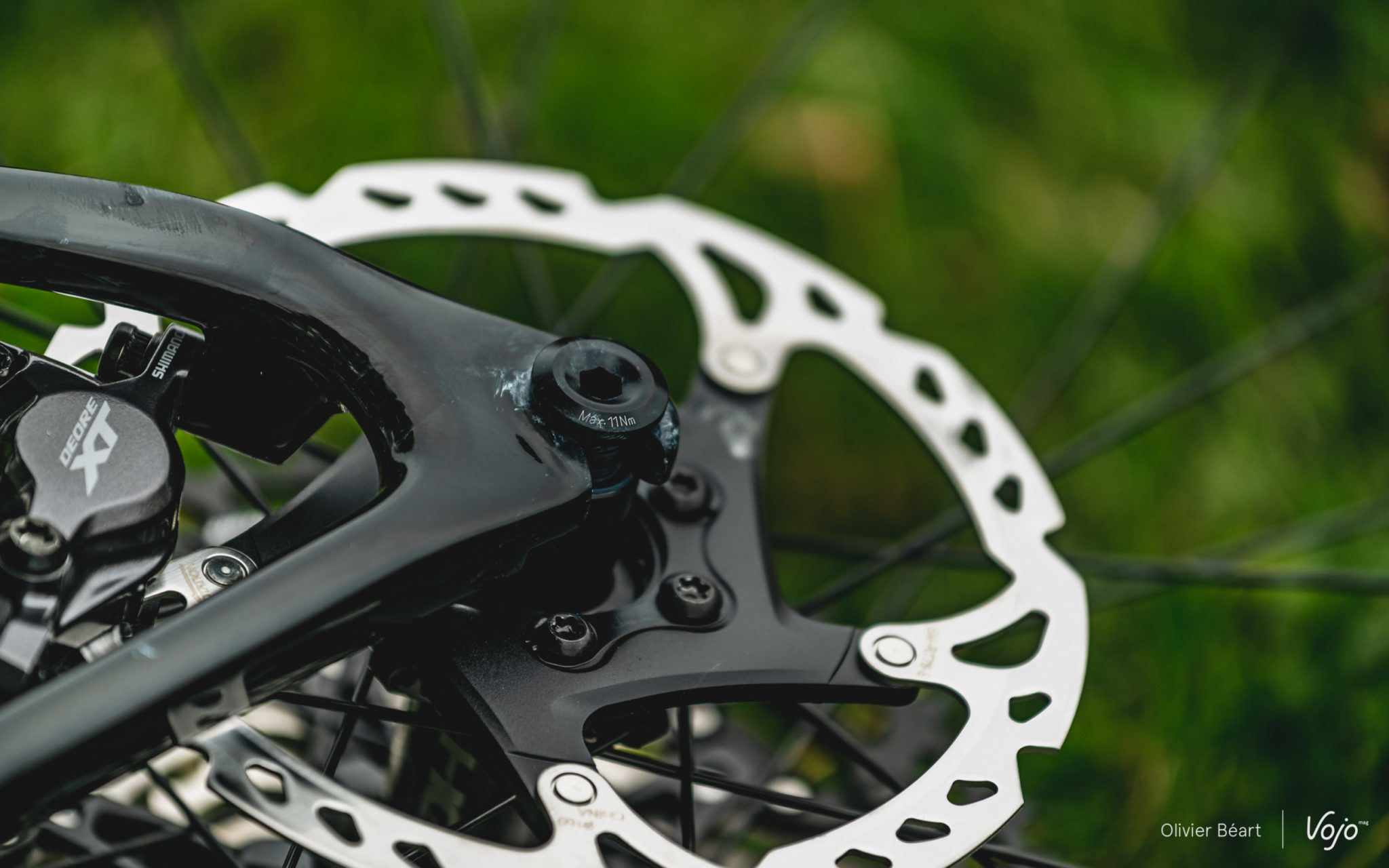 On remarque aussi la patte de roue arrière gauche en demi-lune, déjà présente sur d’autres modèles, qui permet de retirer plus facilement la roue et de ne pas avoir à enlever complètement l’axe du moyeu. Tellement simple, pratique et ingénieux qu’on se demande pourquoi d’autres marques n’emboîtent pas le pas, au moins en XC.