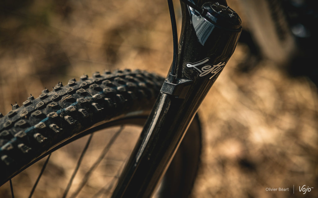 Sur notre Cannondale Scalpel Carbon Hi-Mod 1, la fourche maison Headshock Lefty Ocho est proposée en 110mm de débattement, soit 10mm de plus que les autres versions. On peut même la convertir en 120mm si on le souhaite avec un simple passage en atelier. Ce choix montre que Cannondale a voulu mettre en avant sur son modèle phare le confort et les capacités du vélo sur les terrains techniques. Nous verrons sur le terrain que c’est un choix pertinent et qui se ressent. D’autant que si la Lefty ne nous a pas toujours convaincus par le passé, la version Ocho se distingue aussi par un amortissement de grande qualité, qui n’a pas à rougir par rapport à Fox ou RockShox.