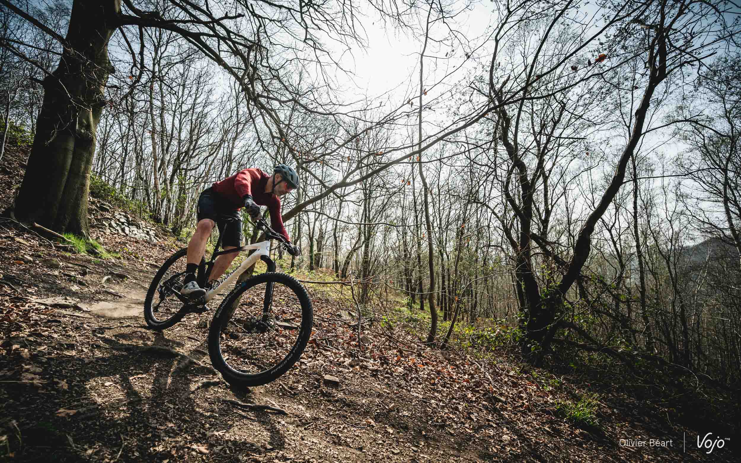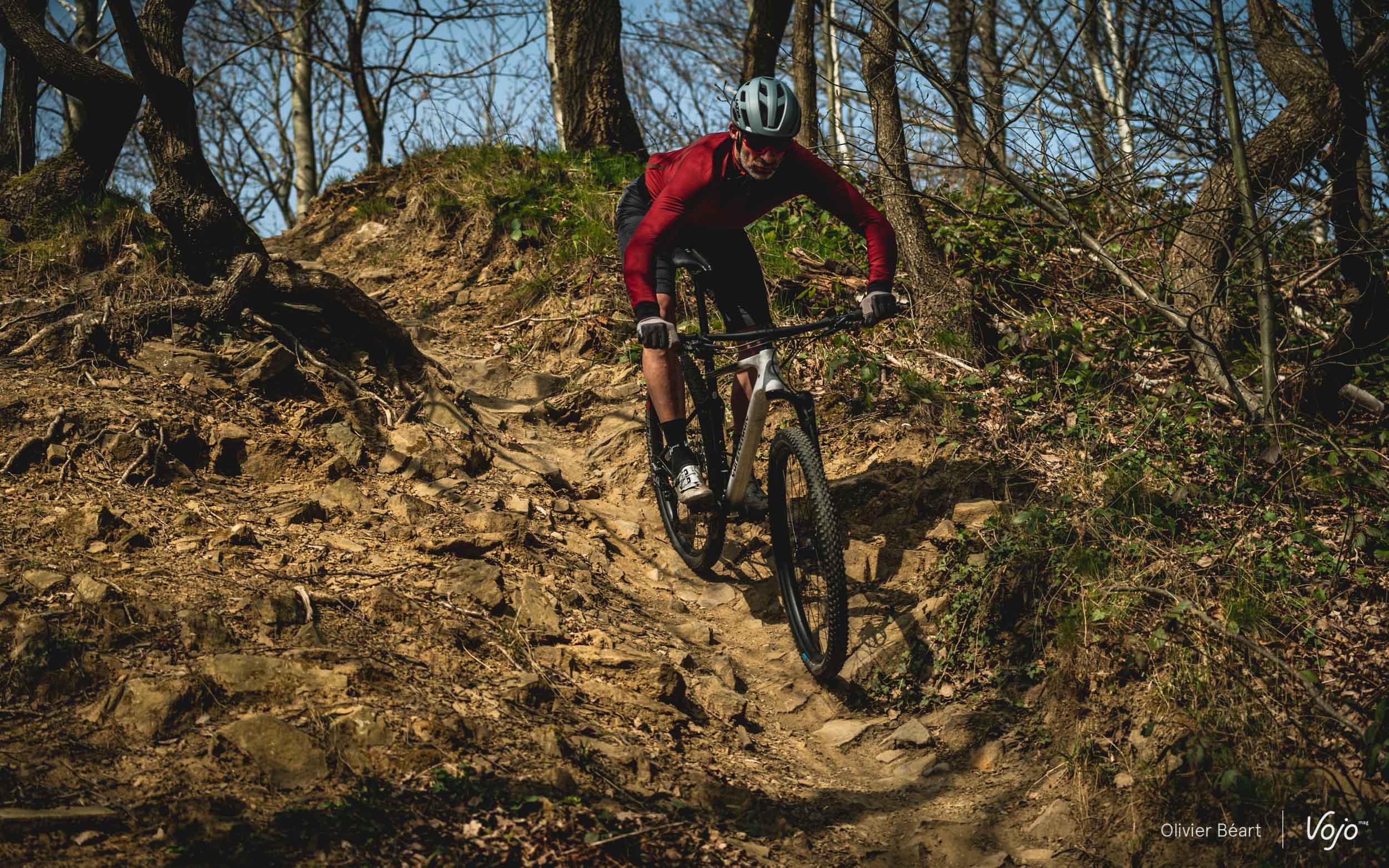 Dans les ascensions plus longues, c’est du même tonneau. On appuie sur les pédales et on se sent comme poussé en avant à chaque tour de manivelle. Pour autant, le grip n’est pas en berne et on n’a pas l’impression de devoir se battre en permanence avec le vélo pour trouver l’adhérence. Visiblement, le travail sur l’arrière du vélo porte ses fruits et sous des dehors exubérants, le Scalpel HT se montre bien plus doux qu’on aurait pu l’imaginer. Avec la fourche en 110mm, la position nous a paru particulièrement équilibrée et il nous a semblé facile de garder la roue avant au sol pour trouver sa trajectoire, même dans les très forts pourcentages.