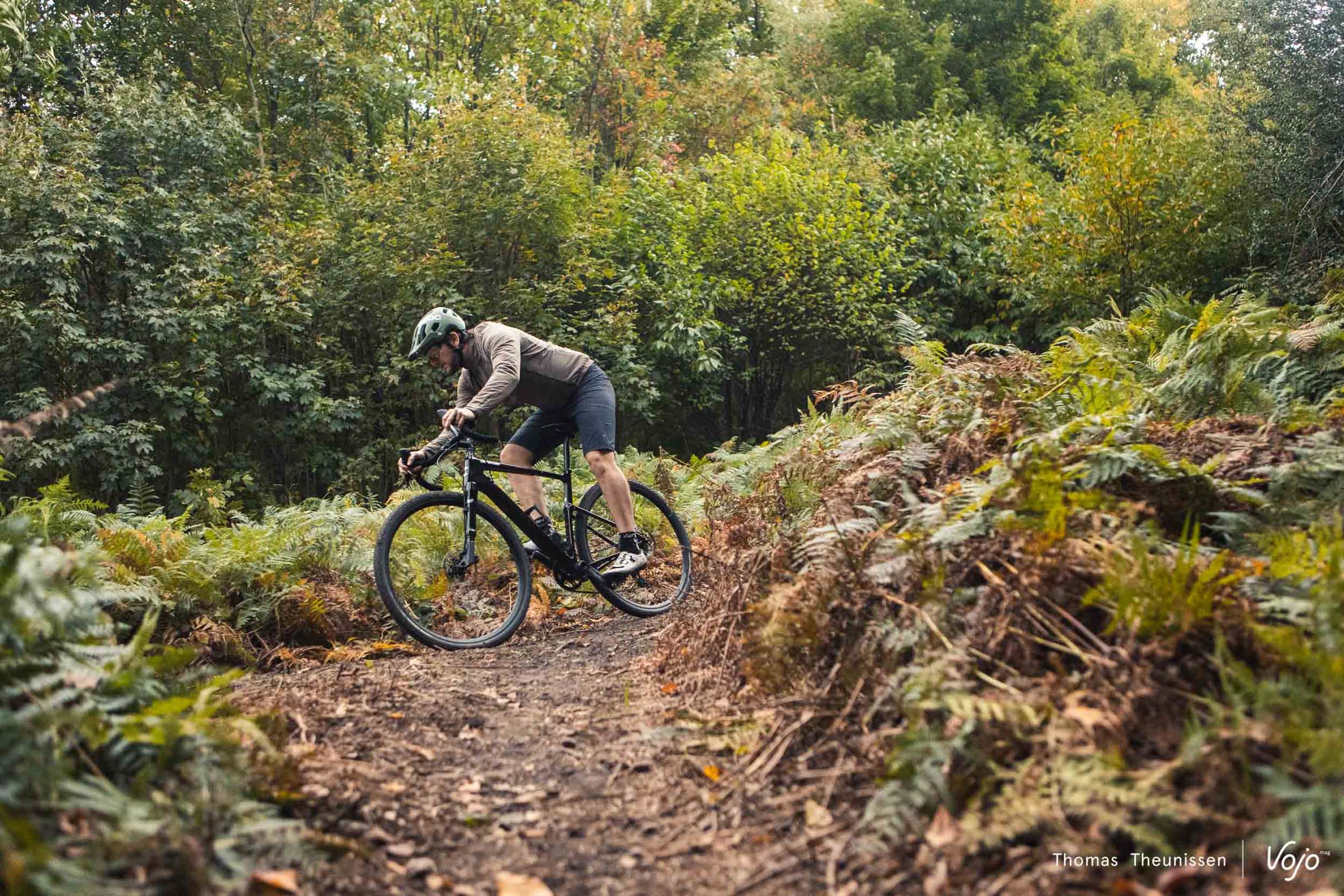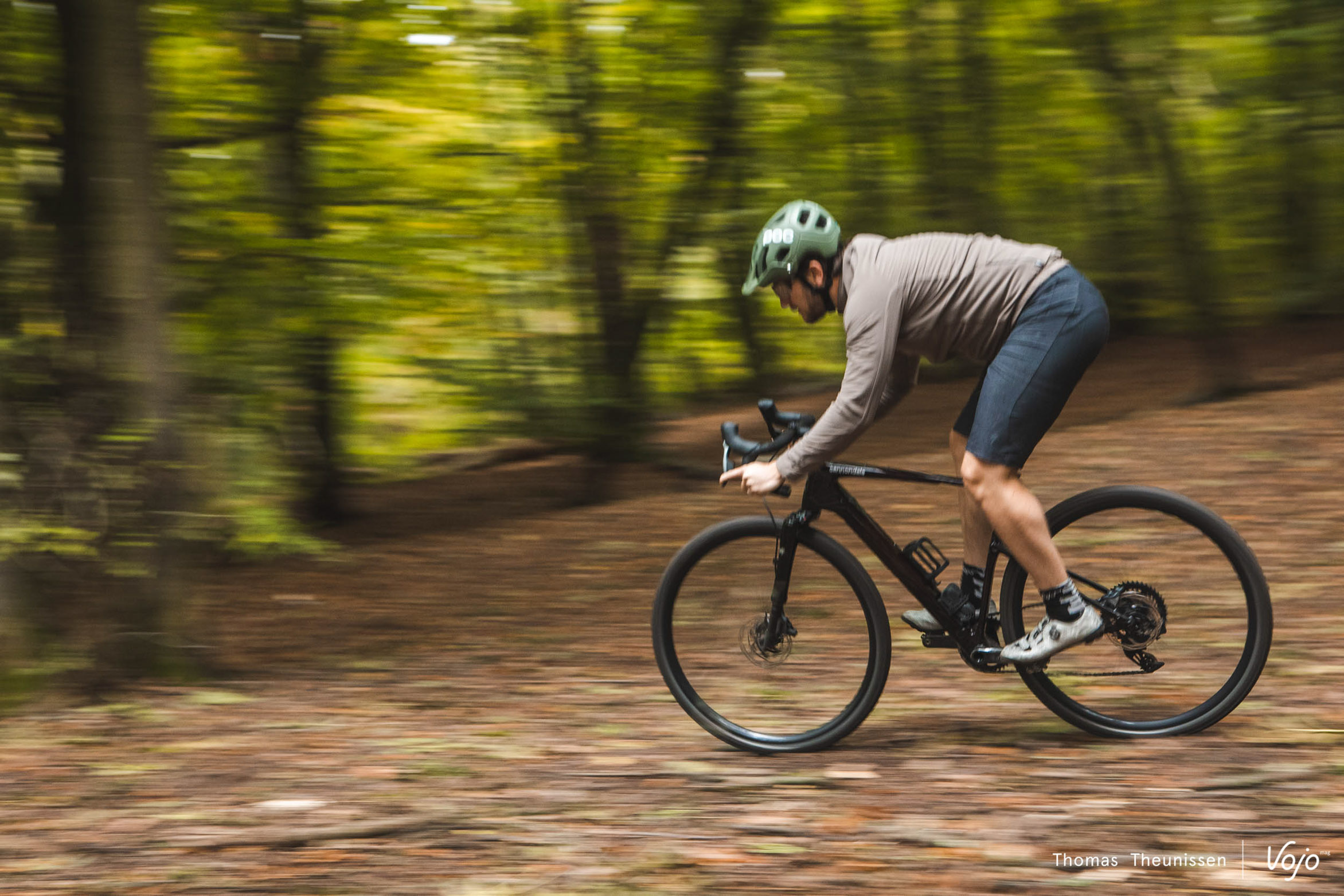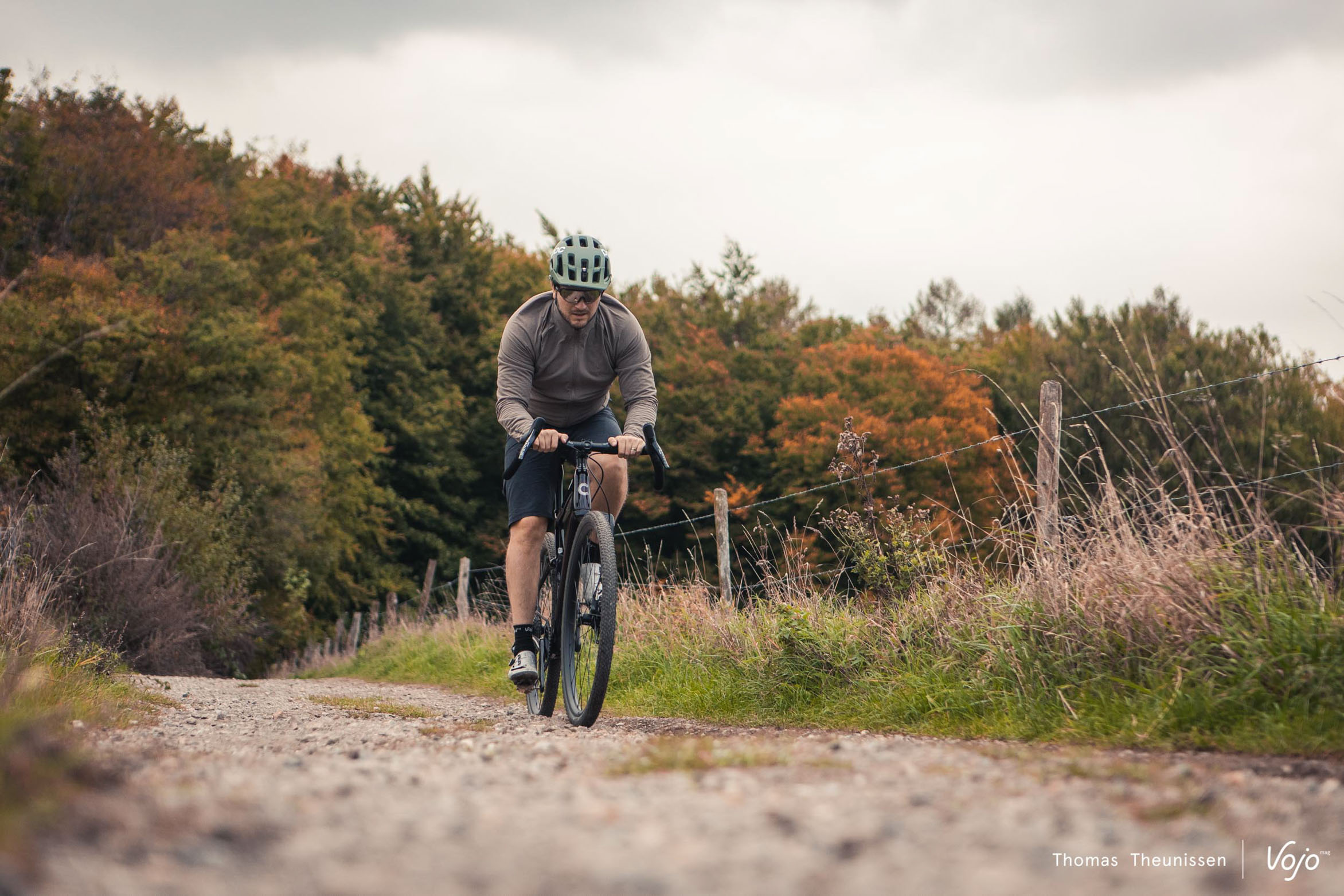 Du côté des équipements, rien à redire, le groupe Sram Force AXS XPLR fonctionne parfaitement et les changements de rapports du dérailleur électronique sont toujours aussi agréables de douceur et de précision. Avec la cassette 10-44 et le pédalier 40 dents, nous ne nous sommes pas sentis limités dans le programme du vélo. Le freinage Sram est bon, même s’il n’est pas le plus puissant. Nous avons déjà dit tout le bien que nous pensons des roues, mais au niveau du train roulant, il faut aussi souligner les excellents pneus Vittoria Mezcal qui sont solides, accrocheurs et sécurisants tout en restant vraiment roulants.