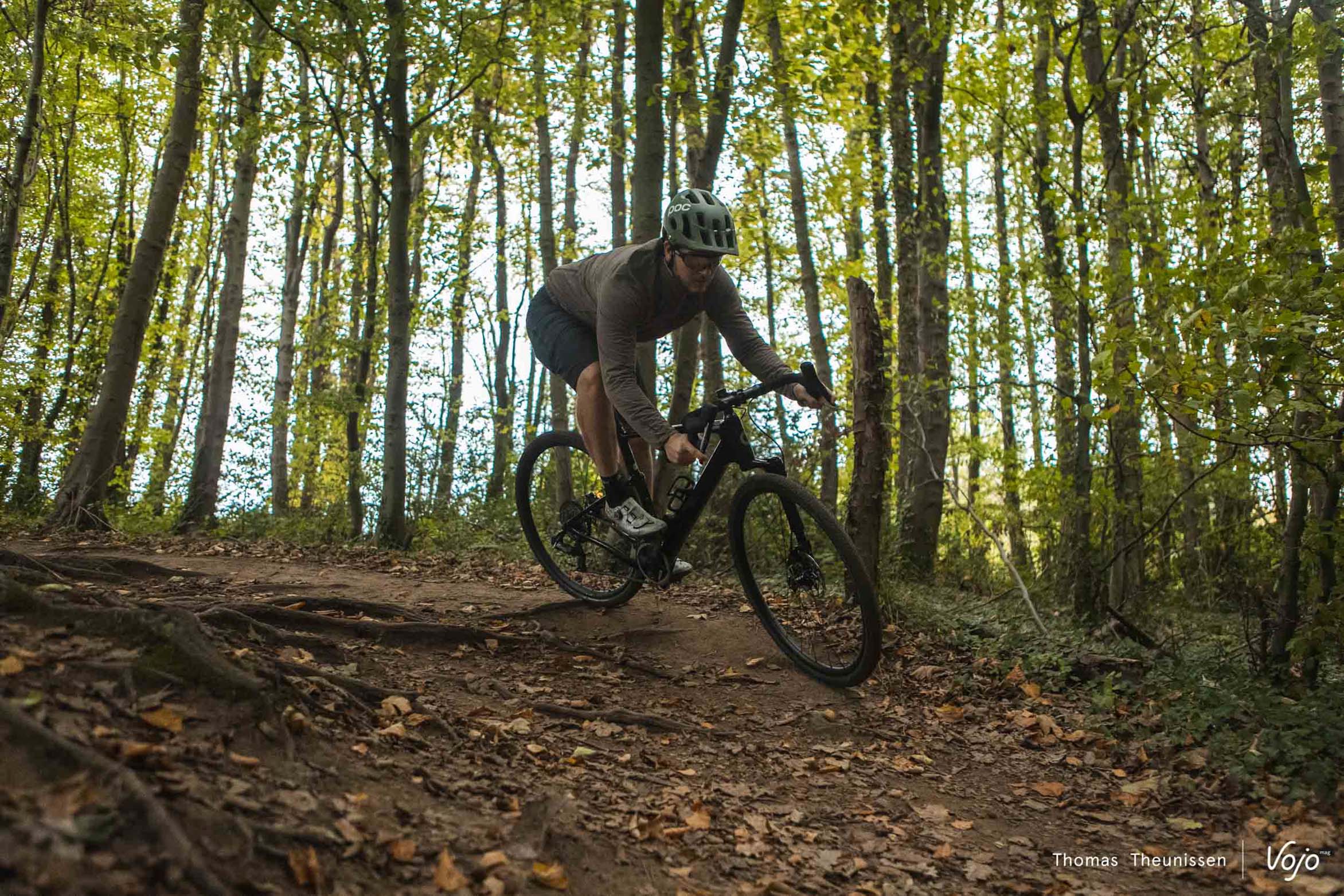 Avoir une fourche à l’avant sur un cadre raide comme la justice ne sert à rien et peut même s’avérer désagréable par manque de cohérence de l’ensemble. Ici, l’alchimie est parfaite avec le KingSpin à l’arrière, qui ne se ressent absolument pas au pédalage et qui n’engendre aucun pompage perceptible ou autre mouvement parasite, mais qui filtre particulièrement bien les vibrations lui aussi, et qui joue beaucoup dans la cohérence de l’ensemble du vélo. Il faut aussi signaler que la tige de selle, flexible, apporte sa pierre à l’édifice au niveau de la filtration des vibrations.
