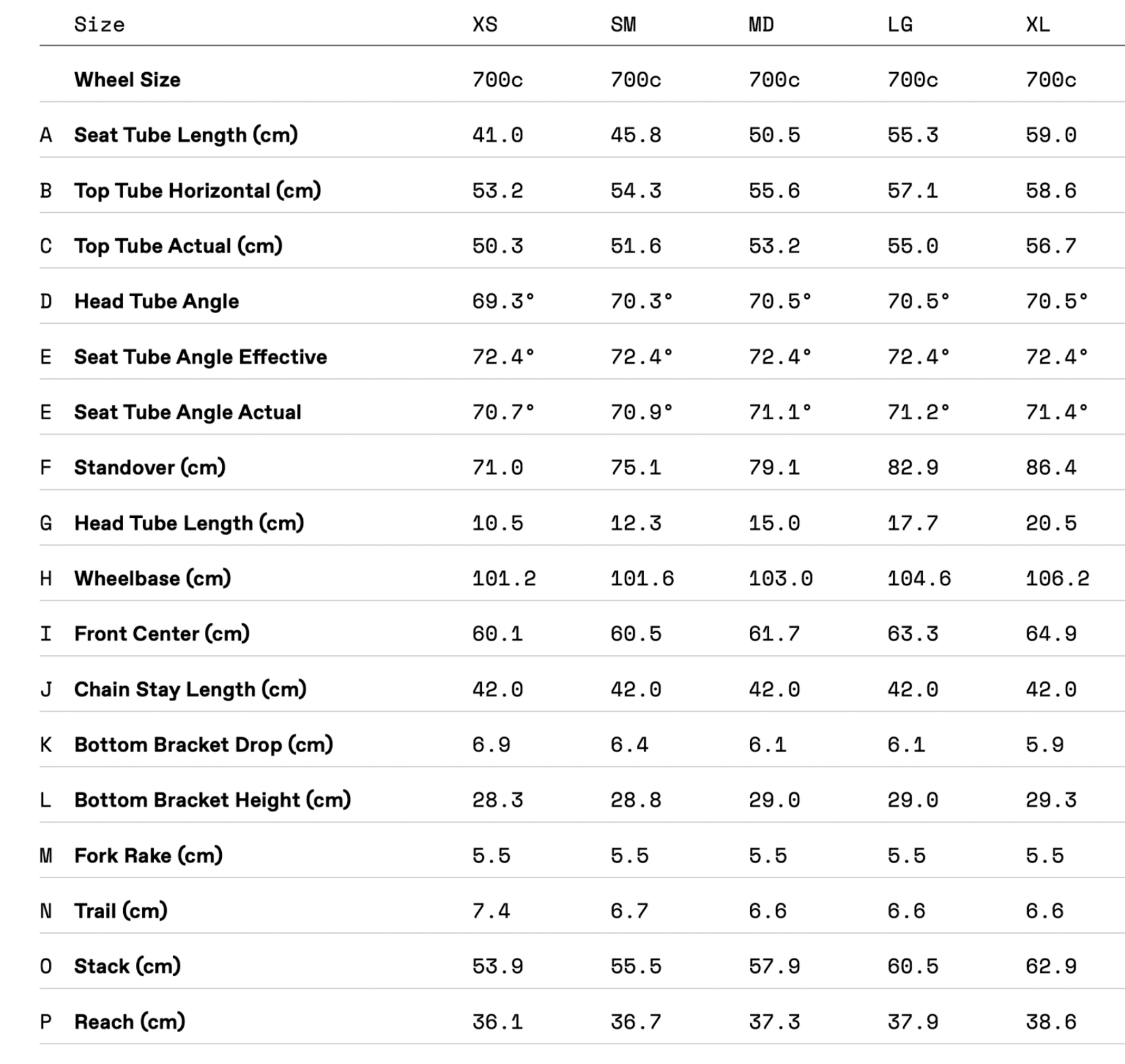 Afin d’offrir un cadre le plus adapté possible à la taille du pilote, cette géométrie est évolutive en fonction de la taille du cadre. Dénommée « Proportional response », cette conception fait par exemple varier le reach de 361 mm en taille XS jusqu’à 386 mm pour le cadre en taille XL.