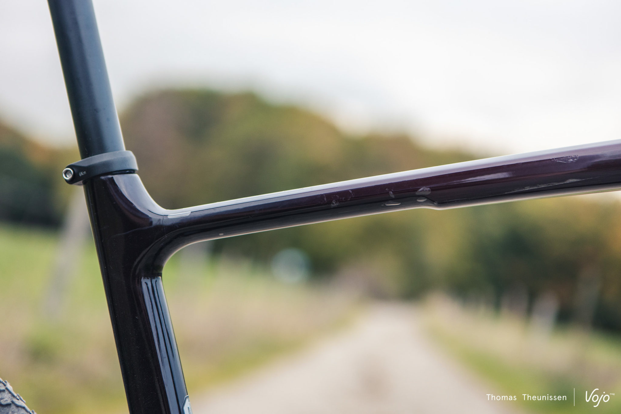 Avec 9,8kg sur la balance, ce n’est pas vraiment un poids plume pour un gravel haut de gamme. Mais quand on le roule, il dégage immédiatement une réelle impression de légèreté et de dynamisme. Les accélérations sont franches, tranchantes même, et le petit système de suspension arrière KingSpin ne donne absolument pas l’impression de manger la moindre énergie du pilote. Au contraire, on a la sensation d’avoir un cadre à la fois très performant mais pas trop exigeant et qui ne demande pas de développer des milliers de watts pour en tirer le meilleur grâce à une rigidité parfaitement dosée.