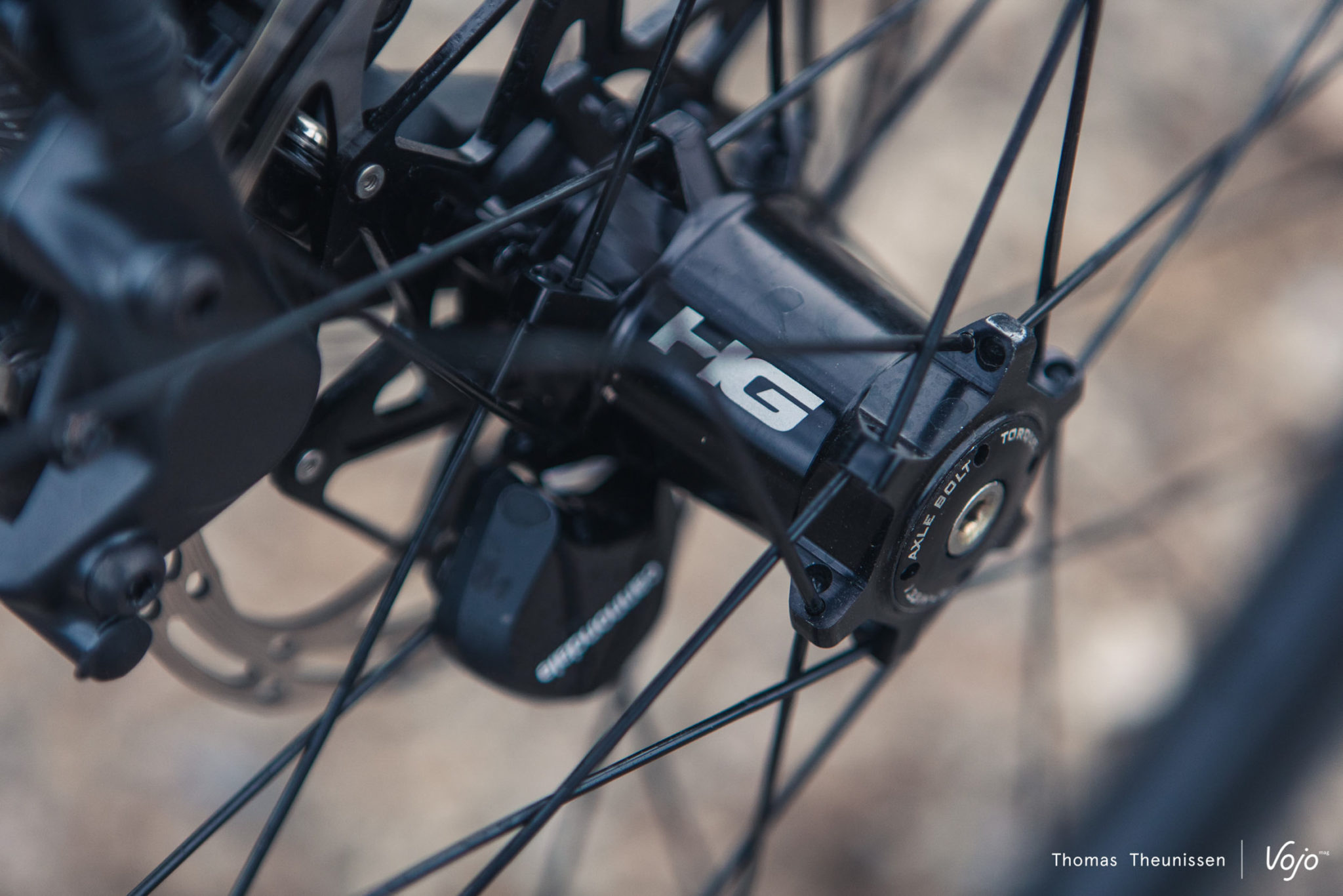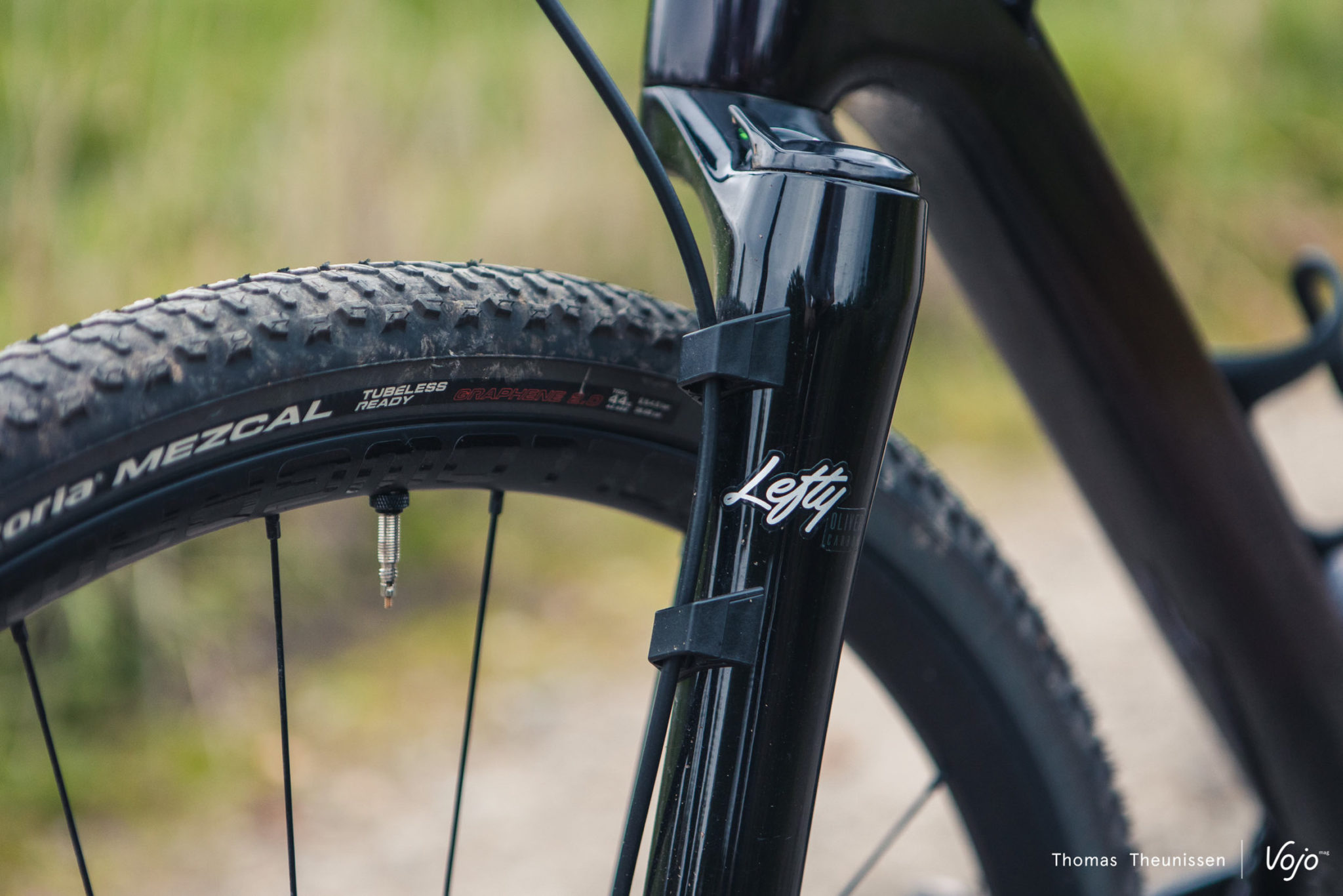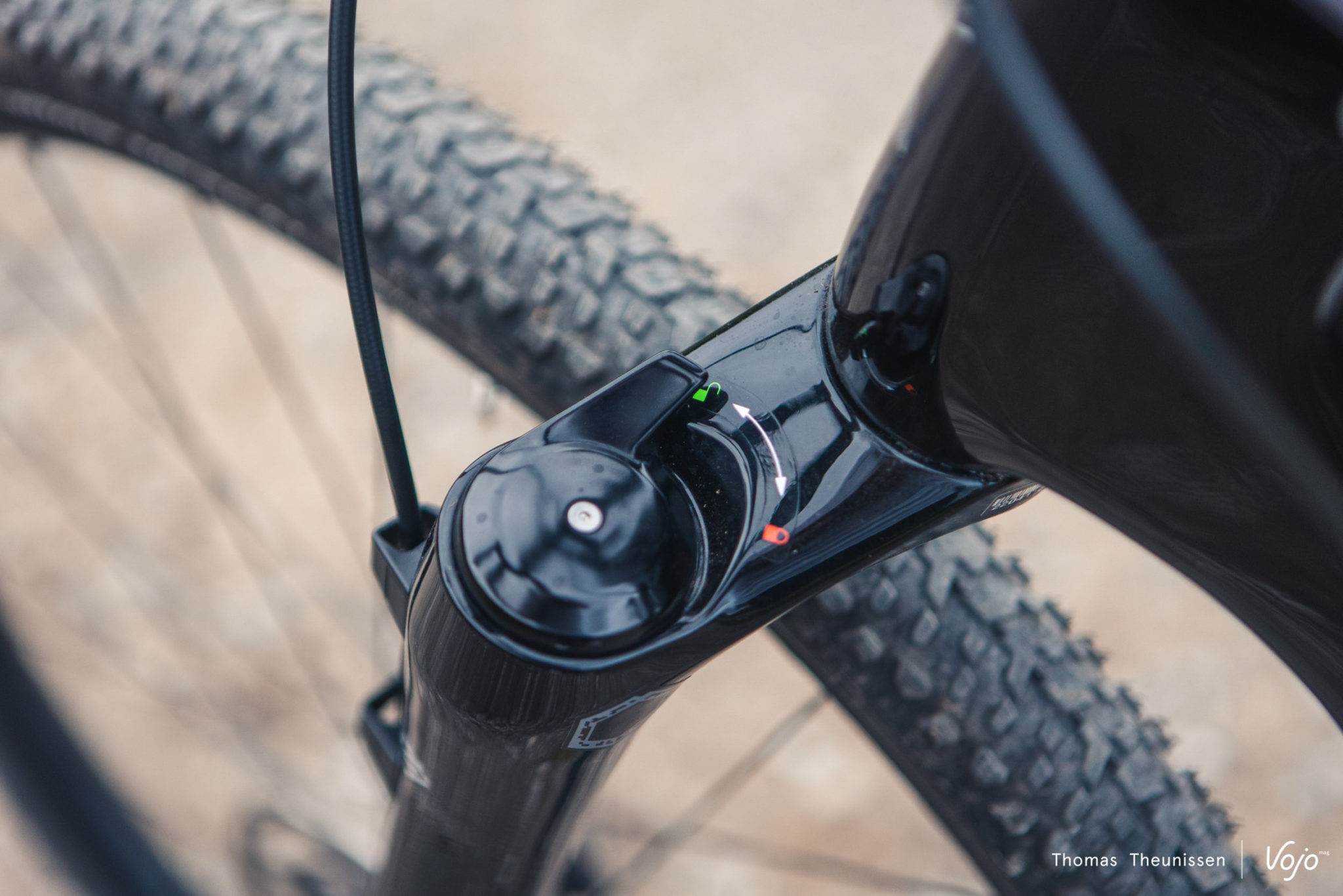 Pour le reste, une commande de blocage est placé sur le haut de la fourche et permet de verrouiller cette Lefty Oliver pour les portions d’asphalte ou les sprints. Le verrouillage est complet, ce qui s’apparente davantage à un atout sur ce genre de machine.