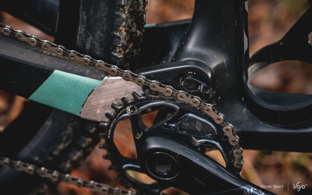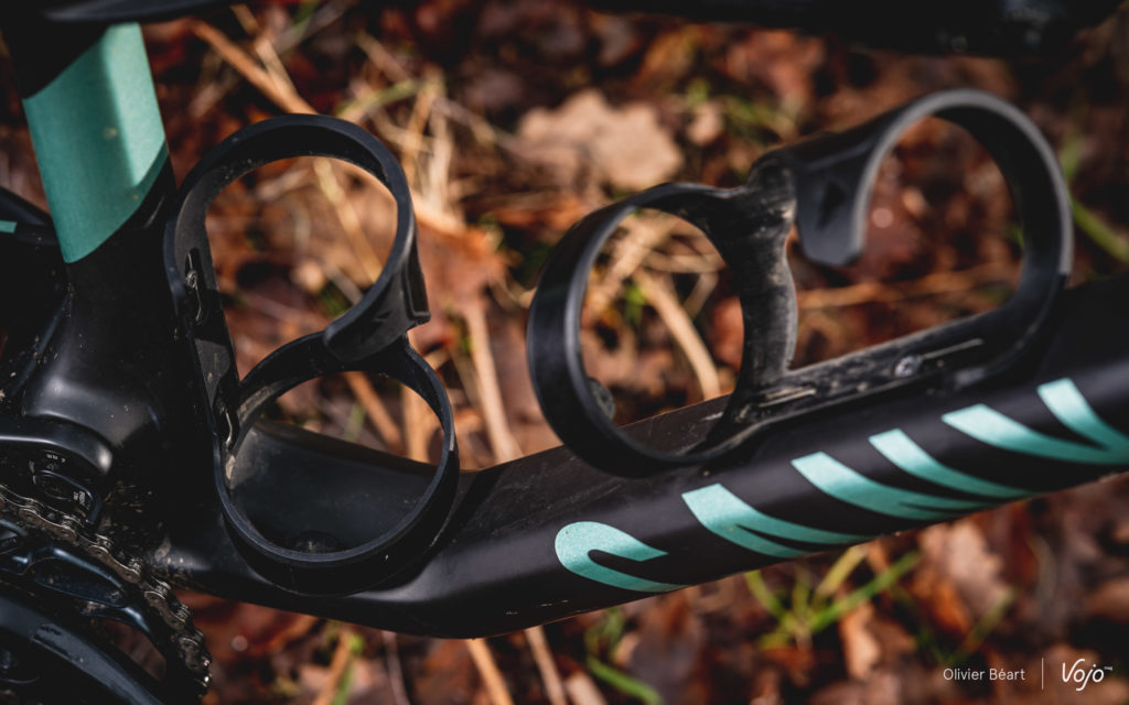 Cette version CFR bénéficie de roulements CeramicSpeed SLT au niveau du cadre et du jeu de direction, qui présentent l’avantage selon le fabricant d’être autolubrifiants et garantis à vie. Il nous faut faire une mention spéciale également pour ce guide-chaine minimaliste, qui ne pèse que 4,6 g et pour l’axe de roue arrière Quixle, avec son petit levier rétractable discret et très pratique. Enfin, le dégagement du cadre permet d’emporter 2 bidons lors de sa sortie, et ce même en taille XS.