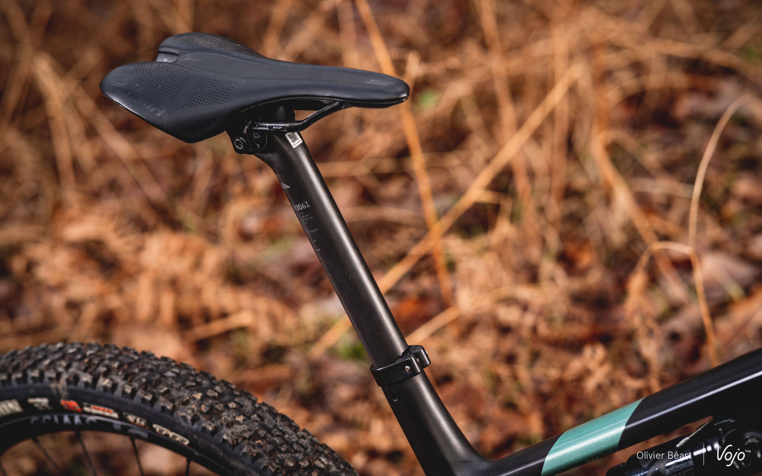 On l’a abordé : l’absence de tige de selle télescopique nous a surpris sur ce genre de vélo. Alors, oui, ça lui permet certainement de passer sous les 10kg et de garder un prix inférieur à 8000€, mais c’est un accessoire dont on a de plus en plus de mal à se passer sur ce genre de machine. Pour un usage marathon, elle est peut-être moins indispensable, mais si on veut vraiment ouvrir tout le potentiel de ce Lux en descente et être à l’aise dans les portions plus techniques, c’est vraiment un must. Avec une RockShox Reverb AXS sans fil, on peut faire le changement en quelques secondes et nous avons constaté combien cela apportait à l’agrément de pilotage du vélo. Outre une meilleure position dans le raide et plus de confiance, arriver à basculer le poids du corps plus facilement sur l’arrière permet aussi de mieux faire travailler la suspension, ce qui n’est pas négligeable sur un vélo qui est à la base assez ferme comme le Lux WC.
