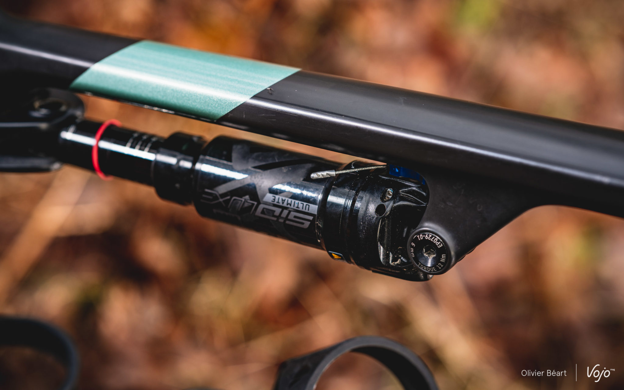 Si cette forme du cadre, et plus précisément ce placement de l’amortisseur au plus proche du tube supérieur, est au service de la performance, cela se fait par contre au détriment de toute praticité. Le réglage du rebond s’avère être un réel casse-tête, l’accès à la molette de réglage sur le SID Deluxe étant des plus exigus. Ce n’est pas un réglage qu’on modifie souvent mais tout de même…