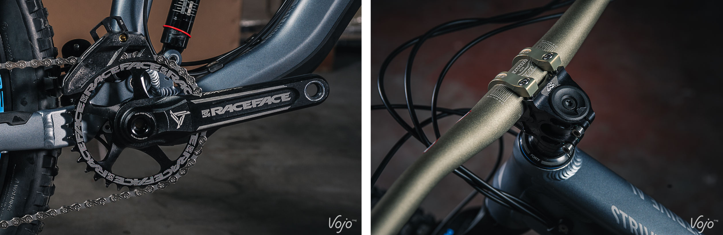 … On dispose aussi de composants plus orientés vers la performance pure dans le cas du Race, avec notamment la potence courte, mais aussi d’office un pédalier mono-plateau par exemple. Le Strive « tout court » est quant à lui plus tourné vers une certaine polyvalence avec notamment deux plateaux à l’avant et une géométrie qui favorise un peu plus le pédalage.