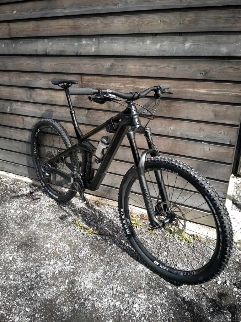 Notre modèle CF 6.0 est équipé de roues DT Swiss E 1900 Spline de 30mm de largeur interne. Compatibles tubeless, ces roues sont chaussées des célèbres Maxxis Minion DHR II à l’avant comme à l’arrière, en 2.4 de section et carcasse EXO. Le train roulant n’a pas fait preuve d’un dynamisme impressionnant, mais il est venu apporter beaucoup de grip au vélo en terrain technique.