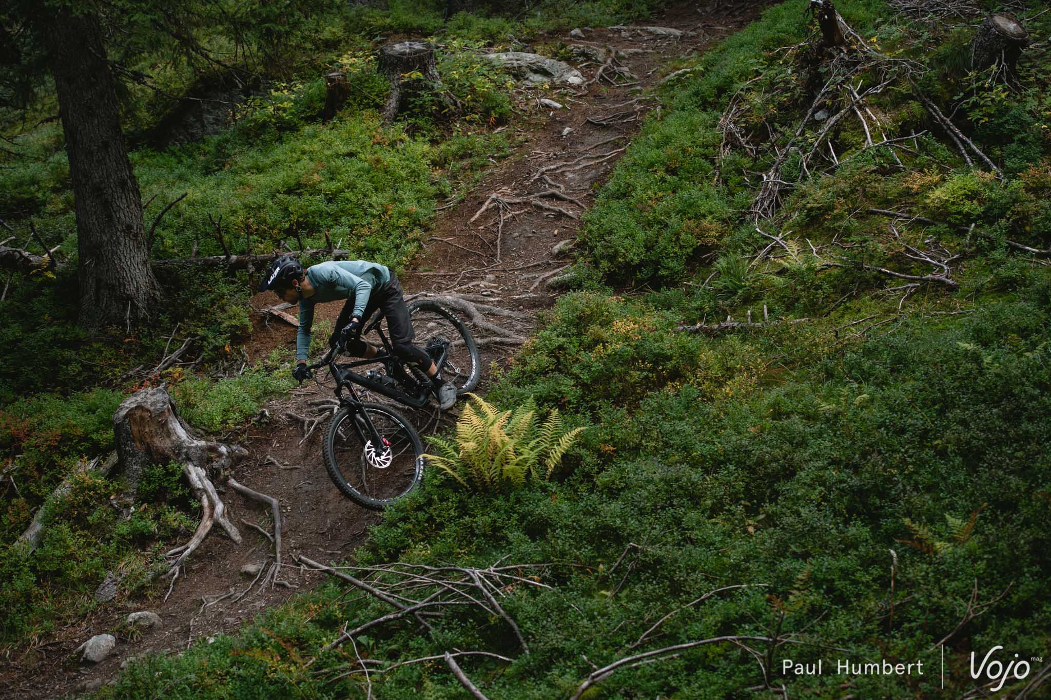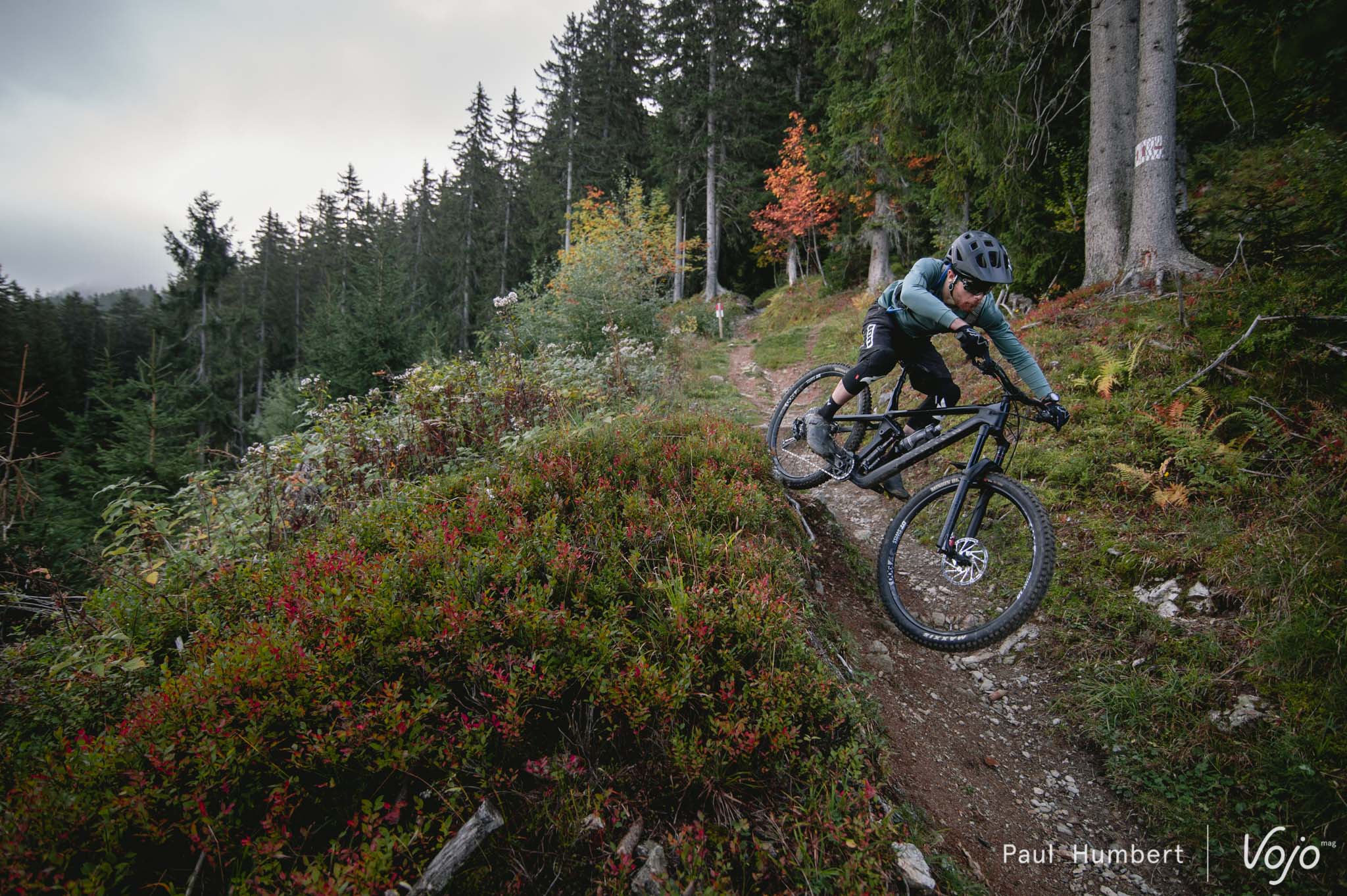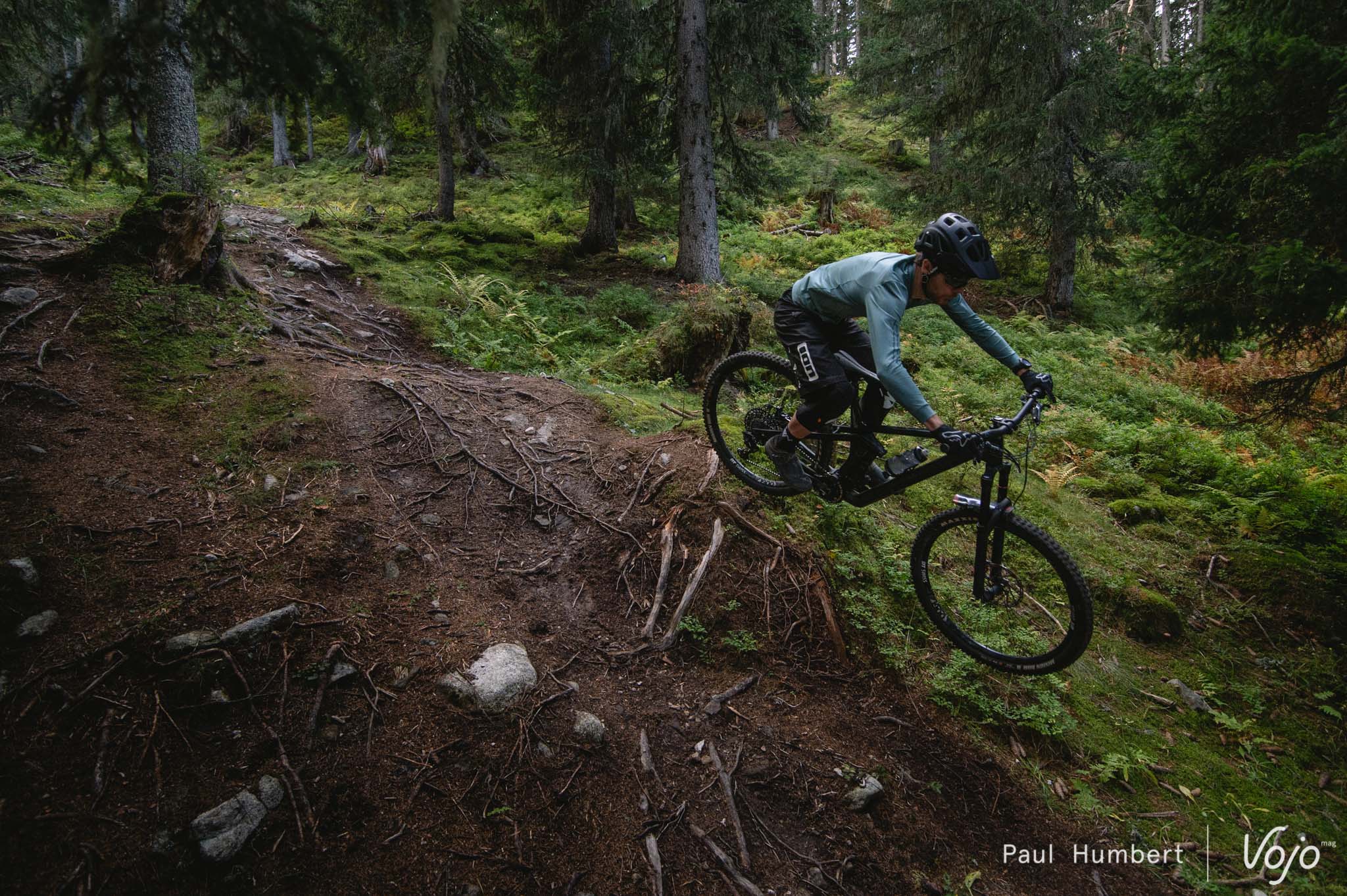 Le vélo est facile à placer et réagit bien aux actions du pilote, sans excès. Au pédalage, ce n’est pas le plus dynamique dans cette version d’entrée de gamme qui dépasse les 15kg mais, grâce au Shapeshifter, on peut passer en un clic d’une position équilibrée pour la descente à une position qui permet de pédaler plusieurs heures sans souci.