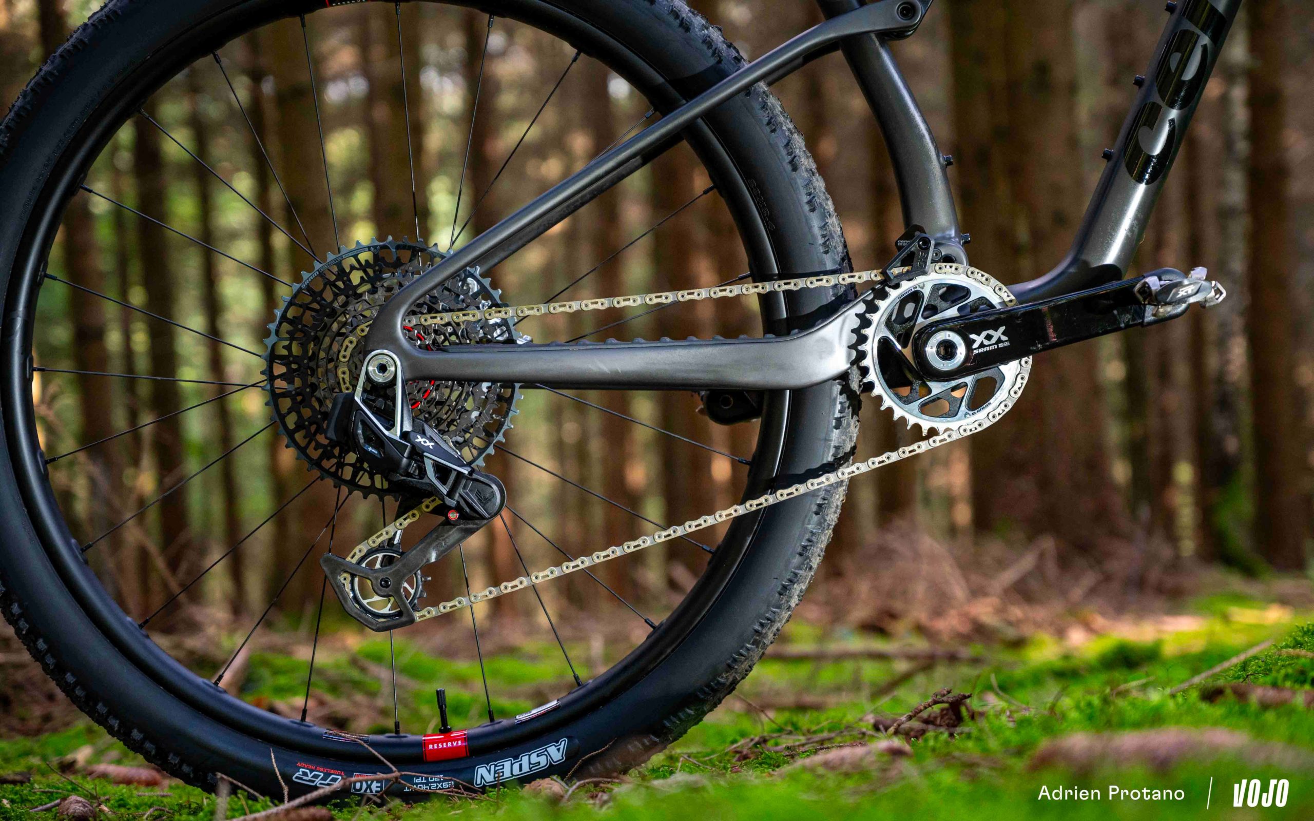 Le nec le plus ultra se trouve du côté de la transmission avec un groupe Sram T-Type XX SL. De ce côté là, difficile de faire mieux ! (lire : Test | Sram Eagle AXS 2023 : sans égal)