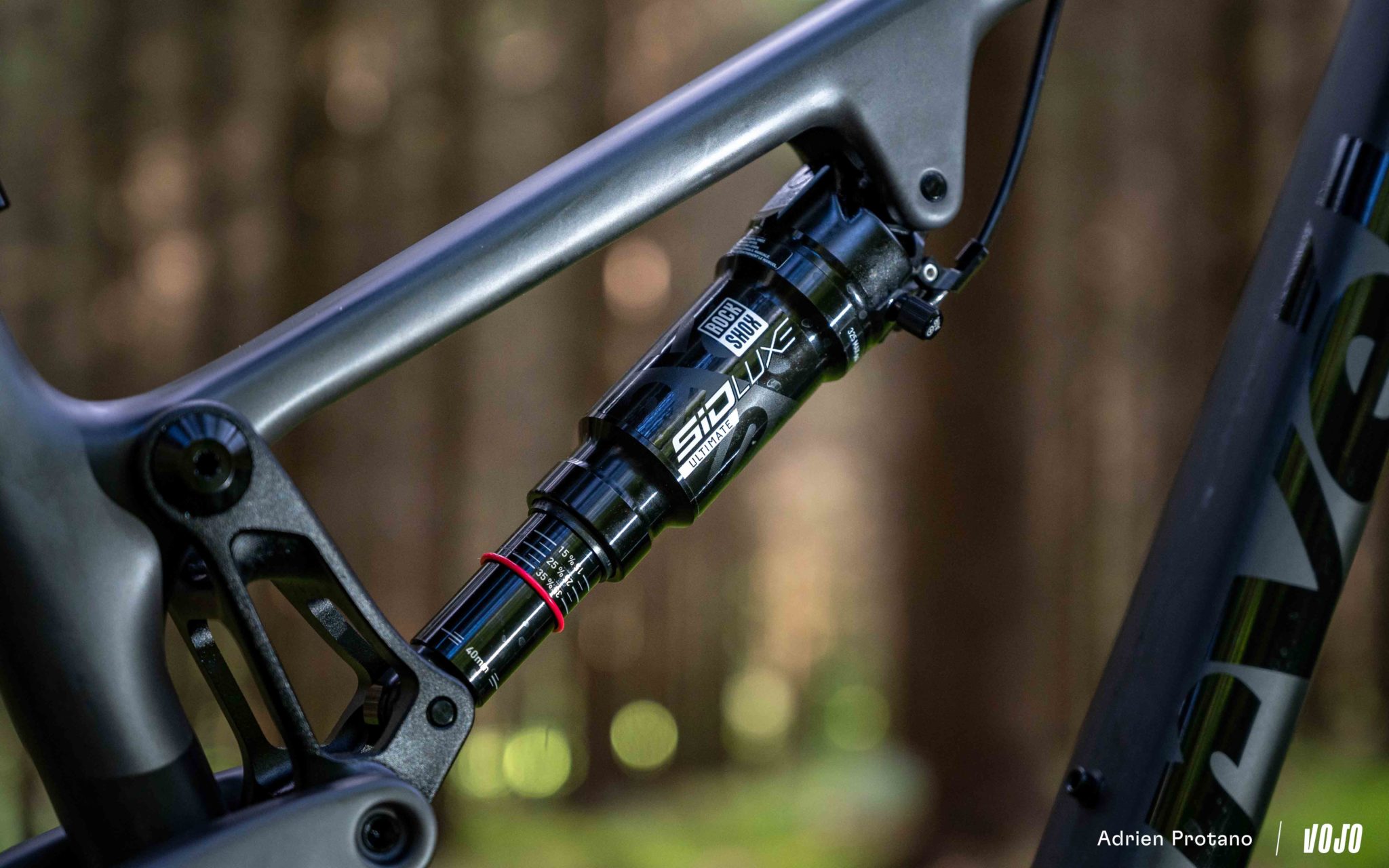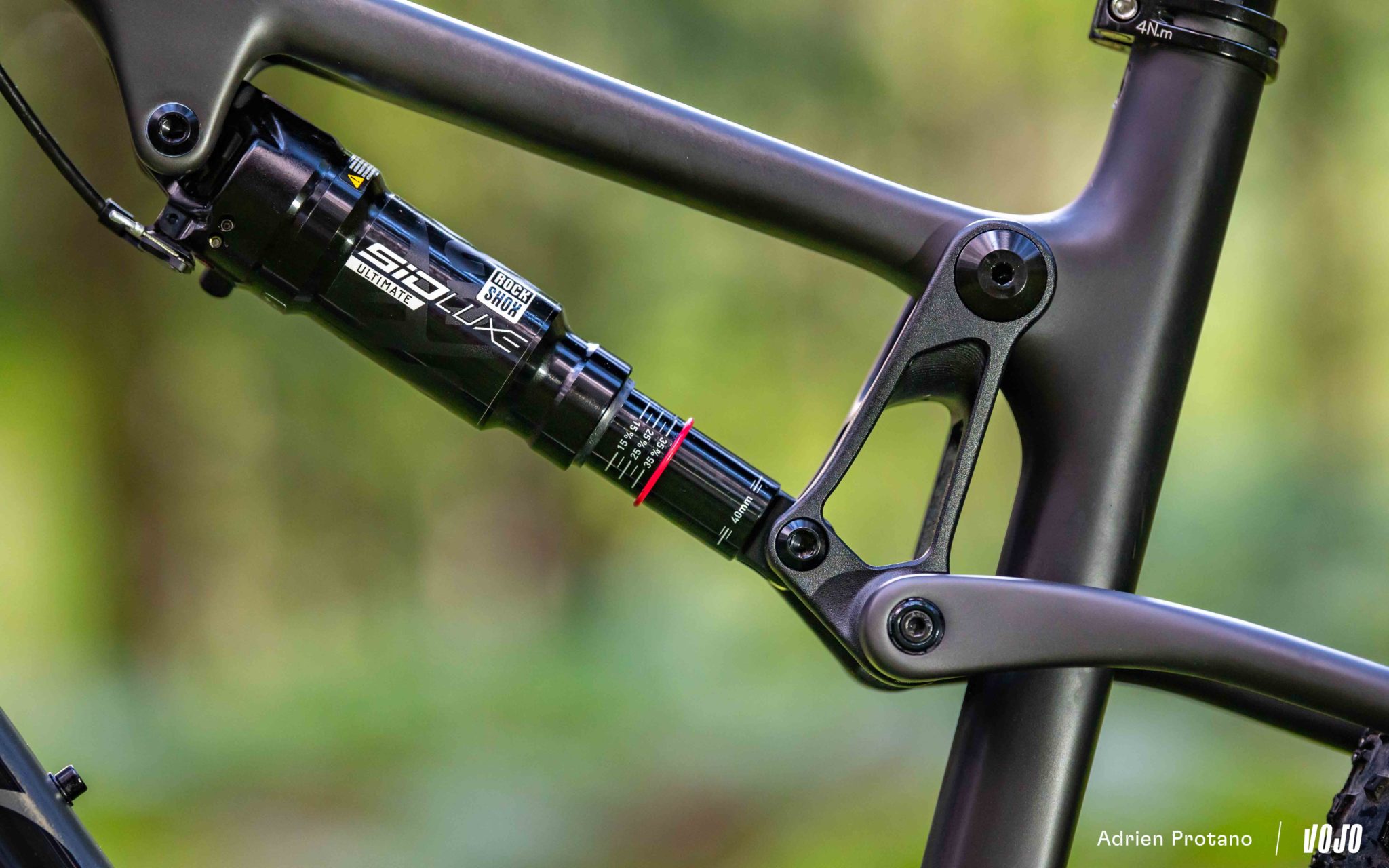 La grande sensibilité des suspensions, et de la cinématique, sur la première partie du débattement joue grandement dans ce caractère facile, stable et confortable. Le vélo est agréable à piloter dans la pente, offrant de bonnes sensations et du plaisir de pilotage, parfois absent sur ce type de châssis exclusif.