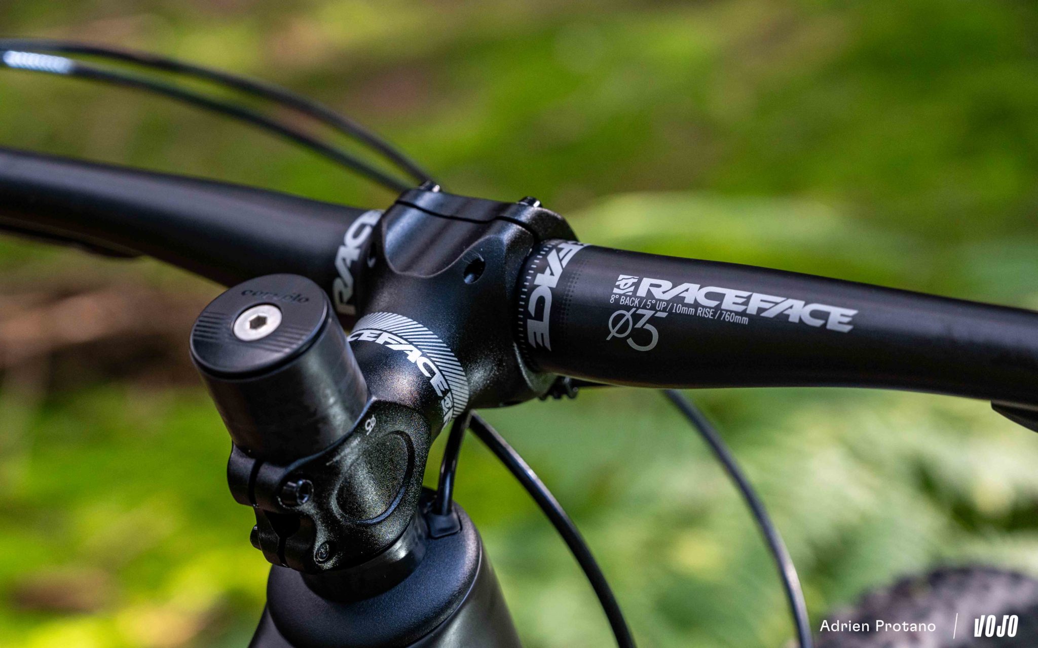 Du côté des périphériques, le poste de pilotage est un Race Face Next Carbon, avec un cintre en 760 mm de largeur et 10mm de rise, tandis que la potence est une 60 mm. La selle est une Prologo Dimension NDR Nack. Attention, vous pouvez apercevoir une tige de selle télescopique sur ce ZFS-5 mais il n’en est pourtant pas équipé de série… Nous l’en avons doté pour les besoins du test, définitivement persuadé à la rédaction du bien-fondé de la tige de selle télescopique sur ce type de châssis.
