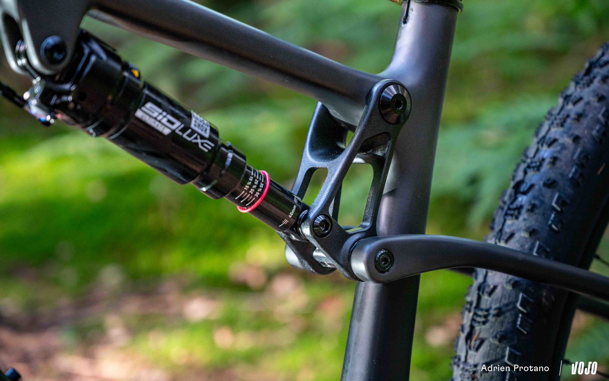 Au niveau de l’architecture de son cadre, Cervélo est finalement resté dans quelque chose d’assez simple avec une suspension à pivot unique et bases flexibles. Même s’il s’agit là du même (ou à tout le moins de son parfait sosie) que celui du Santa Cruz Blur, il nous faut faire une mention particulière pour ce basculeur du plus bel effet grâce à son élégante finition.