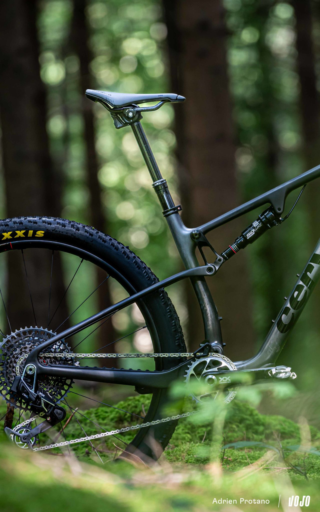 C’est dans sa déclinaison offrant 100 mm de débattement avant/arrière, et dans son montage le plus haut de gamme (XX SL AXS) que nous avons reçu ce Cervélo ZFS-5 pour la durée de notre test.