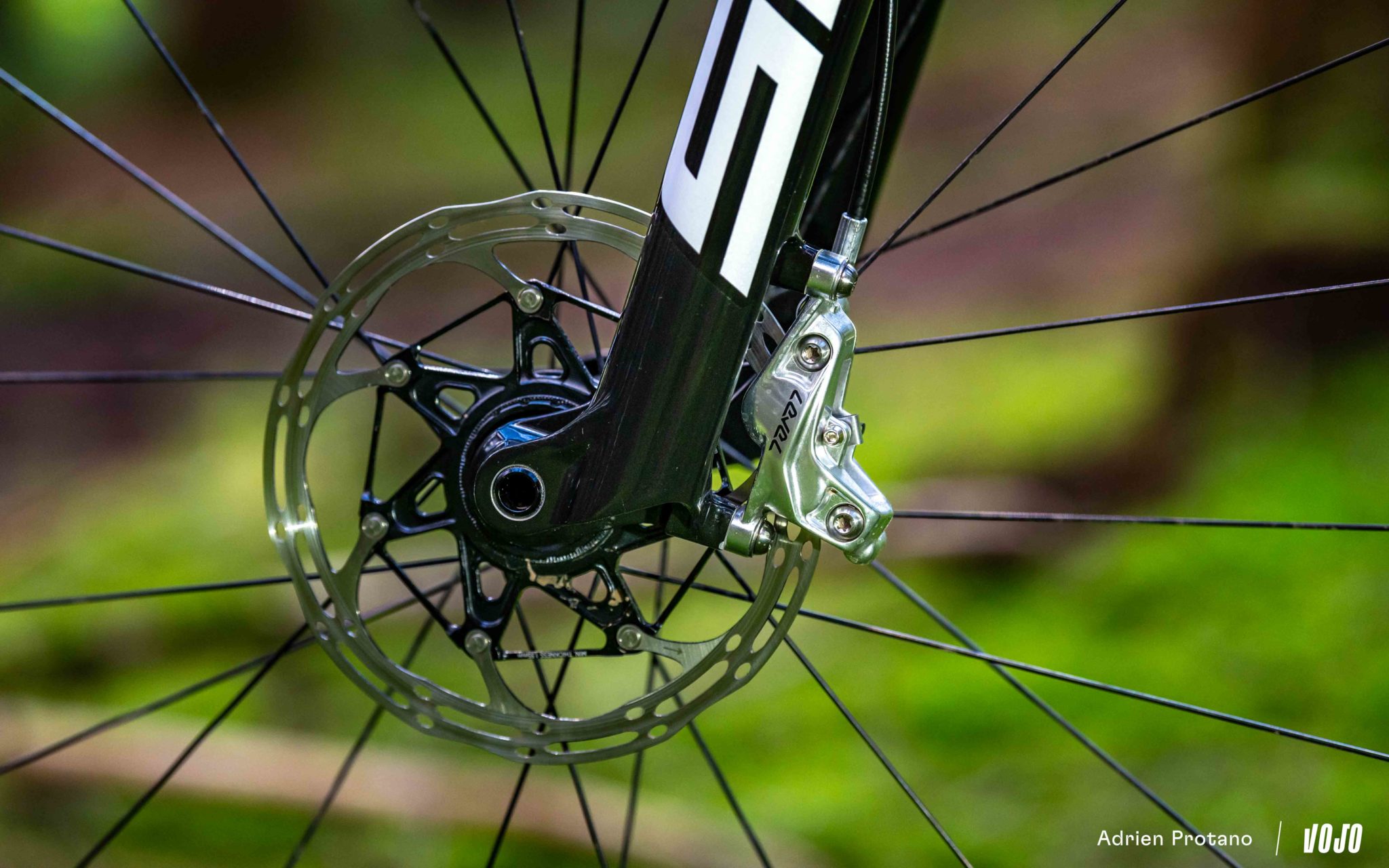 Sram s’occupe également du freinage avec une paire de Level Ultimate Stealth à 4 pistons, associés à des disques flottants Sram CLX centerlock de 160 mm. Pour (re)découvrir notre avis sur cette paire de freins, c’est par ici : Test nouveauté | Freins Sram Level et Code Stealth : changer sans changer