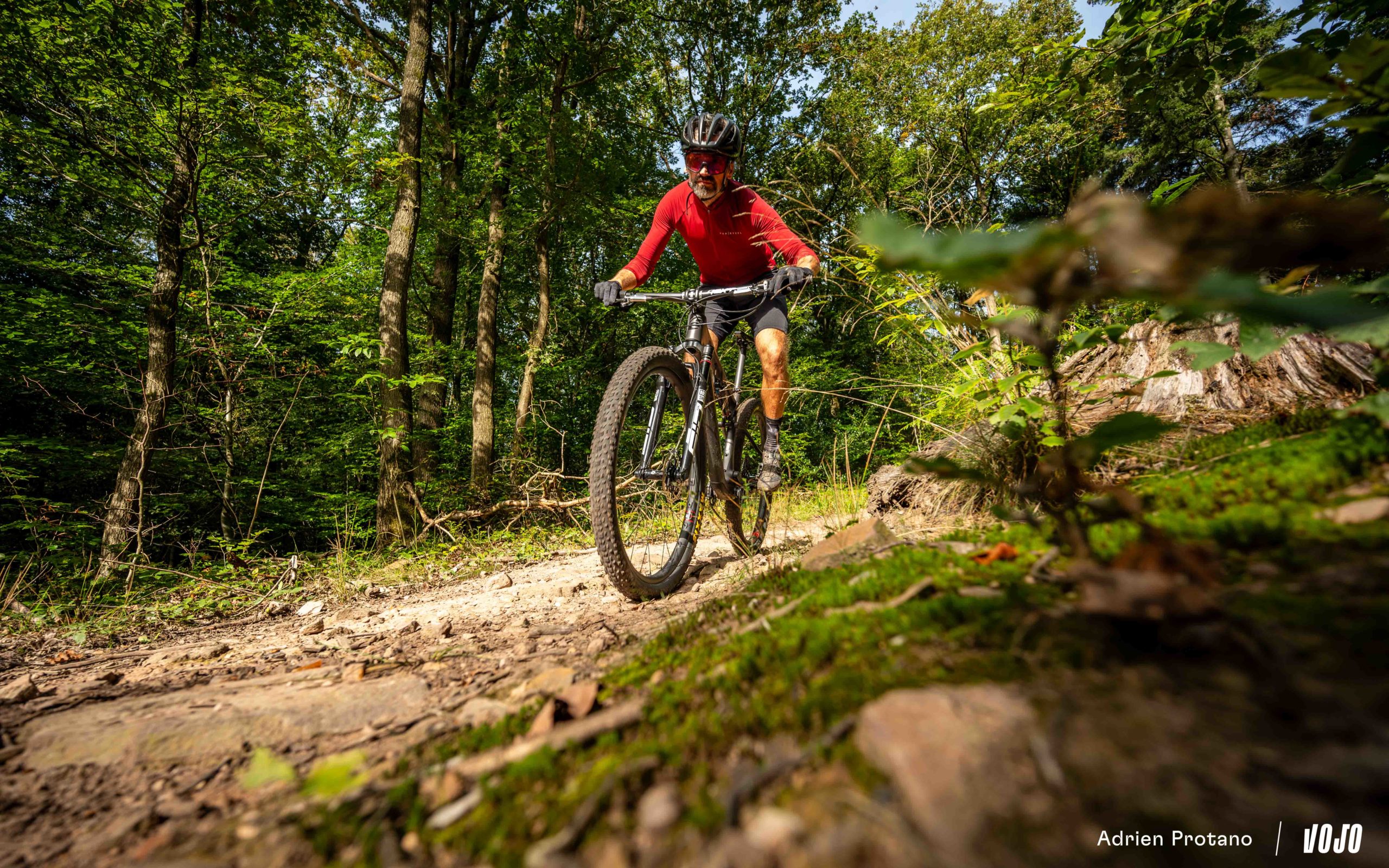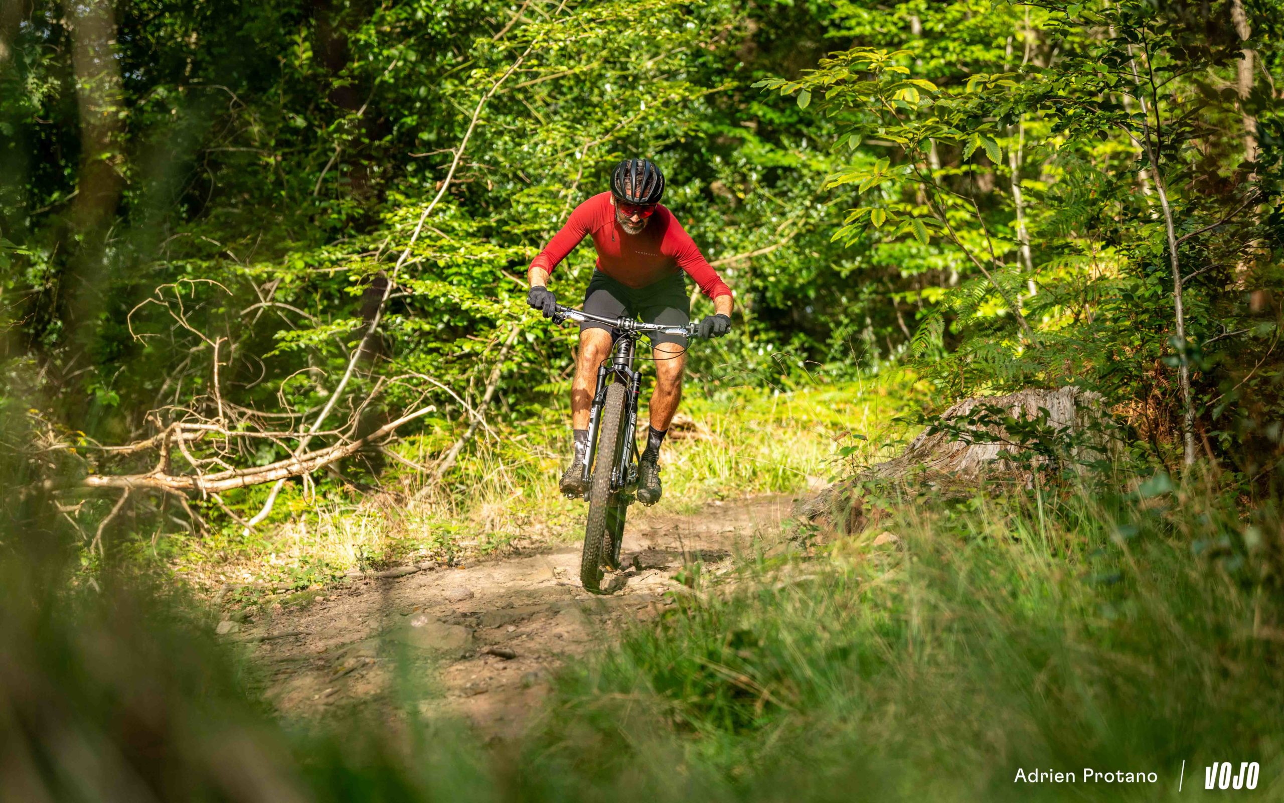 Ce confort et cette efficacité, on les retrouve également lorsque la pente devient montante ! Les relances sont très franches et le vélo pédale particulièrement bien au train, offrant une position efficace que l’on peut tenir pendant un bon bout de temps. Le vélo est taillé pour la compétition et cela s’en ressent, aucun watt n’est perdu dans la bataille ! Cette fois-ci, ce n’est pas par le confort des suspensions que l’on se sent voler, mais par notre facilité à imprimer un rythme important.
