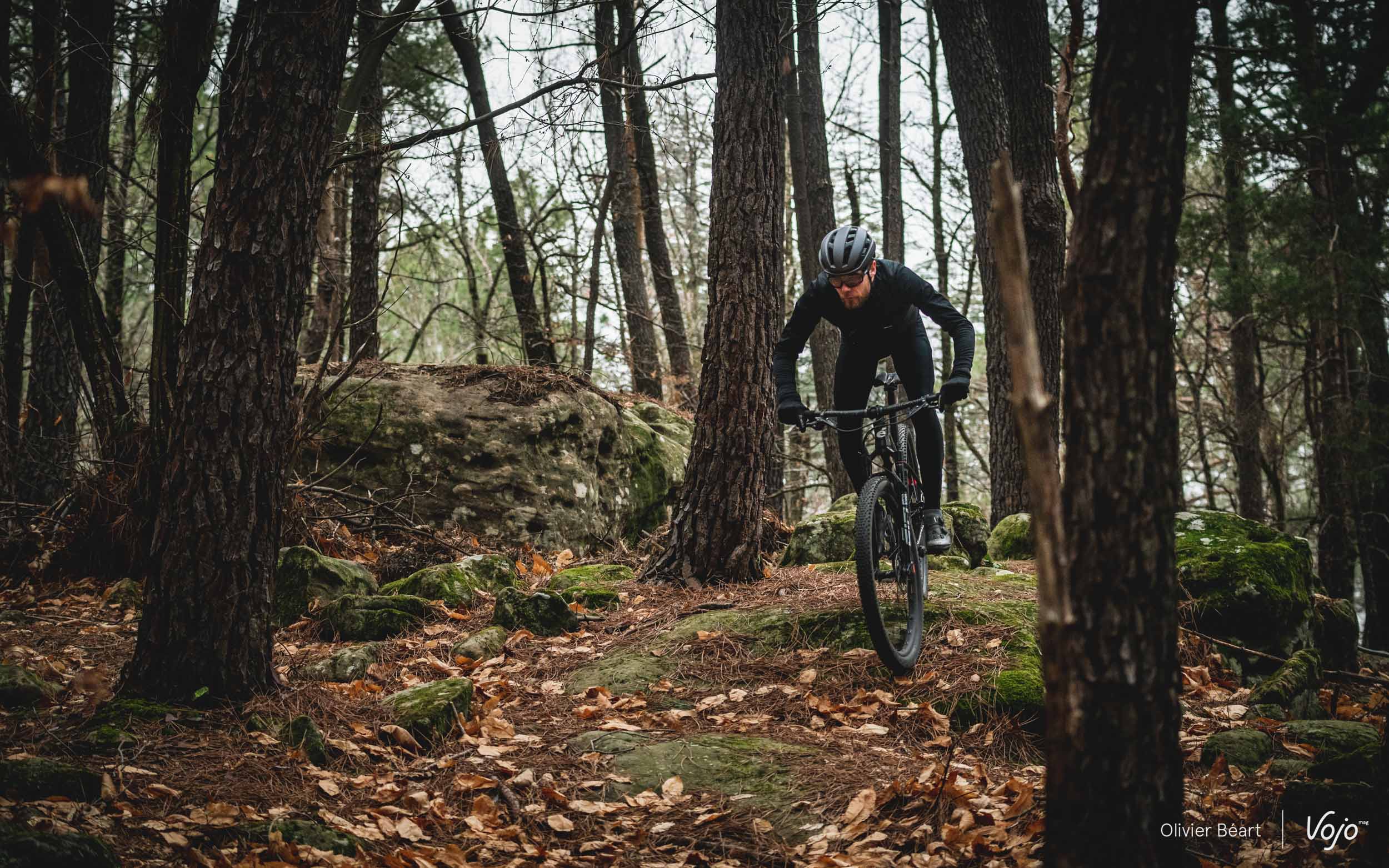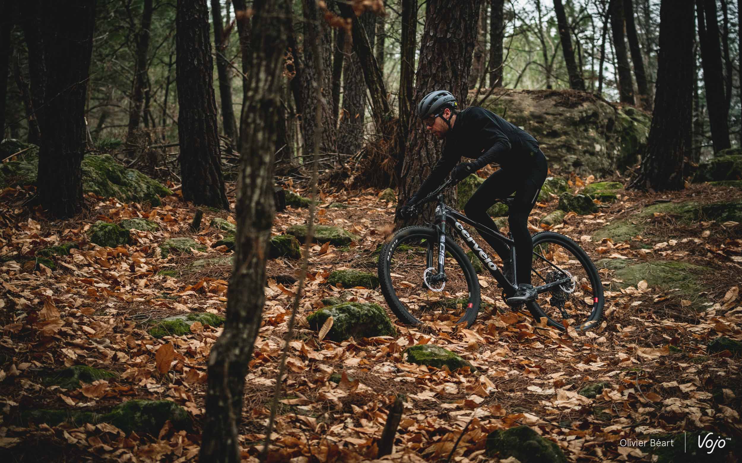 Une fois qu’on s’attaque à des terrains plus techniques et à des reliefs tourmentés, le cadre se montre fort rigide et ne filtre pas aussi bien les vibrations que les références du marché. Cela pourrait sembler un détail, mais dans certaines circonstances, ça peut ralentir l’accélération ou la conservation de la vitesse, par exemple quand on a l’impression de plus taper les racines et les pierres au sol que de les enrober. Car le confort et le grip sont aussi des facteurs de performance. Néanmoins, si on reste sur des parcours peu cassants, il assure tout de même l’essentiel et, même s’il n’est pas le plus facile à vivre quand c’est cassant, on n’a quand même pas dû filer chez l’ostéo après chaque sortie.