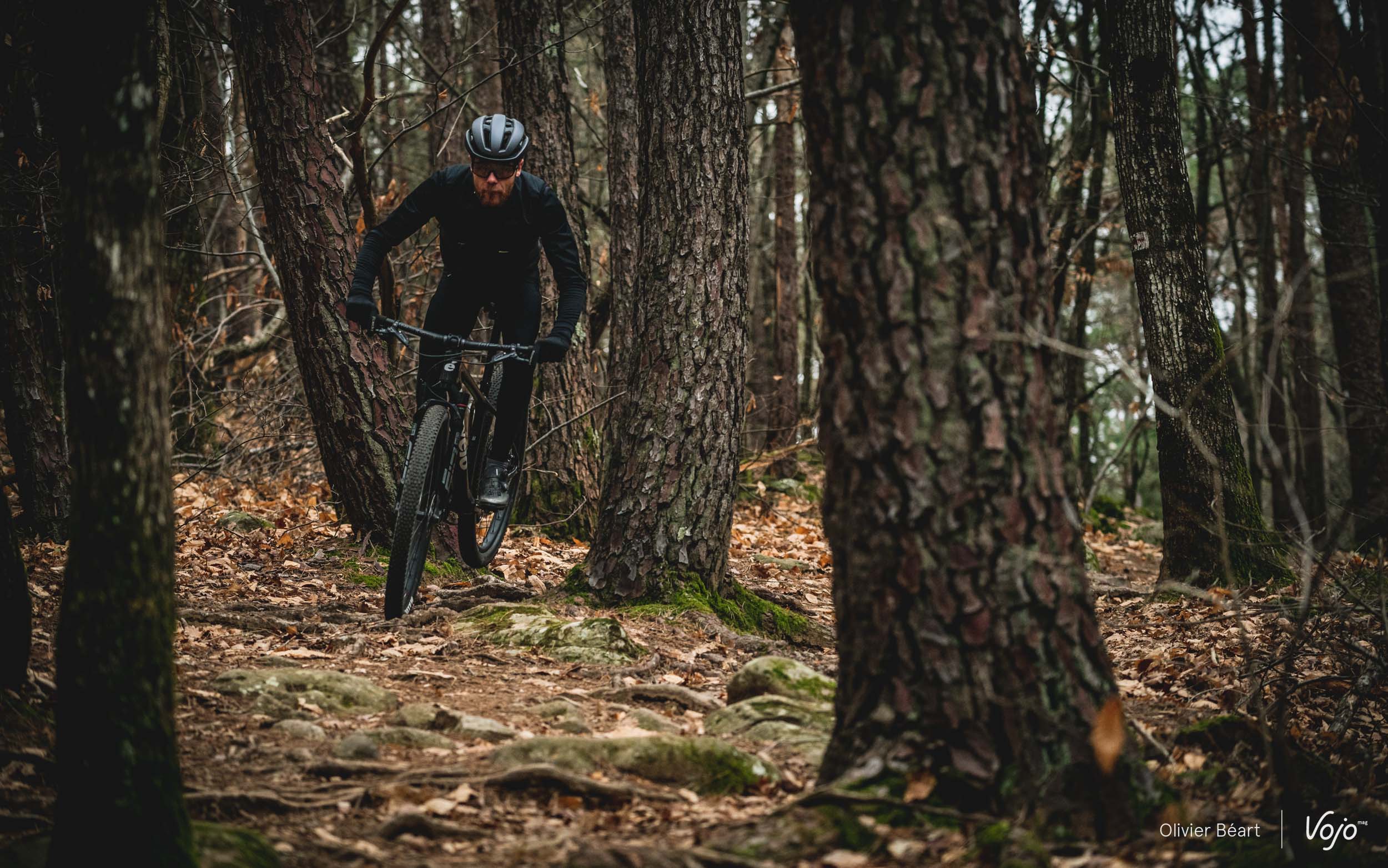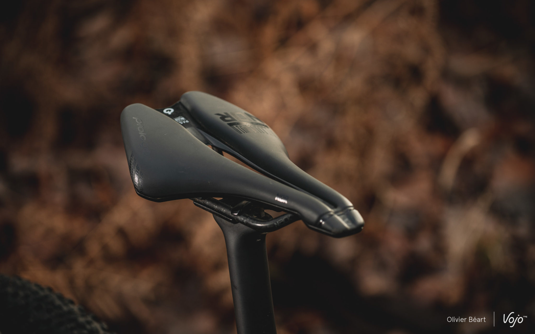 Une fois qu’on s’attaque à des terrains plus techniques et à des reliefs tourmentés, le cadre se montre fort rigide et ne filtre pas aussi bien les vibrations que les références du marché. Cela pourrait sembler un détail, mais dans certaines circonstances, ça peut ralentir l’accélération ou la conservation de la vitesse, par exemple quand on a l’impression de plus taper les racines et les pierres au sol que de les enrober. Car le confort et le grip sont aussi des facteurs de performance. Néanmoins, si on reste sur des parcours peu cassants, il assure tout de même l’essentiel et, même s’il n’est pas le plus facile à vivre quand c’est cassant, on n’a quand même pas dû filer chez l’ostéo après chaque sortie.