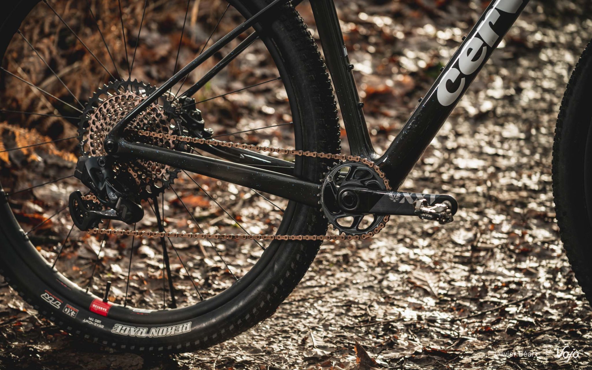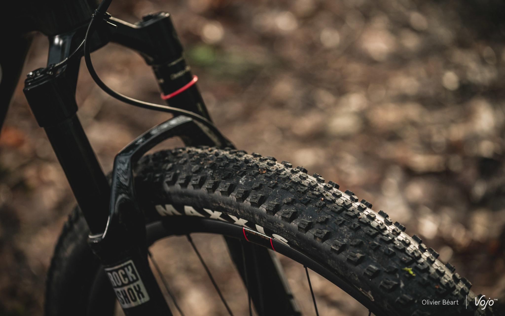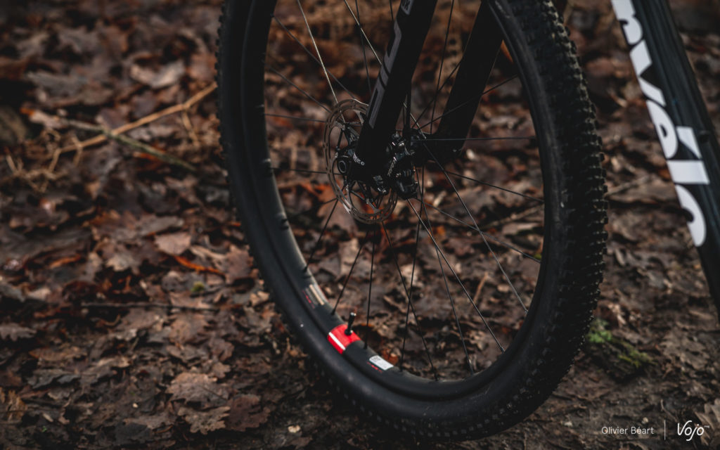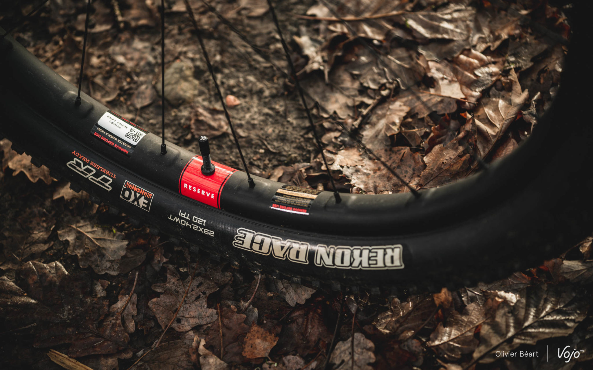 A ce niveau, on doit saluer la très grande qualité des roues Reserve en 28mm de large qui nous ont bluffés lors de ce test. Elles donnent une vraie impression de légèreté, elles se montrent particulièrement dynamiques dans les relances, mais elles parviennent à adoucir un peu le caractère bien trempé du cadre. De manière générale, nous ne sommes pas de grands fans des pneus en 2.4 de section sur tous les terrains (spécialement dans la boue et les terrains meubles en général) mais ici, nous avons apprécié le petit zeste de confort qu’ils apportent sur un châssis exigeant à la base. Puis, contrairement à des jantes de 30mm qui limitent les possibilités de baisser la section des pneus, les jantes Reserve en 28mm s’accommoderont parfaitement de pneus en 2.25 de section, plus adaptés aux terrains meubles.