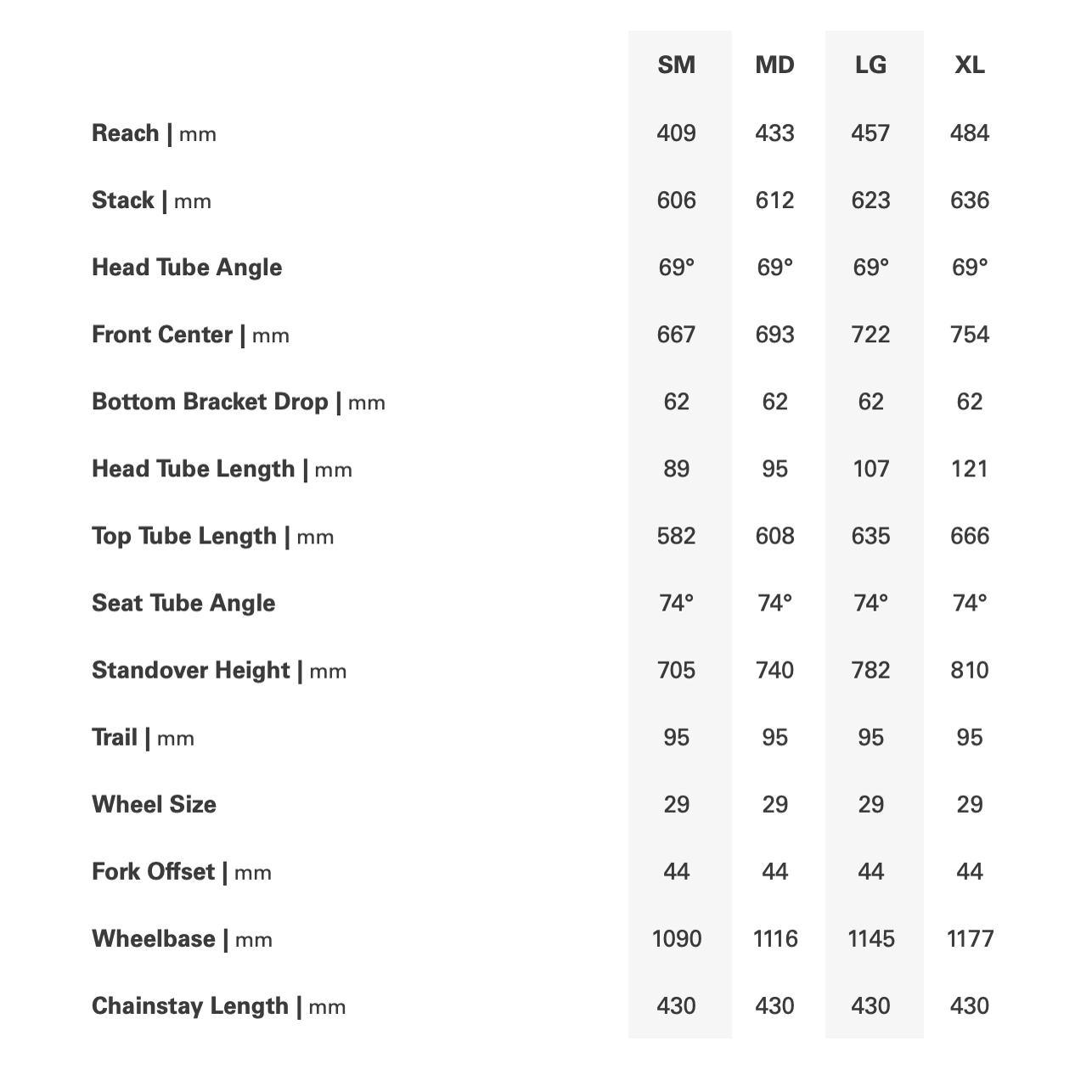 S’il ne s’agit pas tout à fait d’un mensonge lorsque la marque canadienne annonce une géométrie moderne, le ZHT-5 n’est pas pour autant un pionnier dans le domaine et ne tombe pas dans la tendance “longer/slacker” (comprenez des vélos toujours plus longs et plus bas) que l’on peut retrouver chez certains autres concurrents. Ainsi, le vélo propose des valeurs assez traditionnelles pour l’angle de direction par exemple (69°). Les bases arrière sont très courtes, avec 430mm, et le cadre plutôt long malgré le discours de la marque, avec 457mm de reach en taille L, ce qui reste une mesure assez importante pour un semi-rigide de XC.