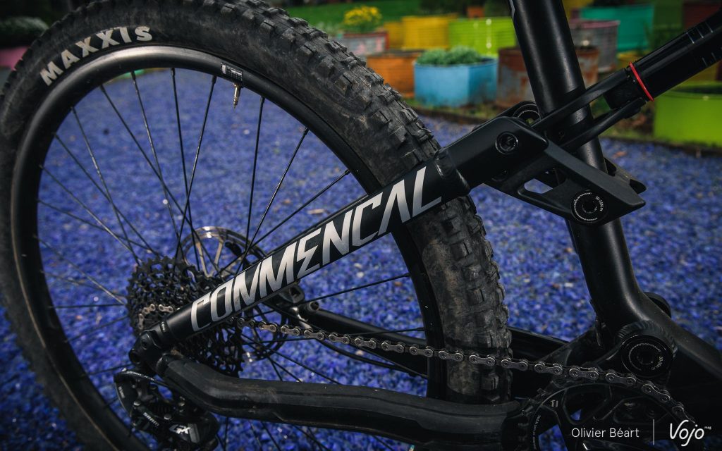 Ah oui, nous allions presque oublier de vous parler de la taille des roues : à l’heure où le 29 » cristallise de plus en plus l’attention, Commencal reste fidèle au 27,5 ». Il n’est pas impossible que cela change dans le futur vu que la marque a bien développé un Suprême 29″ pour ses pilotes de DH mais pour ses vélos de production, c’est pour l’instant un choix clair de Commencal de rester fidèle aux « petites » roues. Par contre, la largeur des jantes et des pneus évolue, comme nous le verrons dans la rubrique « équipements ».