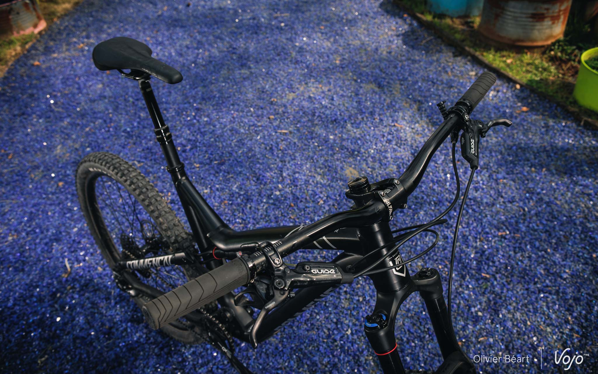 Tous nos testeurs ont eu la sensation de retrouver immédiatement leurs repères, avec notamment un poste de pilotage à l’ergonomie très agréable (merci le cintre) ainsi qu’un reach qui n’a rien de démesuré et qui permet de ne pas devoir revoir ses références au niveau des points d’appui. Le tube de selle plus redressé a aussi été unanimement salué et dope les capacités au pédalage de ce beau bébé qui pèse pourtant quasiment 14,5kg !