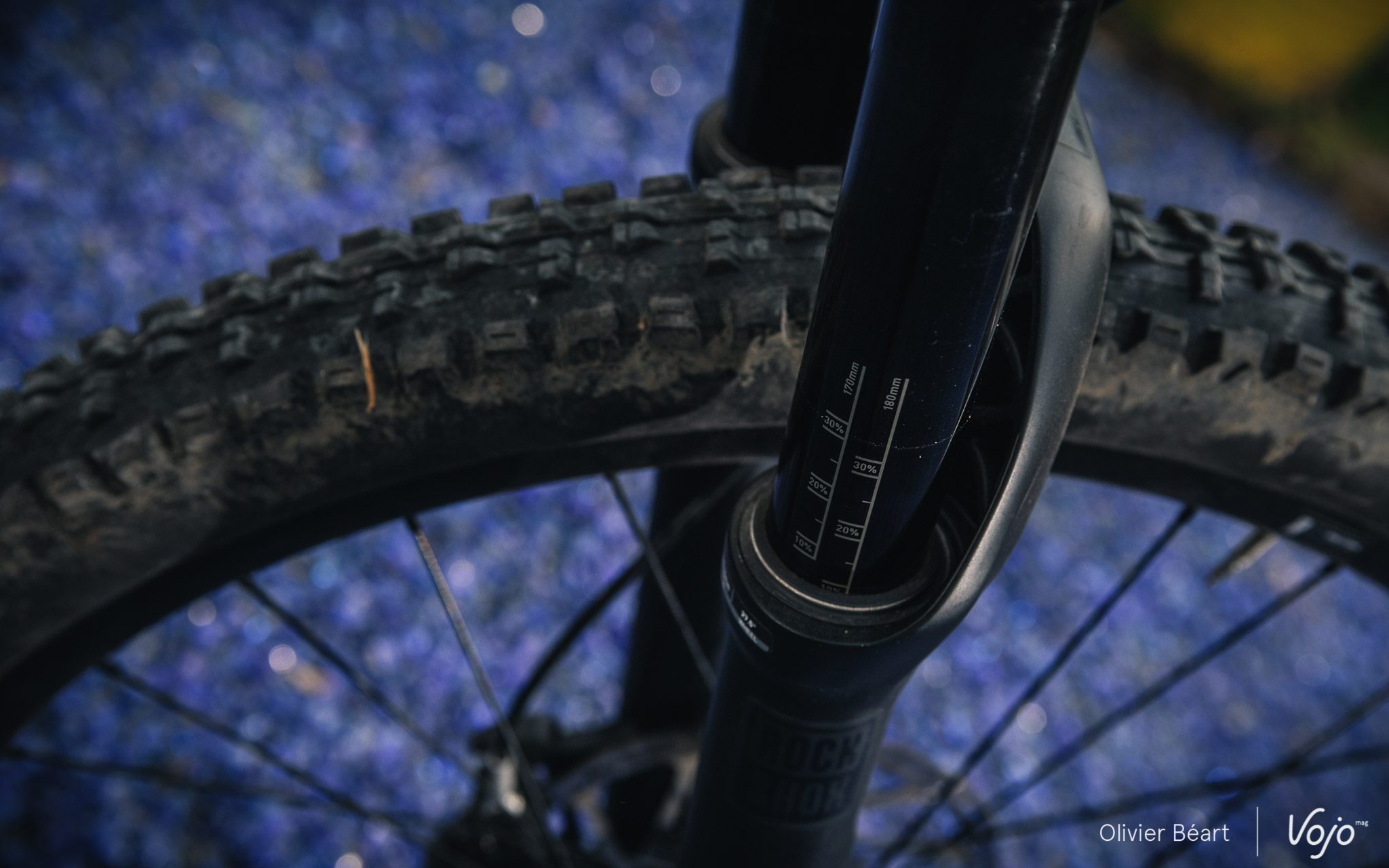 La qualité du travail des suspensions est aussi à souligner. On a une vraie sensation de souplesse, un feeling « plush » qui rappelle un peu celui d’un ressort métallique, sans toutefois consommer trop vite le débattement. Sur cette version à moins de 3000€, les suspensions n’offrent que peu de réglages, mais on va ici à l’essentiel avec un débattement généreux et de la souplesse. Nous avons tout de même dû placer 4 tokens dans la fourche pour garder un peu d’assiette, tout en conservant quelque chose de très souple en début de course et accordé à l’arrière. Un vrai pullman avec une réelle sensation de débattement généreux mais sans effet « bateau », ce qui permet d’aborder les zones les plus accidentées sans la moindre appréhension : le vélo s’occupe de gérer !