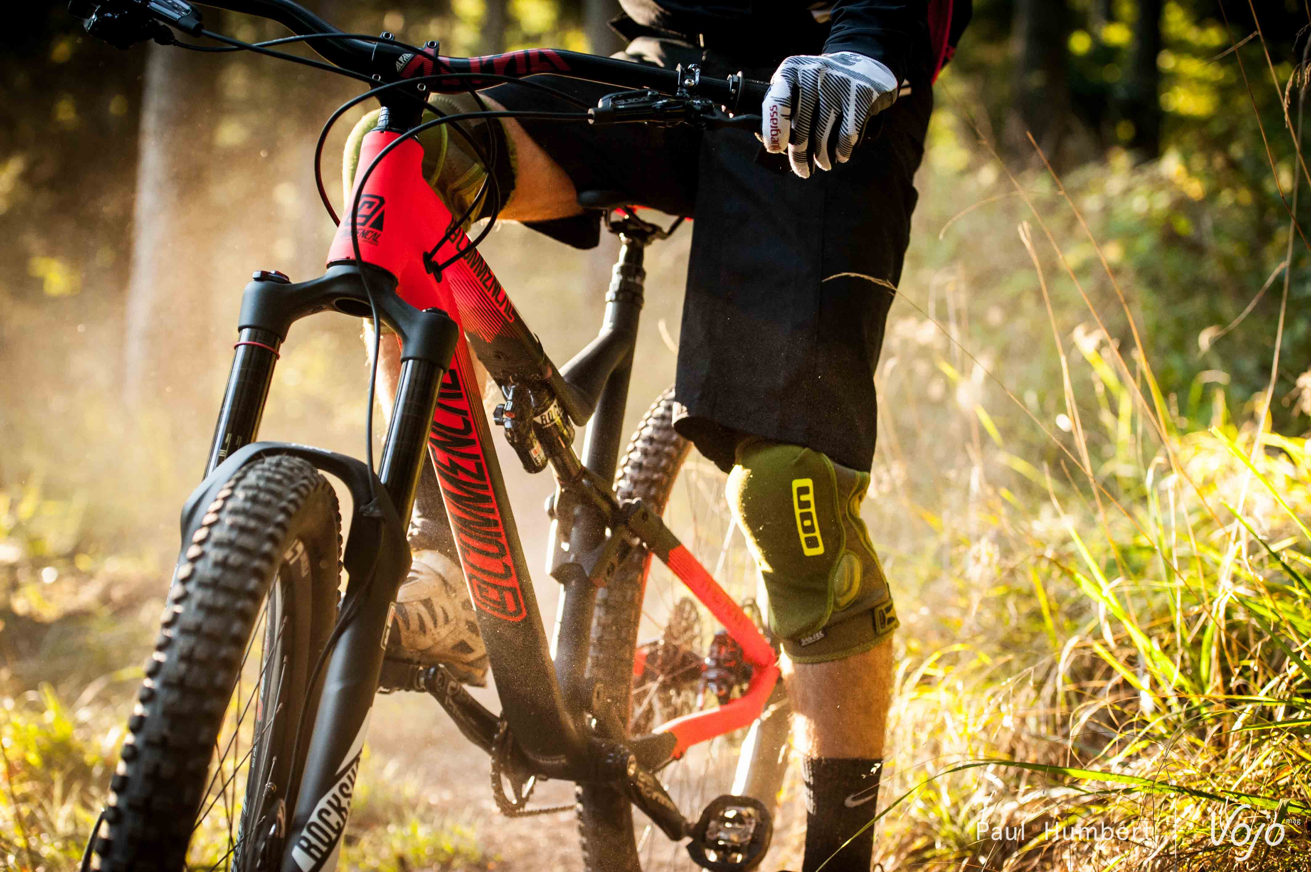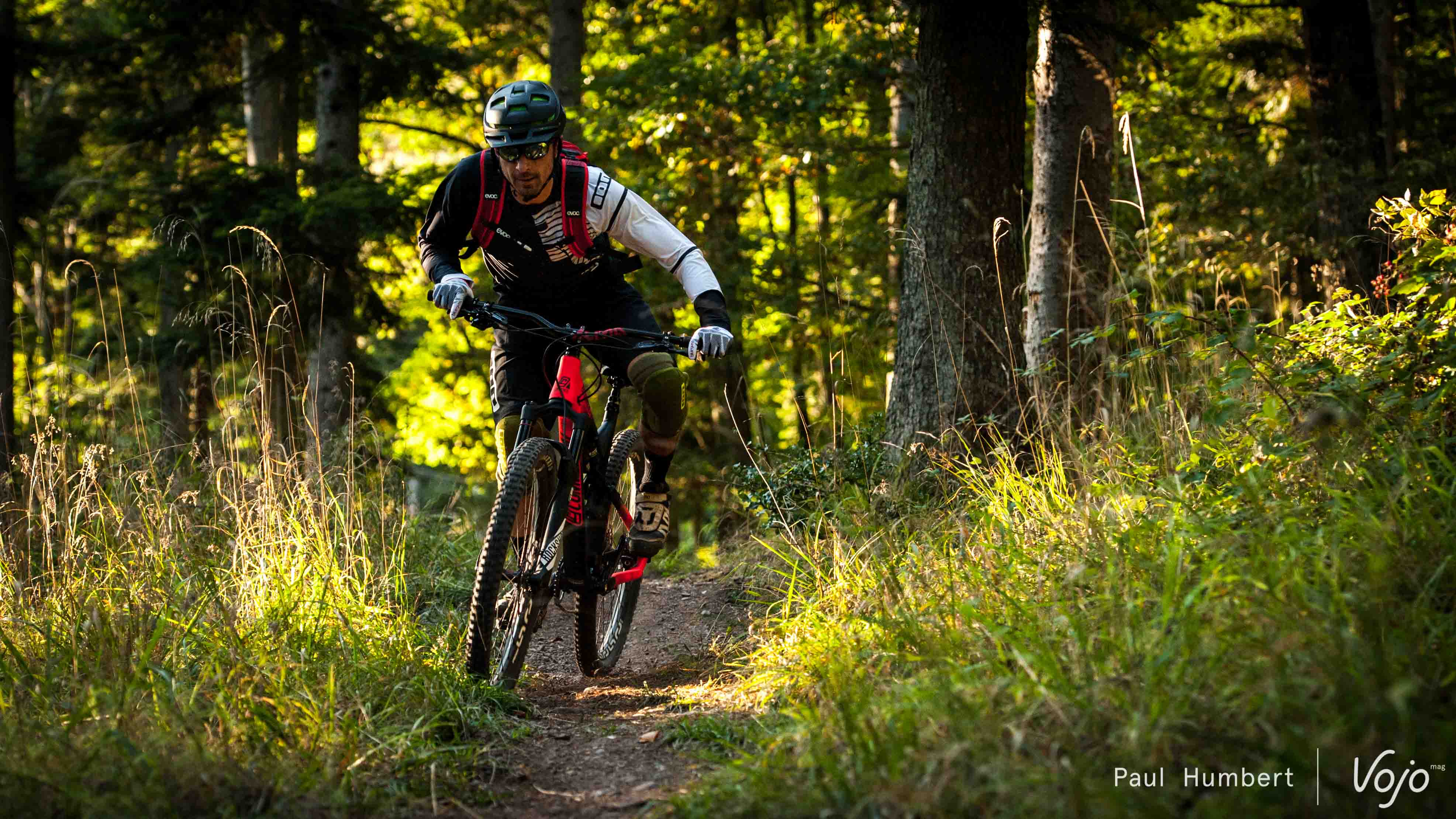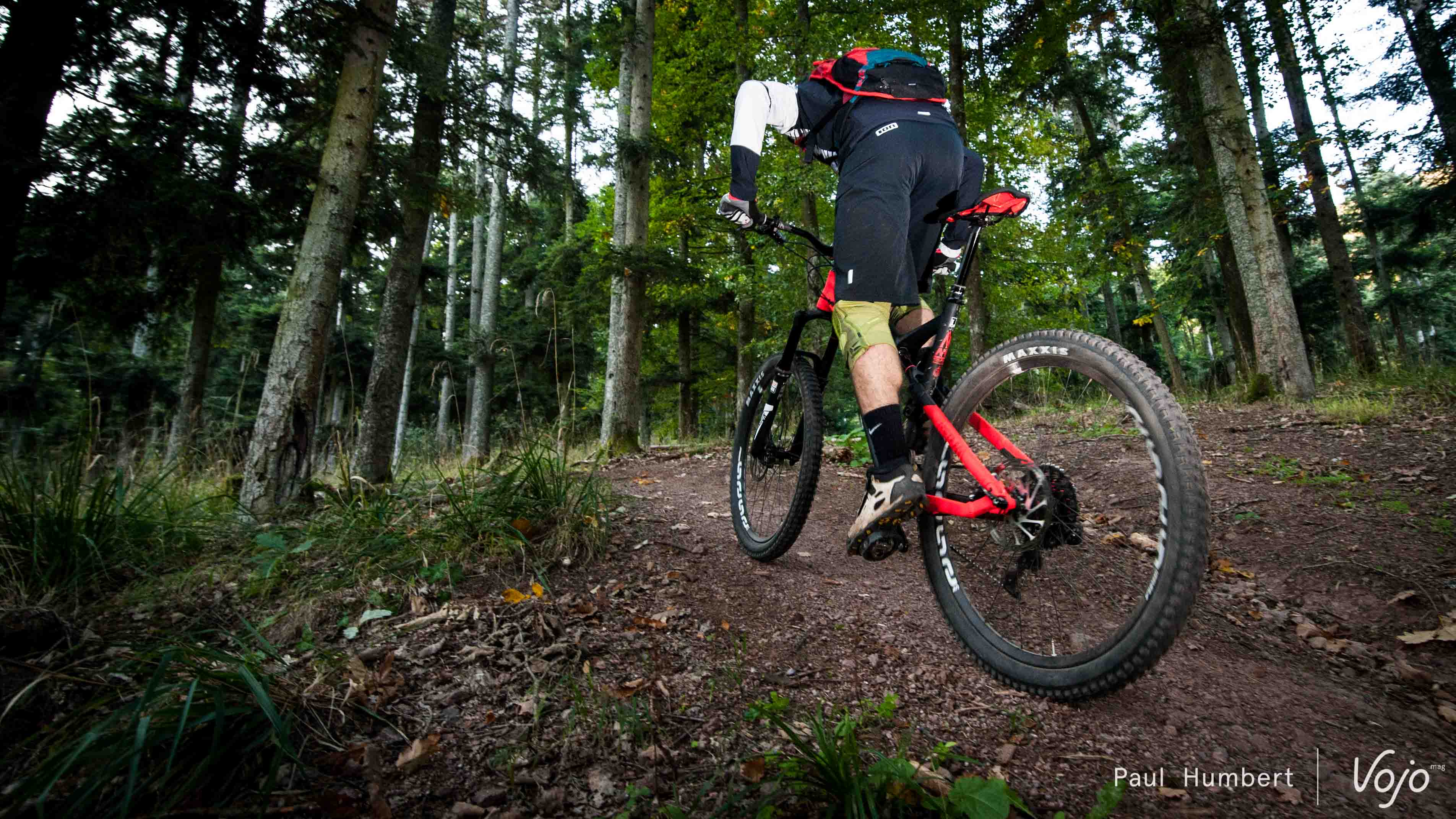 Nous regonflons l’amortisseur à une pression plus normale (180psi) et la face du vélo change du tout au tout ! Il s’équilibre, la suspension est plus progressive et on retrouve le grip et le confort que nous aimions tant en début de test tout en restant dynamique et, surtout, en ne talonnant plus au moindre gros impact.