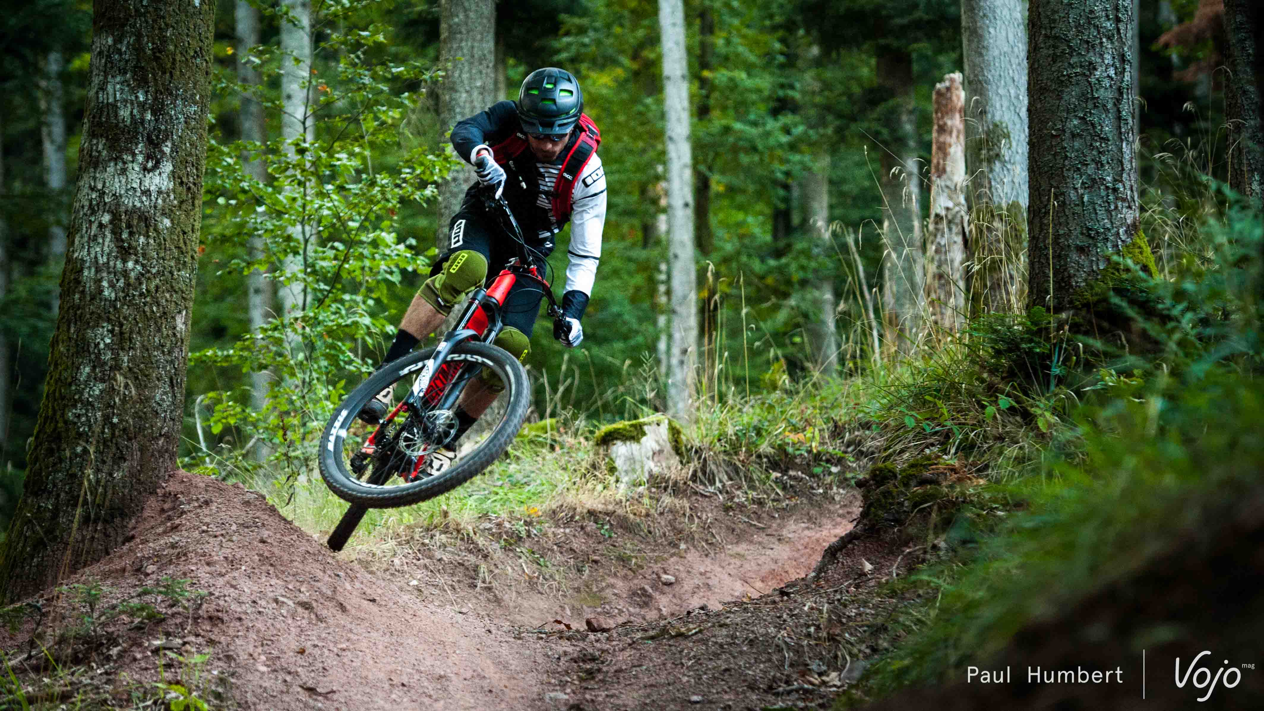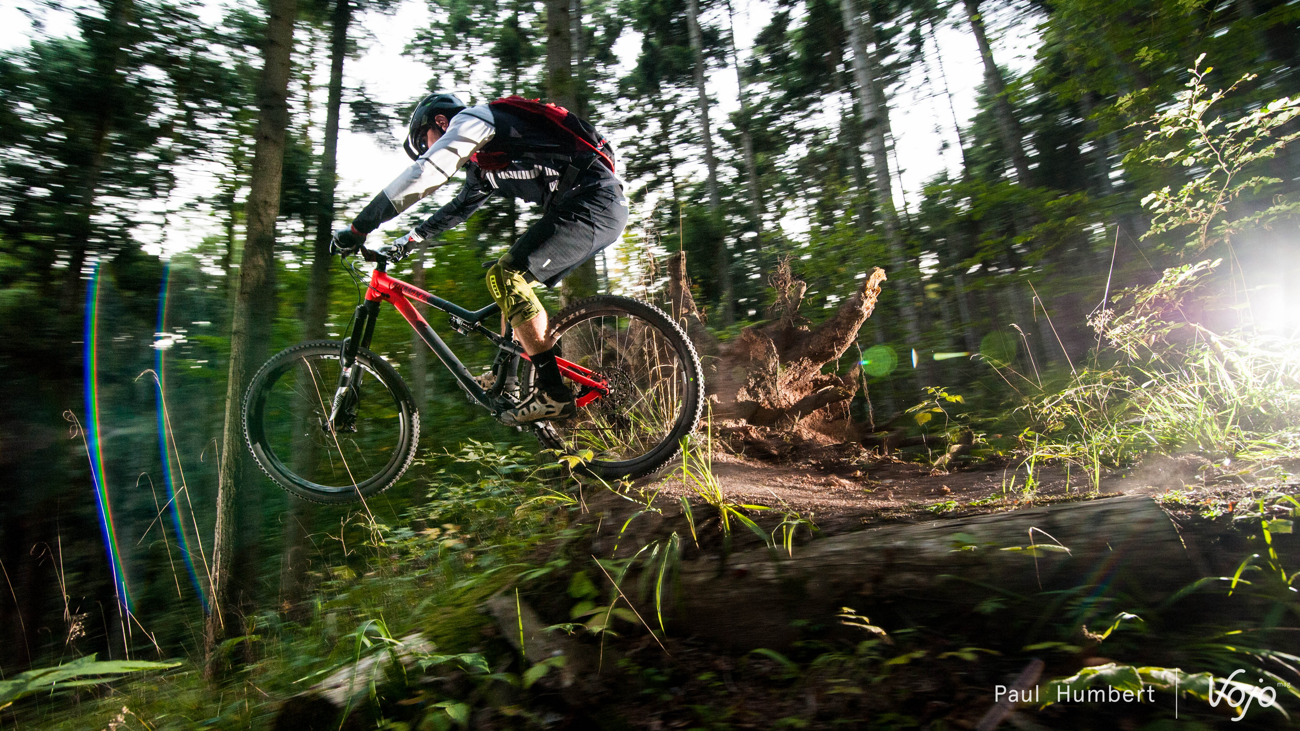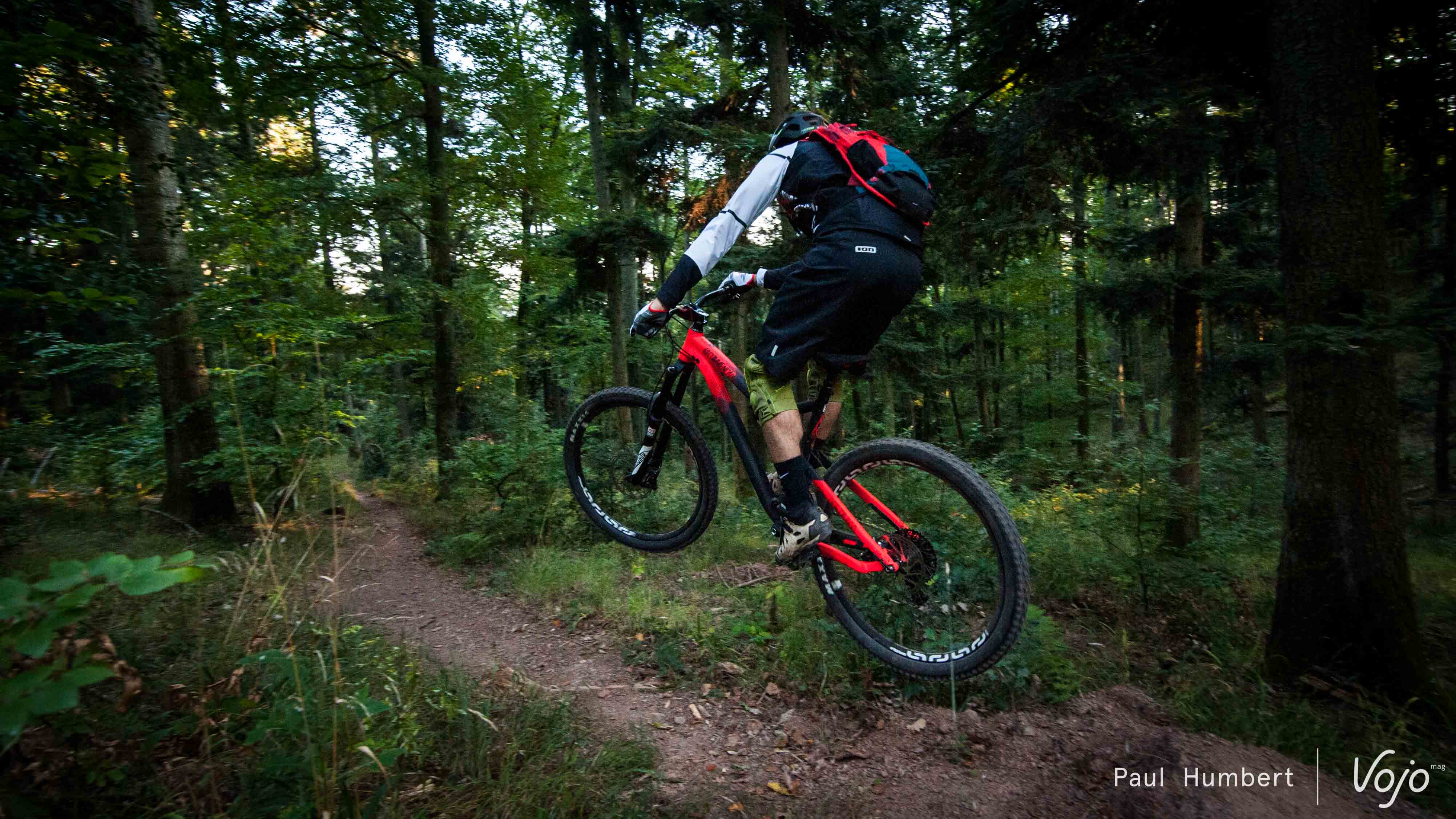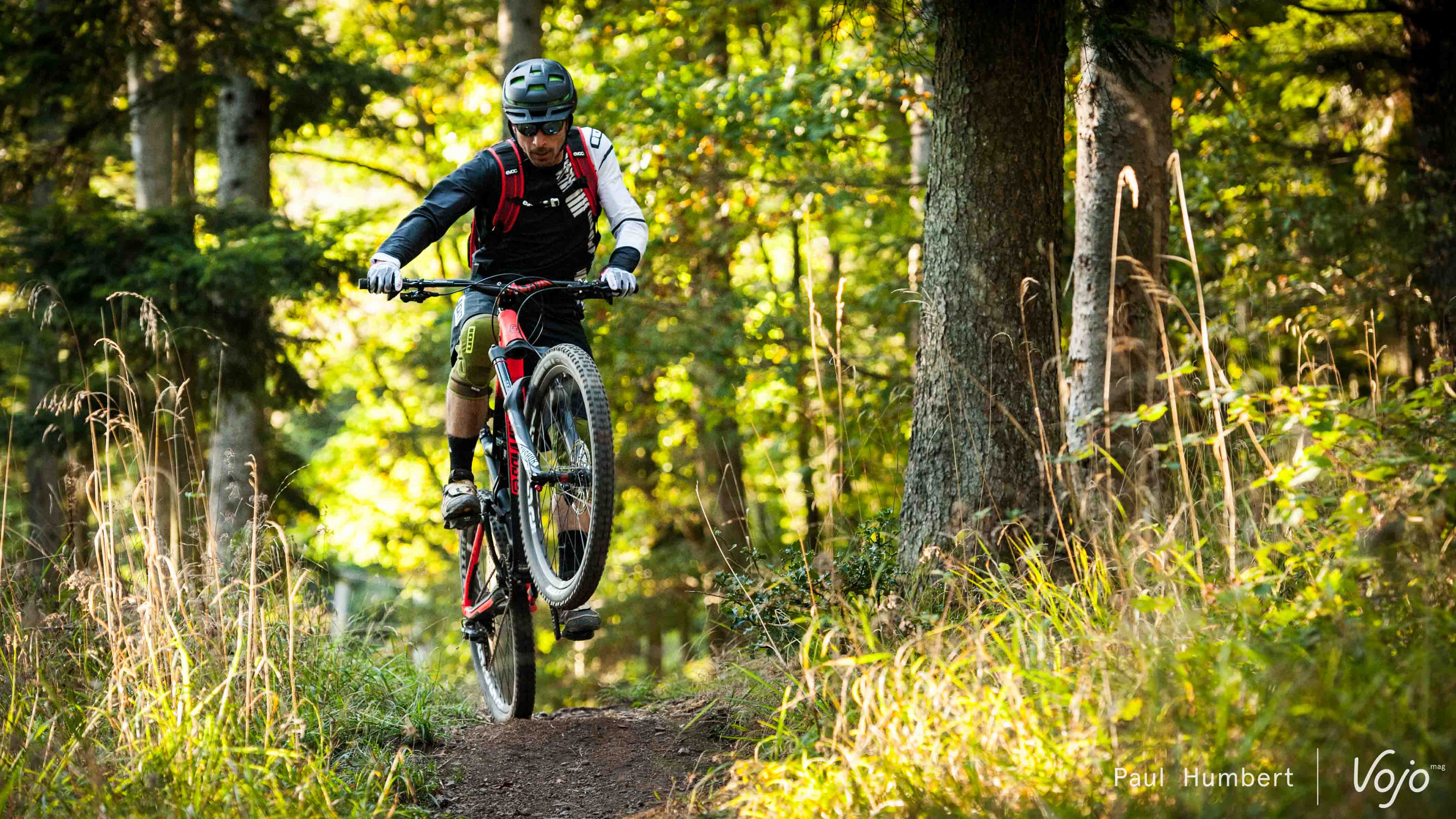Nous regonflons l’amortisseur à une pression plus normale (180psi) et la face du vélo change du tout au tout ! Il s’équilibre, la suspension est plus progressive et on retrouve le grip et le confort que nous aimions tant en début de test tout en restant dynamique et, surtout, en ne talonnant plus au moindre gros impact.