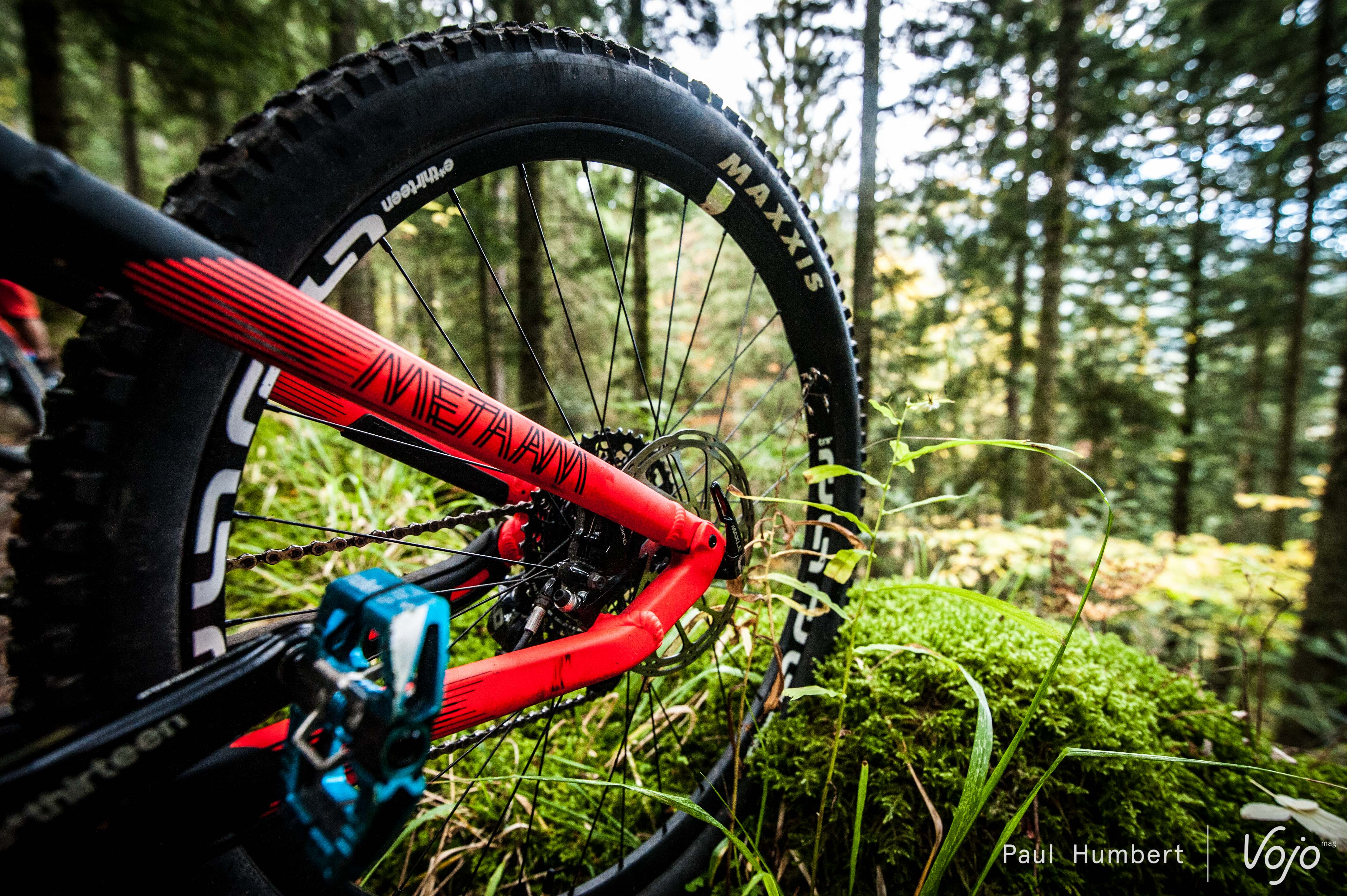 À l’issue de notre test, le cerclage E13 TRS+ de la roue arrière laissait entrevoir de grands signes de fatigues. Probablement trop léger pour le programme, il est, avec les poignées, un des rares défauts de ce Meta en terme d’équipement. Le test terrain