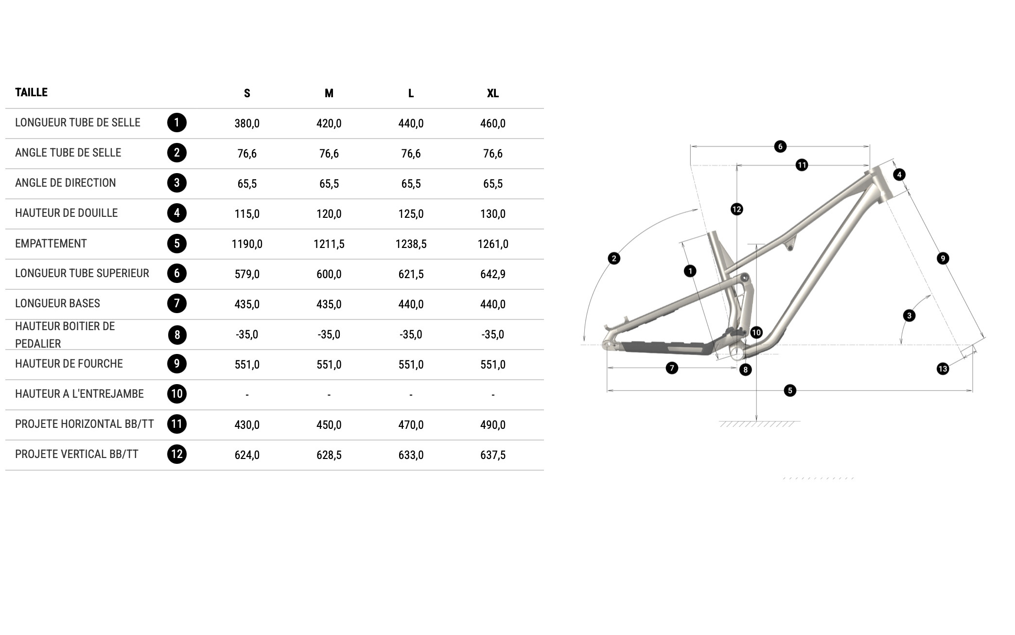 Ceci dit, on notera tout de même l’angle de direction généreux pour un vélo de « seulement » 125 mm de débattement à l’arrière : avec 65,5° on a de quoi voir venir, et le Tempo n’aura certainement pas peur d’aller jouer dans le technique voire un peu de pente. C’est par exemple la même valeur qu’un Scor 2030 et qu’un Santa Cruz Tallboy, deux vélos assez proches du Tempo sur le papier et qu’on apprécie particulièrement à la rédaction.