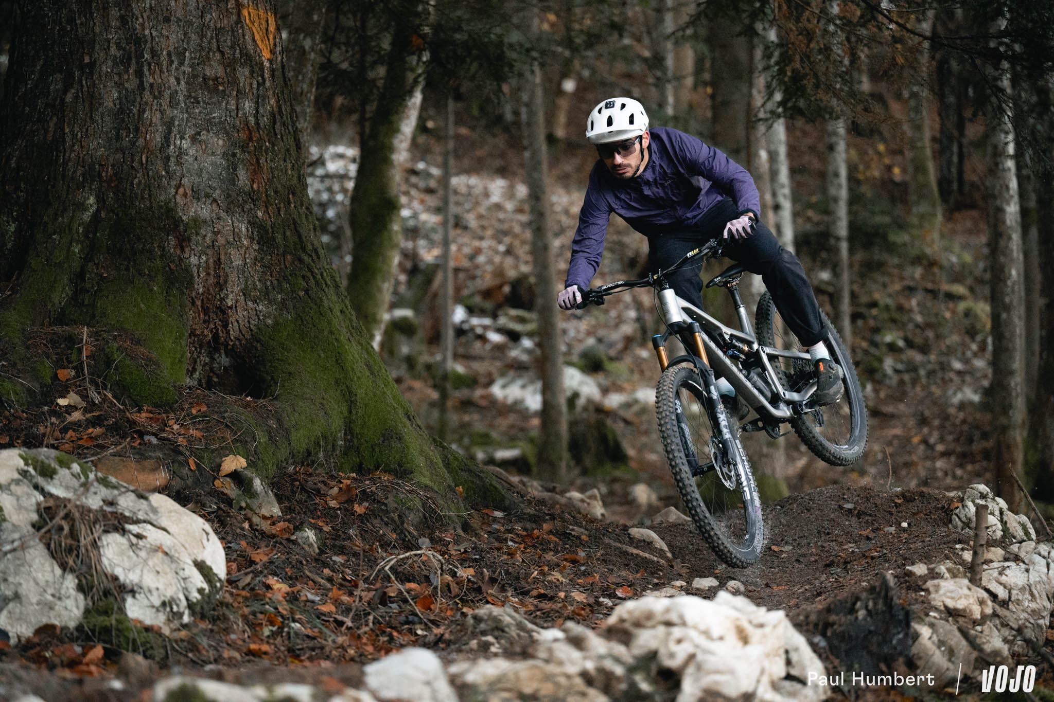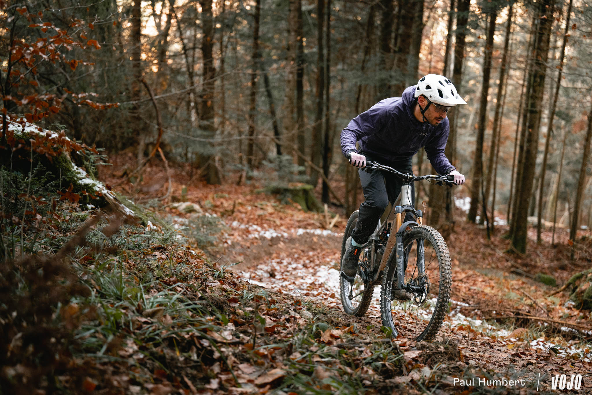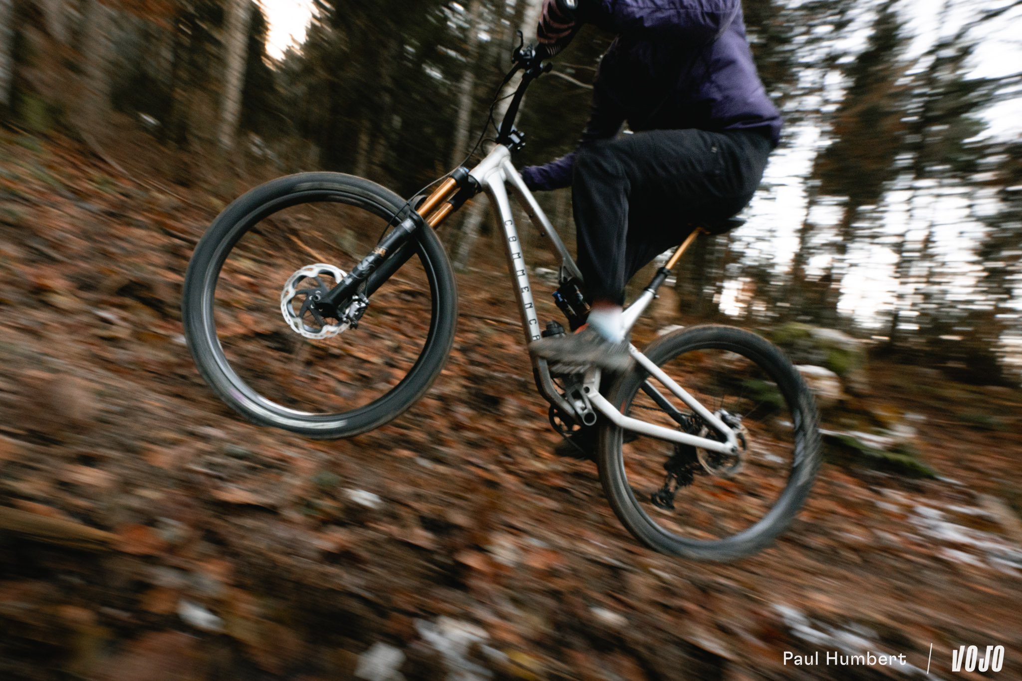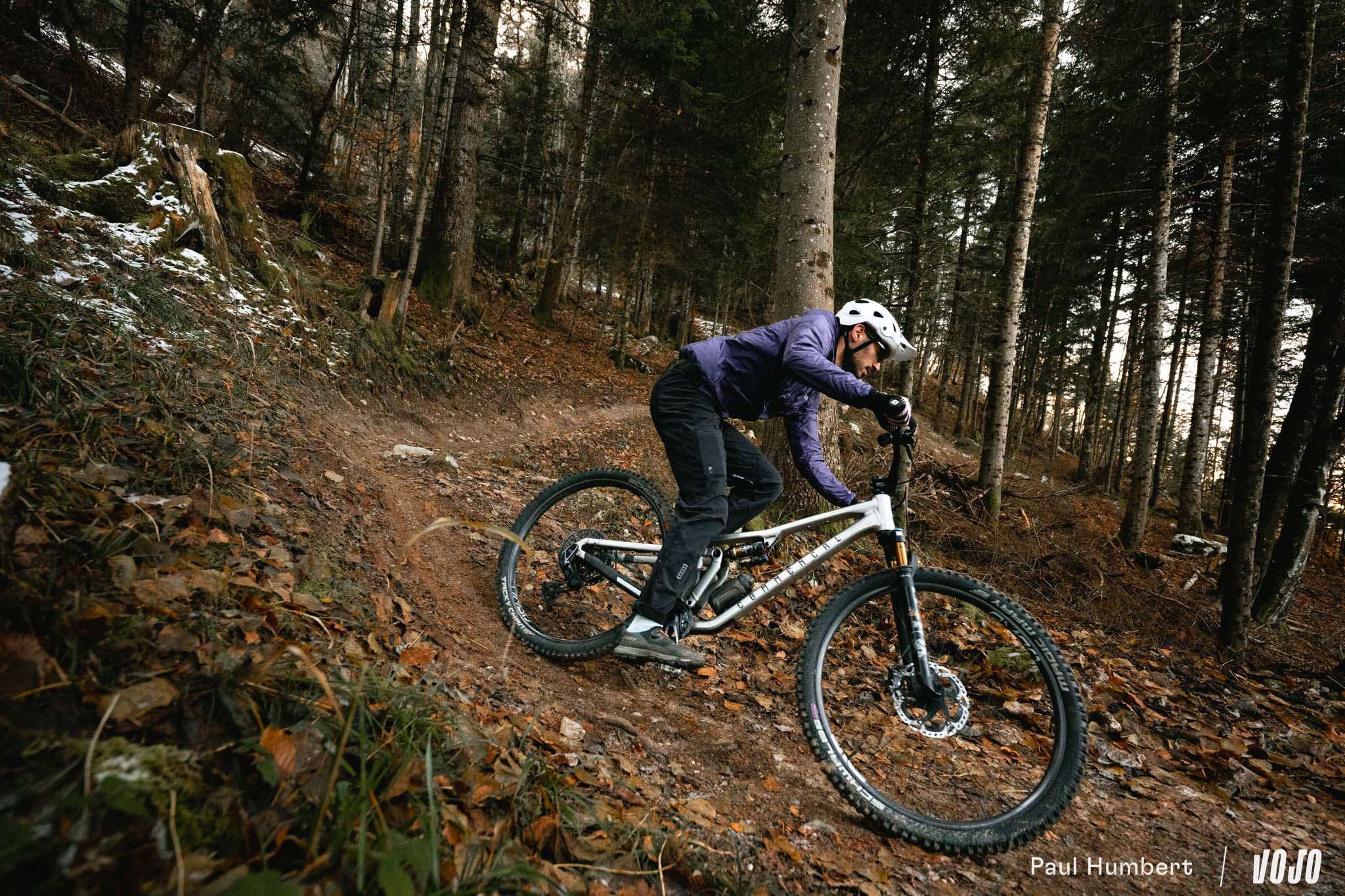 Ne nous voilons pas la face : c’est un vélo qui pédale mal (pour son débattement) et qui n’a pas l’efficacité ou les capacités de « mini-enduro » de certains 120/130 mm plus tolérants. Alors au lieu de chercher à le travestir pour avoir quelque chose qui ne sera brillant nulle part, autant jouer à fond sur ses points forts, non ?