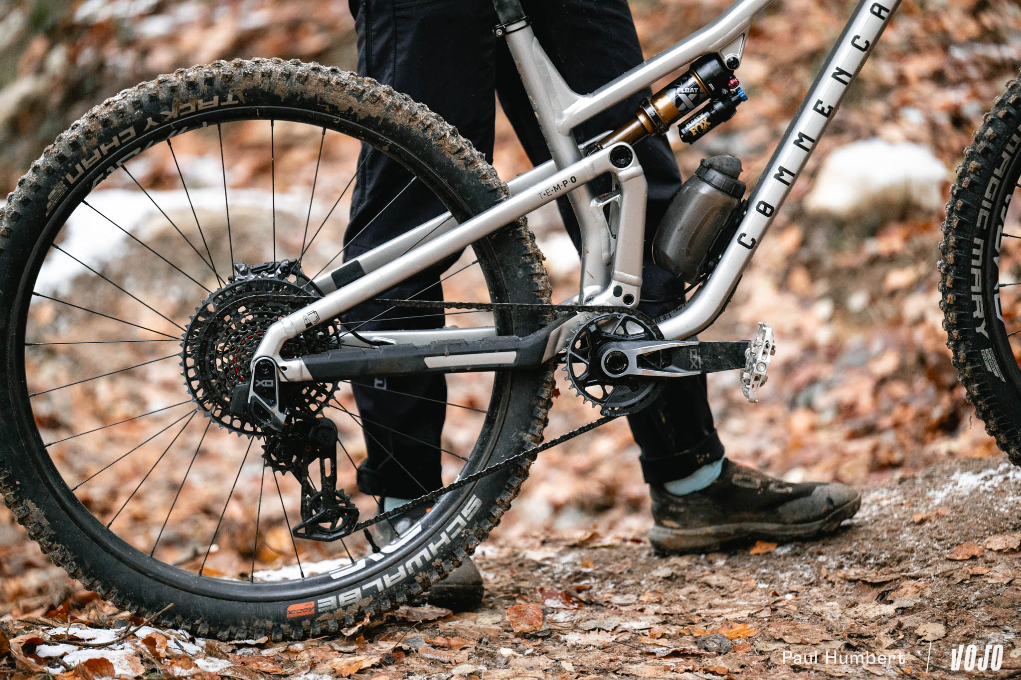 Commencal n’a communiqué aucune donnée à propos de son comportement sur le Tempo mais dans la mesure où on parle d’un vélo avec 125 mm de débattement à l’arrière, on s’attend à un anti-squat suffisamment élevé pour pédaler correctement et un ratio plus adapté aux amortisseurs à air qu’à ceux à ressort hélicoïdal.